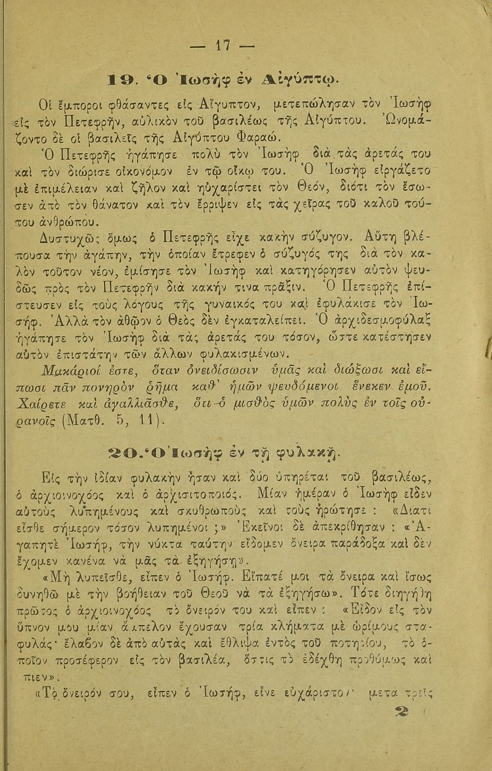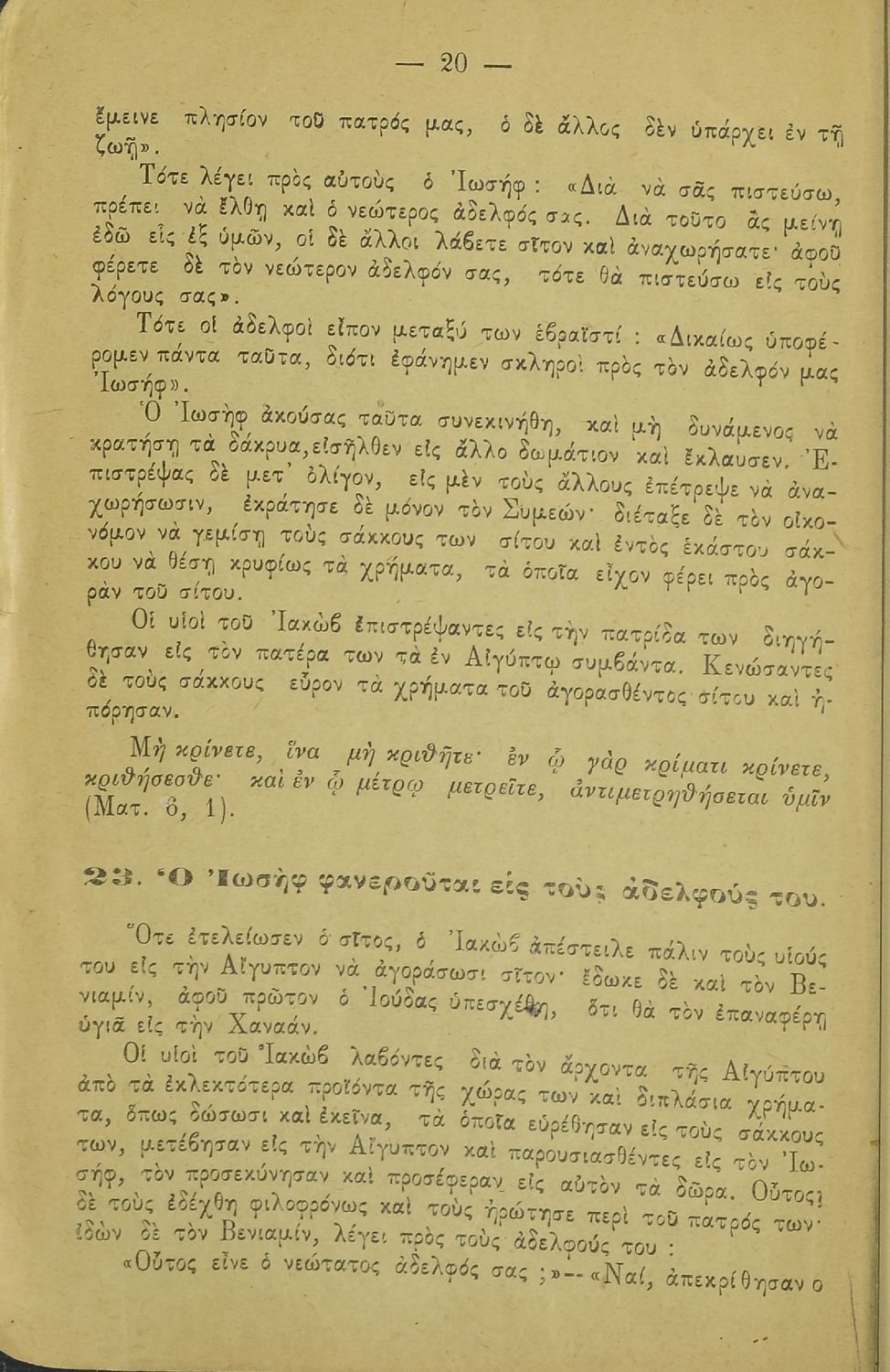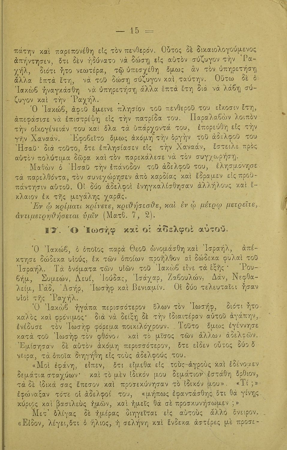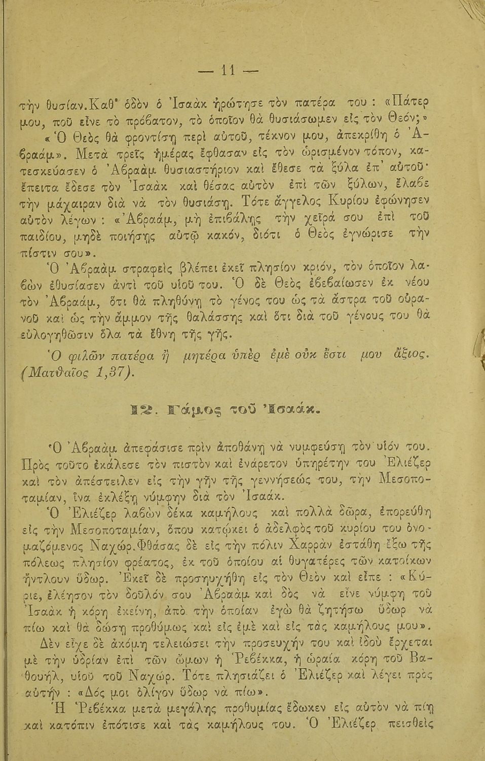Βαθμίδα εκπαίδευσης: Πρωτοβάθμια Μάθημα: Θρησκευτικά Γλώσσα: Καθαρεύουσα Παρουσίαση περιεχομένου: Σχολικό εγχειρίδιο Θρησκευτικών Δημοτικού που συνιστά μία εξιστόρηση της Παλαιάς Διαθήκης από τη δημιουργία του κόσμου ως τους Μακκαβαίους. |