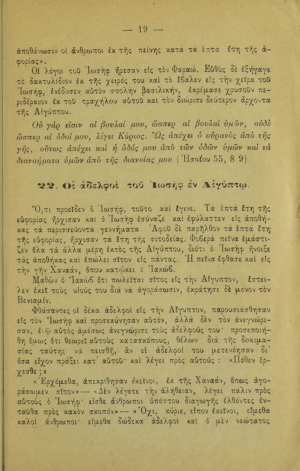 Σχολικό εγχειρίδιο Θρησκευτικών Δημοτικού που συνιστά μία εξιστόρηση της Παλαιάς Διαθήκης από τη δημιουργία του κόσμου ως τους Μακκαβαίους.