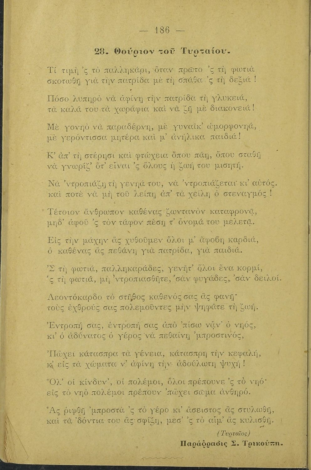 Αναγνωστικό Δ΄ Δημοτικού που περιλαμβάνει διηγήματα εμπνευσμένα από το έργο του Ηρόδοτου και ποιήματα του Παράσχου, του Αλέξανδρου Σούτσου, του Κάλβου και του Αλ. Τανταλίδη.