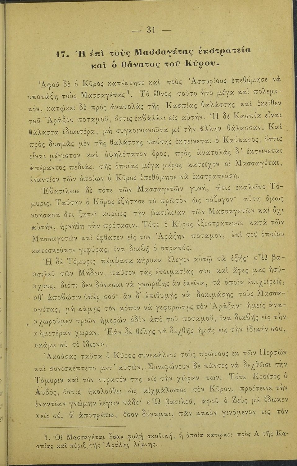 Αναγνωστικό Δ΄ Δημοτικού που περιλαμβάνει διηγήματα εμπνευσμένα από το έργο του Ηρόδοτου και ποιήματα του Παράσχου, του Αλέξανδρου Σούτσου, του Κάλβου και του Αλ. Τανταλίδη.