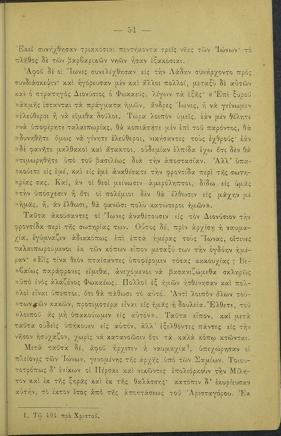 Βαθμίδα εκπαίδευσης: Πρωτοβάθμια Τάξη: Δ' Δημοτικού Μάθημα: Νέα Ελληνικά Γλώσσα: Καθαρεύουσα Παρουσίαση περιεχομένου: Αναγνωστικό Δ΄ Δημοτικού που περιλαμβάνει εισαγωγικά σχόλια στη ζωή και στο έργο του Ηρόδοτου, διασκευασμένα αποσπάσματα από το έργο του, και ποιήματα εμπνευσμένα από τη νεώτερη ελληνική ιστορία, τη θρησκευτική και εθνική παράδοση, την κοινωνική ζωή των ανθρώπων και την αγάπη για την φύση και τα ζώα. |