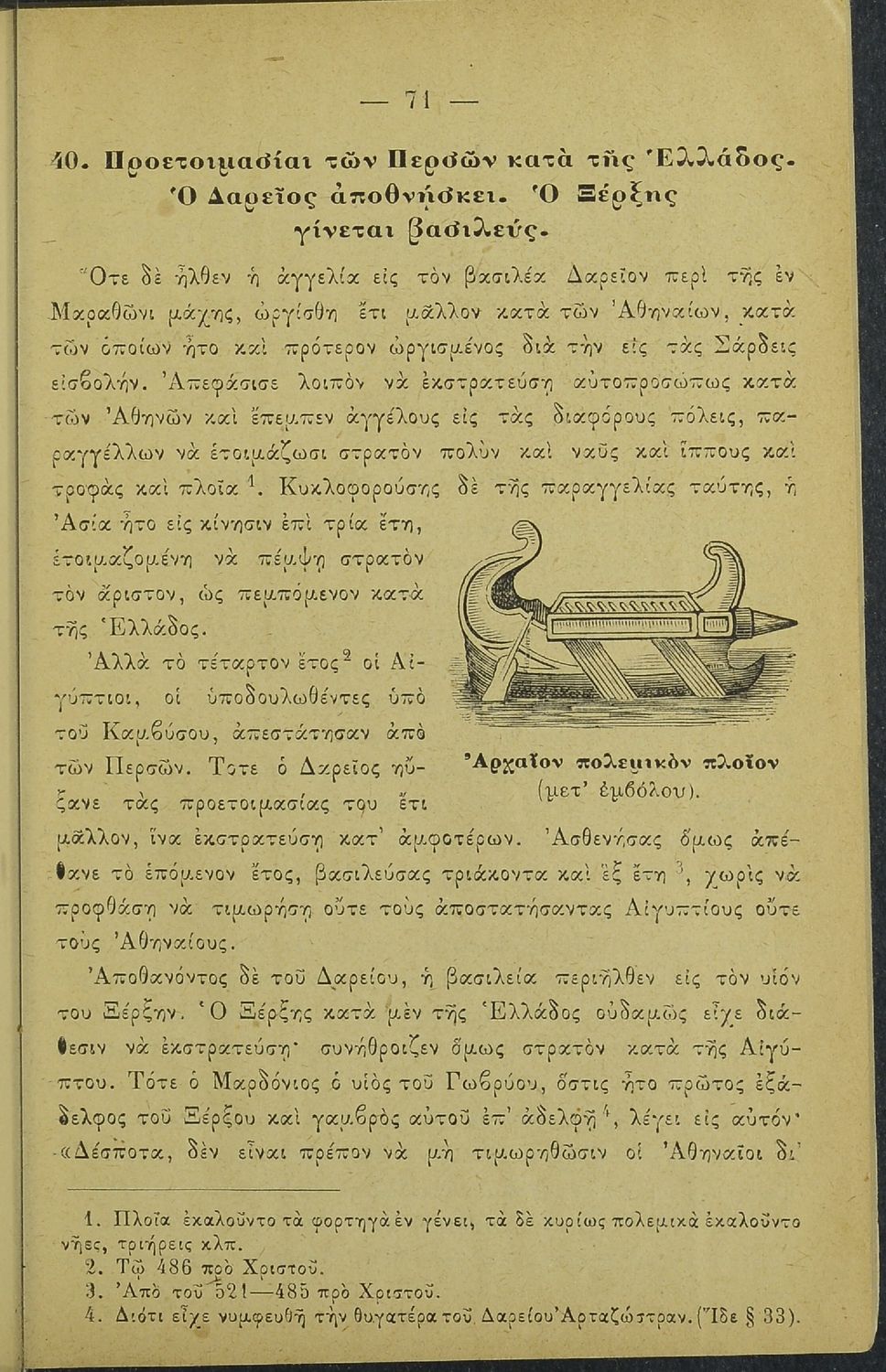 Αναγνωστικό Δ΄ Δημοτικού που περιλαμβάνει διηγήματα εμπνευσμένα από το έργο του Ηρόδοτου και ποιήματα του Παράσχου, του Αλέξανδρου Σούτσου, του Κάλβου και του Αλ. Τανταλίδη.