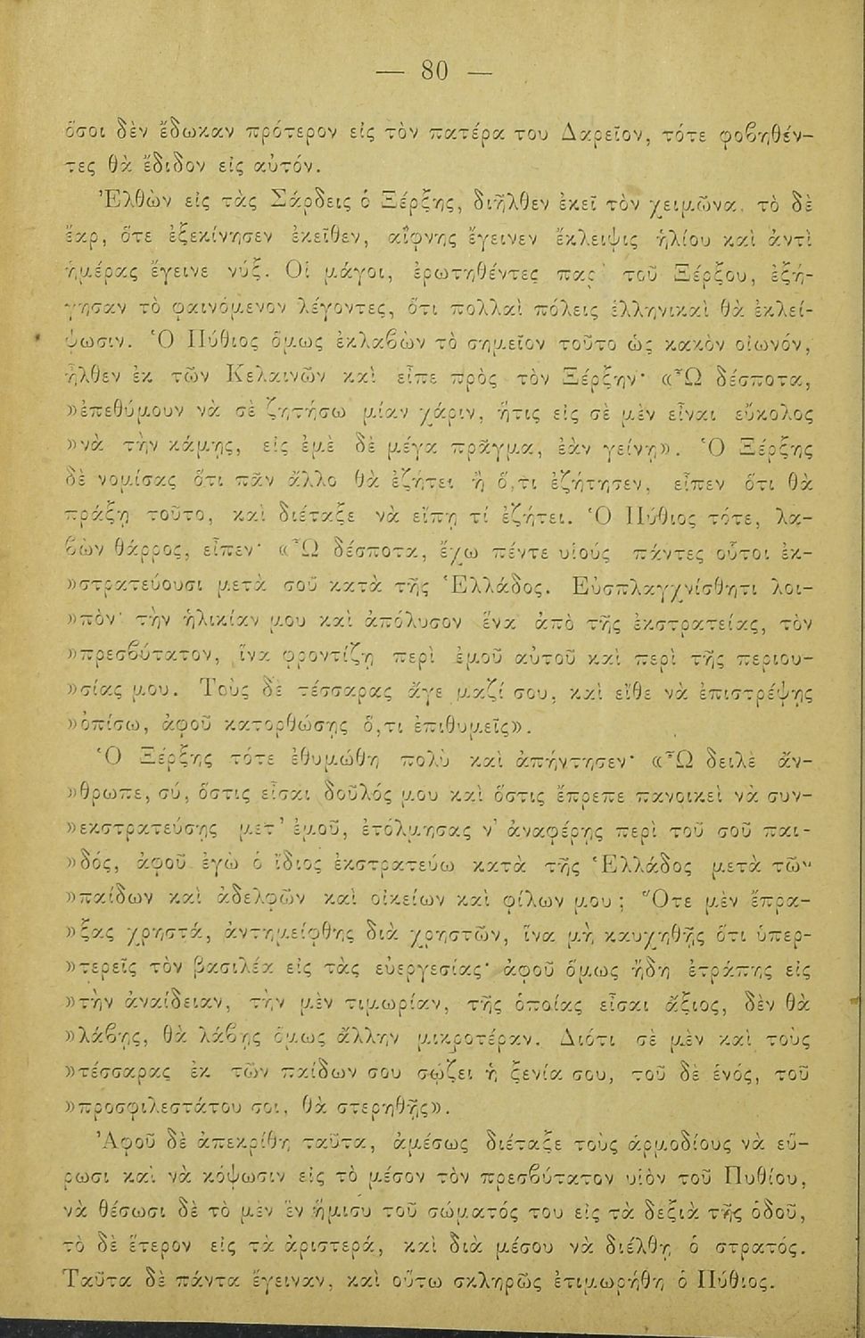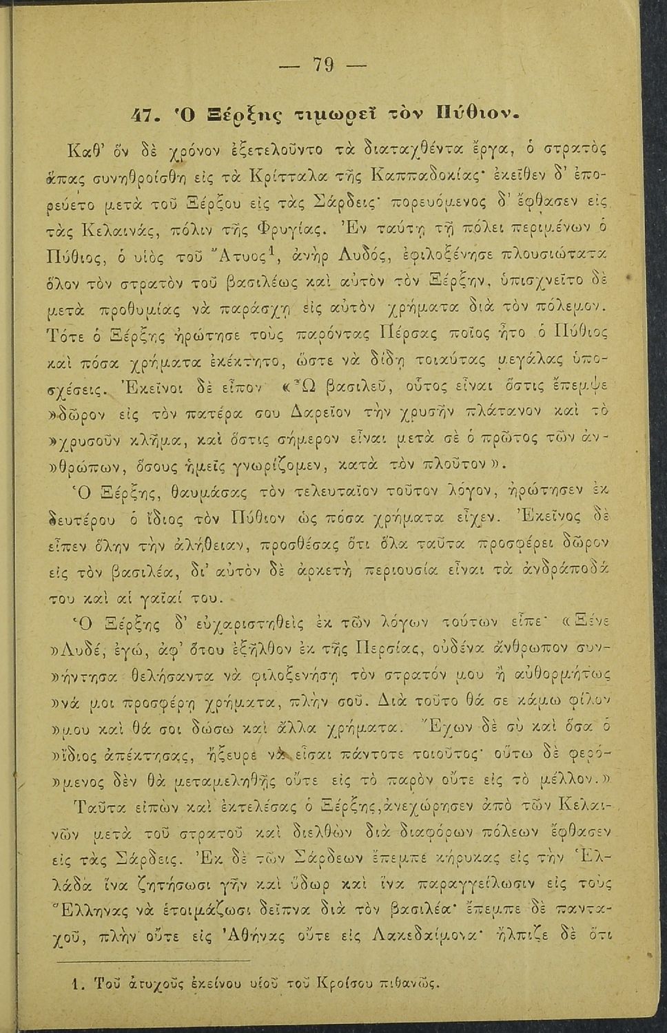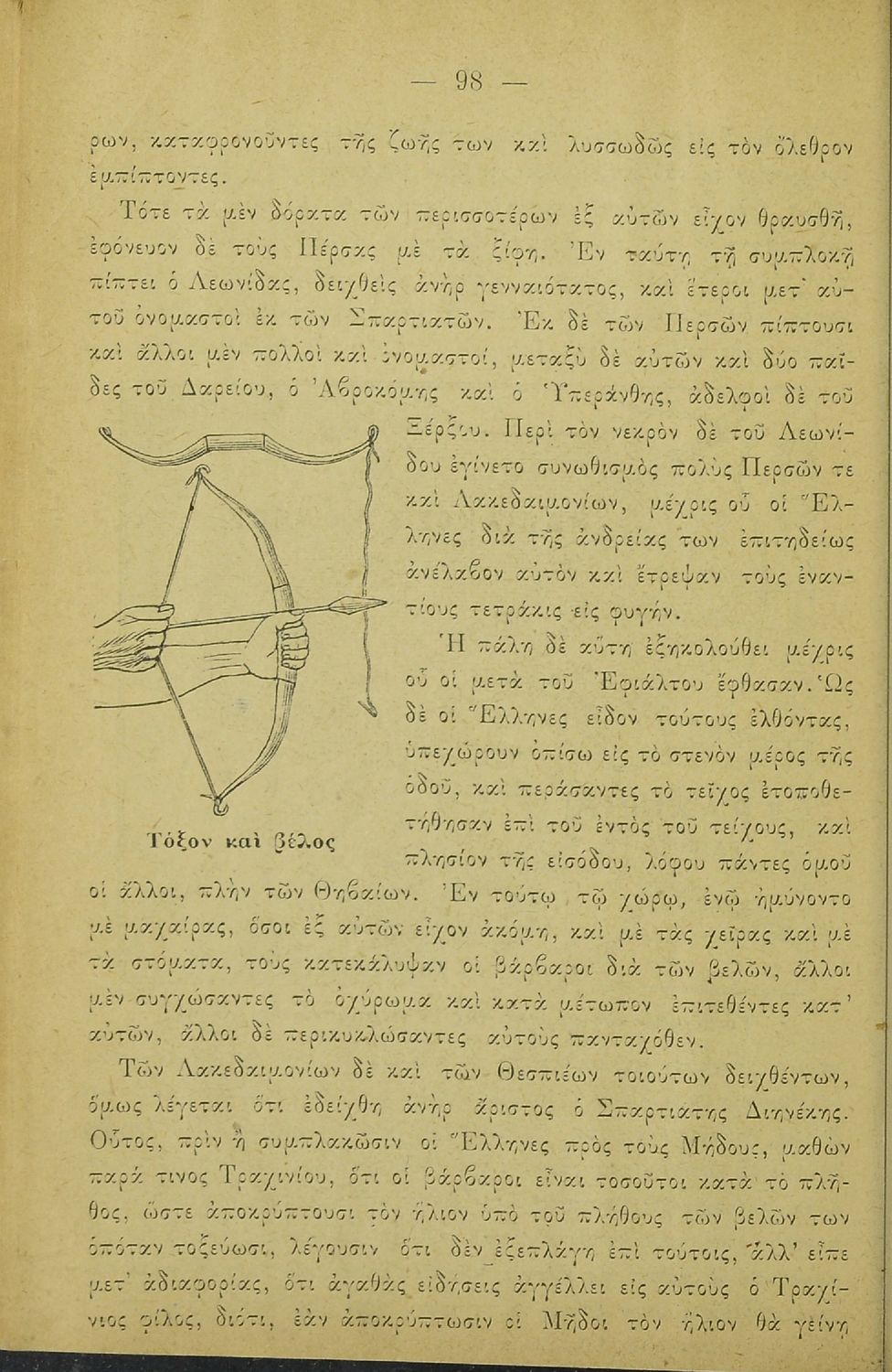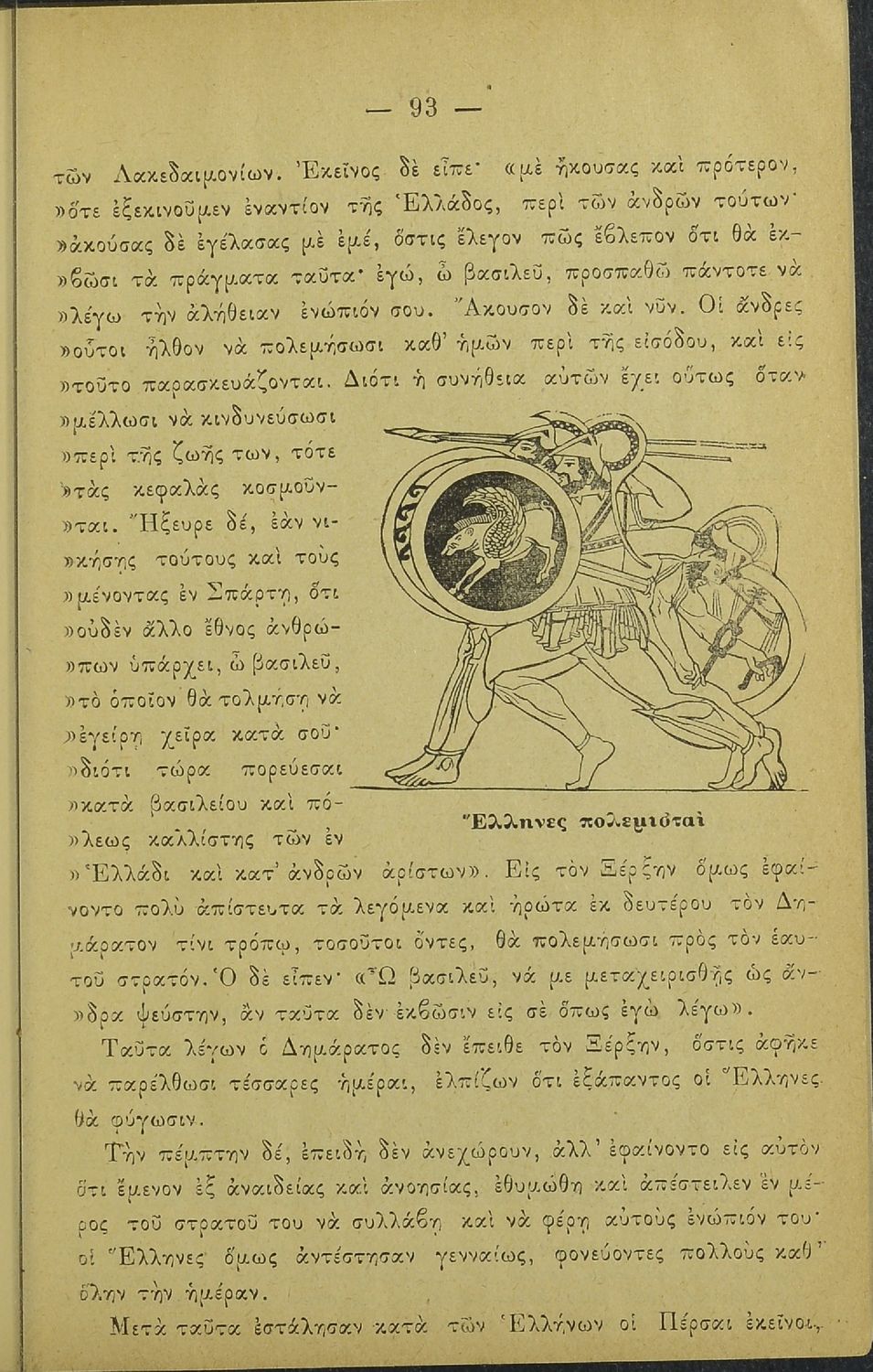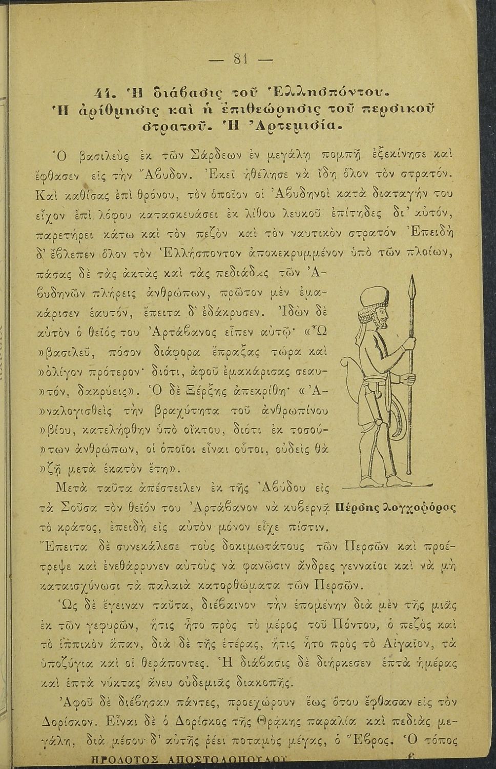 Βαθμίδα εκπαίδευσης: Πρωτοβάθμια Τάξη: Δ' Δημοτικού Μάθημα: Νέα Ελληνικά Γλώσσα: Καθαρεύουσα Παρουσίαση περιεχομένου: Αναγνωστικό Δ΄ Δημοτικού που περιλαμβάνει εισαγωγικά σχόλια στη ζωή και στο έργο του Ηρόδοτου, διασκευασμένα αποσπάσματα από το έργο του, και ποιήματα εμπνευσμένα από τη νεώτερη ελληνική ιστορία, τη θρησκευτική και εθνική παράδοση, την κοινωνική ζωή των ανθρώπων και την αγάπη για την φύση και τα ζώα. |