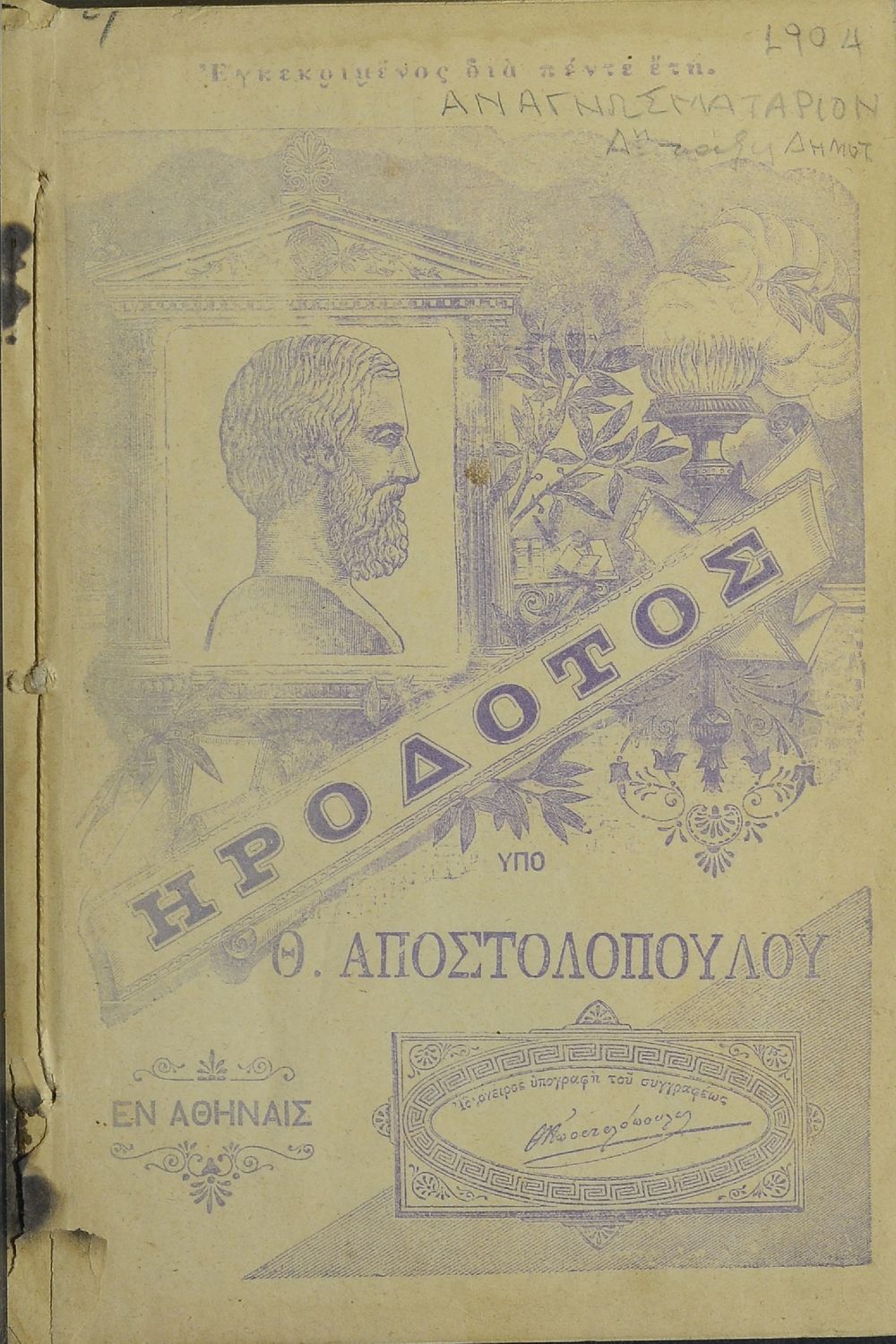 Τίτλος: Ηρόδοτος και ποιήσεις προς χρήσιν των μαθητών της Δ΄ τάξεως των Δημοτικών Σχολείων αρρένων τε και θηλέων