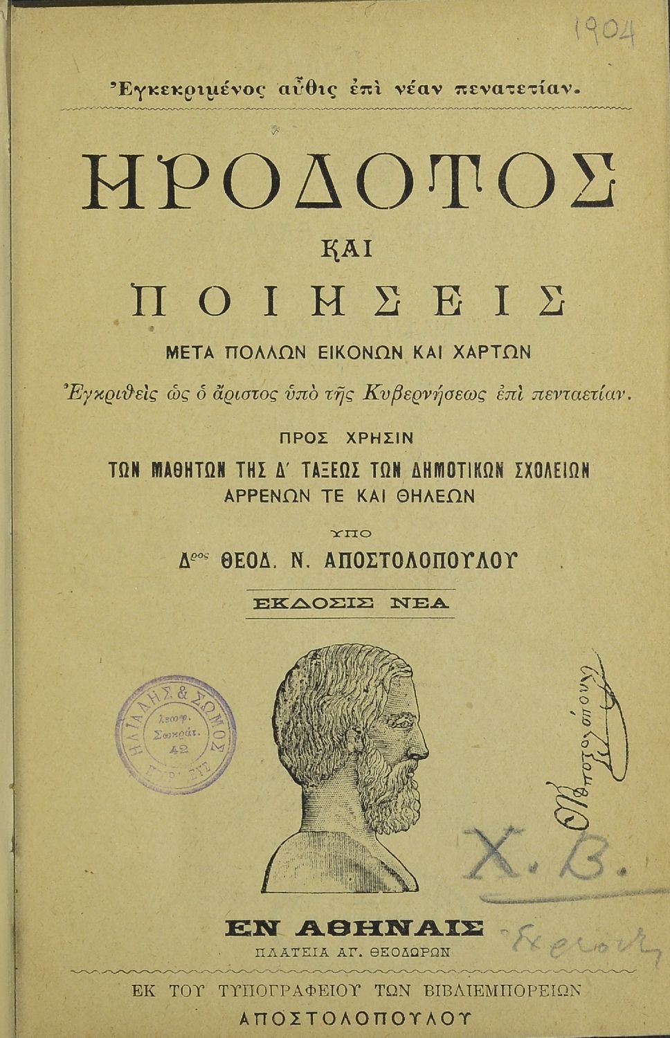Ηρόδοτος και ποιήσεις προς χρήσιν των μαθητών της Δ΄ τάξεως των Δημοτικών Σχολείων αρρένων τε και θηλέων