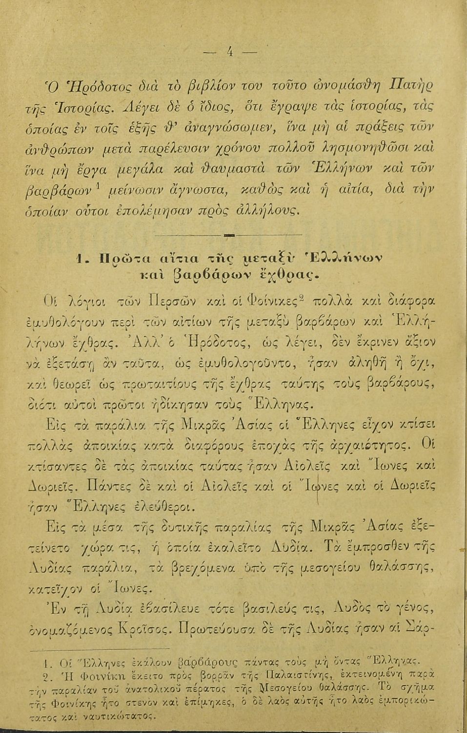 Αναγνωστικό Δ΄ Δημοτικού που περιλαμβάνει διηγήματα εμπνευσμένα από το έργο του Ηρόδοτου και ποιήματα του Παράσχου, του Αλέξανδρου Σούτσου, του Κάλβου και του Αλ. Τανταλίδη.