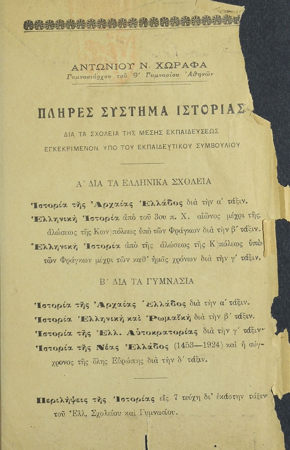 Τίτλος: Ελληνικόν αναγνωσματάριον προς χρήσιν των μαθητών της ΣΤ΄ τάξεως των Δημοτικών Σχολείων