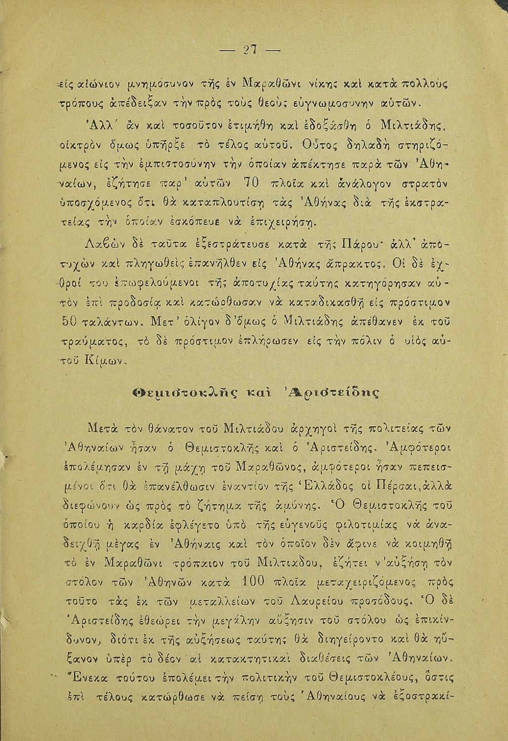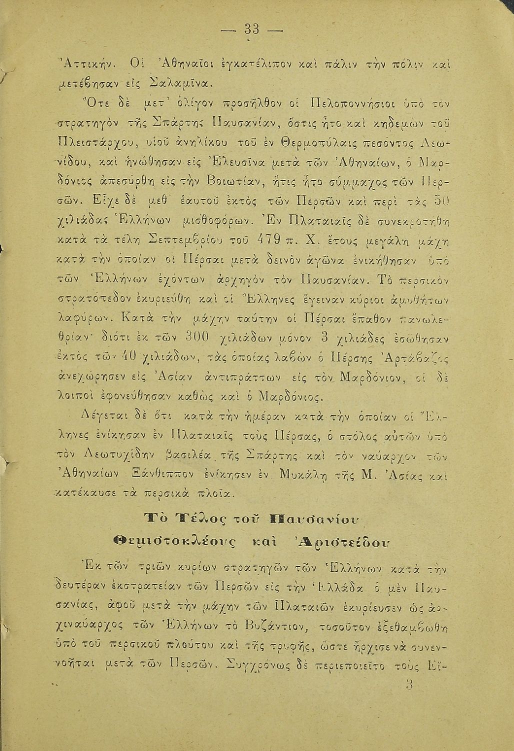 Βαθμίδα εκπαίδευσης: Πρωτοβάθμια Τάξη: Γ' Δημοτικού Μάθημα: Ιστορία Γλώσσα: Καθαρεύουσα Παρουσίαση περιεχομένου: Σχολικό εγχειρίδιο Ιστορίας Γ΄ Δημοτικού που καλύπτει το διάστημα από τους προϊστορικούς χρόνους ως τη Μακεδονική Ηγεμονία. |
