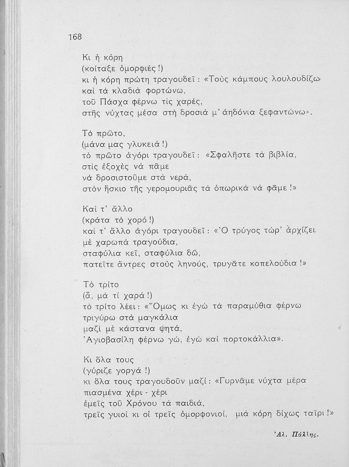 Σχολικό εγχειρίδιο Νέων Ελληνικών Γ΄ Γυμνασίου και Α' Αστικού Σχολείου που περιέχει πεζά και ποιήματα Ελλήνων συγγραφέων εμπνευσμένα από τη θρησκευτική και κοινωνική ζωή, την ελληνική μυθολογία, την αρχαία και