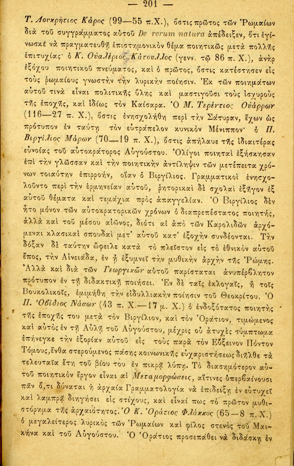 LDR 01285 2200193 4500 035 ## _a20-02151 040 ## _aΚΕΝΕΚ - Εταιρεία Σπουδών Νεοελληνικού Πολιτισμού και Παιδείας 041 ## _ael 100 ## _aΔ. Πατσόπουλος 110 ## _a2151 245 0# _aΕγχειρίδιον της γενικής ιστορίας προς χρήσιν των Γυμνασίων - Ιστορία των Ρωμαίων 260 ## _aΑθήνα _bΑλέξανδρος Παπαγεωργίου _c1889 300 ## _a264 _c19 520 ## _aΣχολικό εγχειρίδιο Ιστορίας Γυμνασίου που περιλαμβάνει την ιστορία της Ρώμης από την ίδρυση της μέχρι και το 400 μ. Χ και εστιάζει στις κτίσεις της Ρώμης, το πολίτευμά της και στα πνευματικά ρεύματα και είδη φιλοσοφικής σκέψης που αναπτύχθηκαν κατά αυτή την περίοδο. 521 ## _aΓυμνάσιο 522 ## _aΕλλάδα 546 ## _aΚαθαρεύουσα 563 ## _aΣκληρό Εξώφυλλο 650 #4 _aΚαίσαρας _aΝεοπλατωνισμός _aΟκταβιανός _aΠλωτίνος