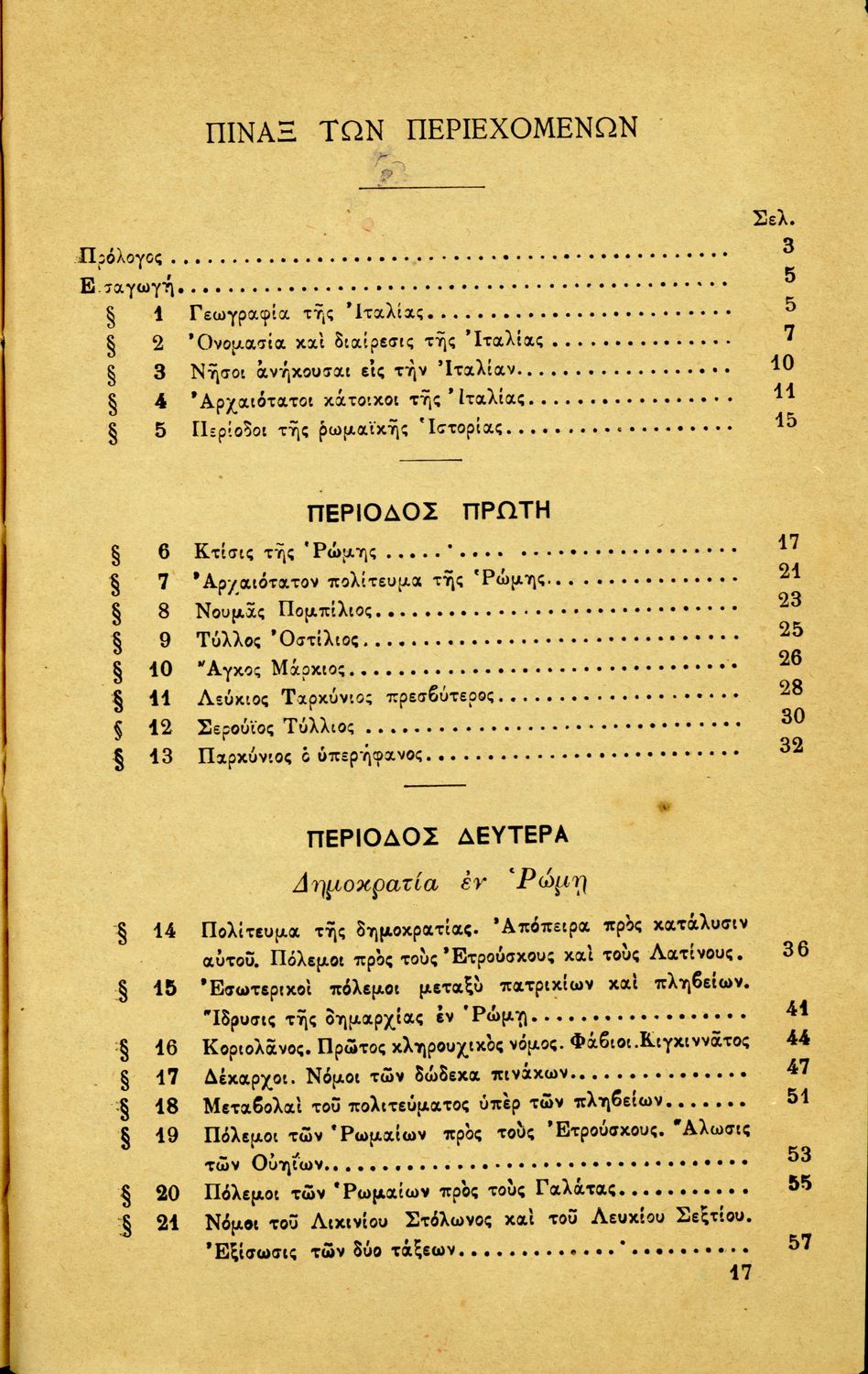 Βαθμίδα εκπαίδευσης: Δευτεροβάθμια Τάξη: Γυμνάσιο Μάθημα: Ιστορία Γλώσσα: Καθαρεύουσα Παρουσίαση περιεχομένου: Σχολικό εγχειρίδιο Ιστορίας Γυμνασίου που περιλαμβάνει την ιστορία της Ρώμης από την ίδρυση της μέχρι και το 400 μ. Χ και εστιάζει στις κτίσεις της Ρώμης, το πολίτευμά της και στα πνευματικά ρεύματα και είδη φιλοσοφικής σκέψης που αναπτύχθηκαν κατά αυτή την περίοδο. |