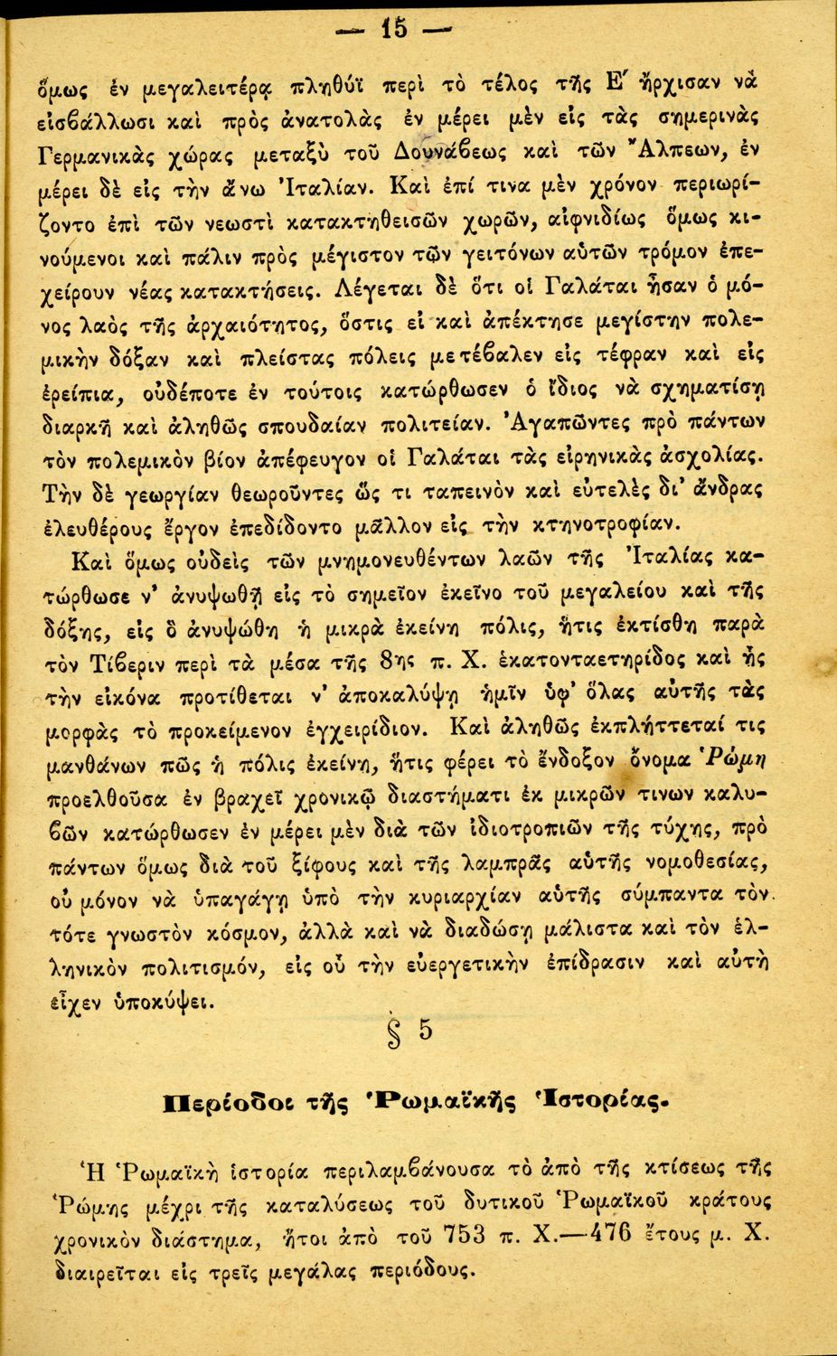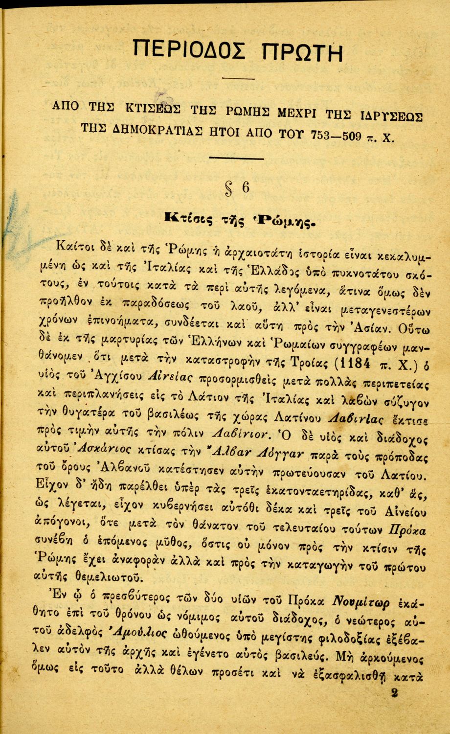 LDR 01285 2200193 4500 035 ## _a20-02151 040 ## _aΚΕΝΕΚ - Εταιρεία Σπουδών Νεοελληνικού Πολιτισμού και Παιδείας 041 ## _ael 100 ## _aΔ. Πατσόπουλος 110 ## _a2151 245 0# _aΕγχειρίδιον της γενικής ιστορίας προς χρήσιν των Γυμνασίων - Ιστορία των Ρωμαίων 260 ## _aΑθήνα _bΑλέξανδρος Παπαγεωργίου _c1889 300 ## _a264 _c19 520 ## _aΣχολικό εγχειρίδιο Ιστορίας Γυμνασίου που περιλαμβάνει την ιστορία της Ρώμης από την ίδρυση της μέχρι και το 400 μ. Χ και εστιάζει στις κτίσεις της Ρώμης, το πολίτευμά της και στα πνευματικά ρεύματα και είδη φιλοσοφικής σκέψης που αναπτύχθηκαν κατά αυτή την περίοδο. 521 ## _aΓυμνάσιο 522 ## _aΕλλάδα 546 ## _aΚαθαρεύουσα 563 ## _aΣκληρό Εξώφυλλο 650 #4 _aΚαίσαρας _aΝεοπλατωνισμός _aΟκταβιανός _aΠλωτίνος