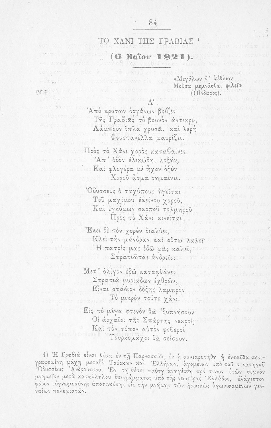 Σχολικό εγχειρίδιο Νέων Ελληνικών για την Α' Ελληνικού Σχολείου που περιλαμβάνει ποιήματα και πεζά εμπνευσμένα από την αρχαία ελληνική και νεώτερη ιστορία της Ελλάδας, τη θρησκευτική παράδοση, την αγάπη για την πατρίδα και τα εθνικά ιδεώδη. Περιέχει και βιογραφικά σημειώματα των συγγραφέων.