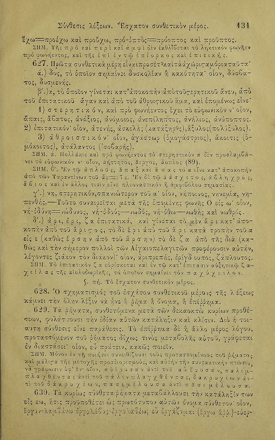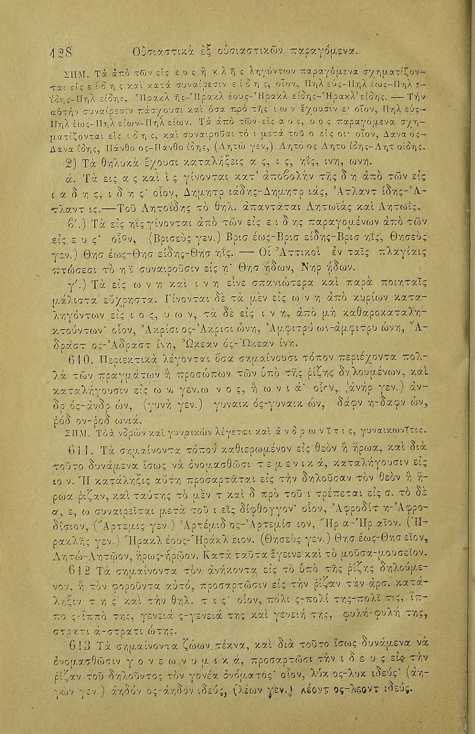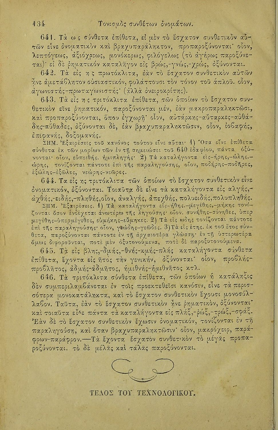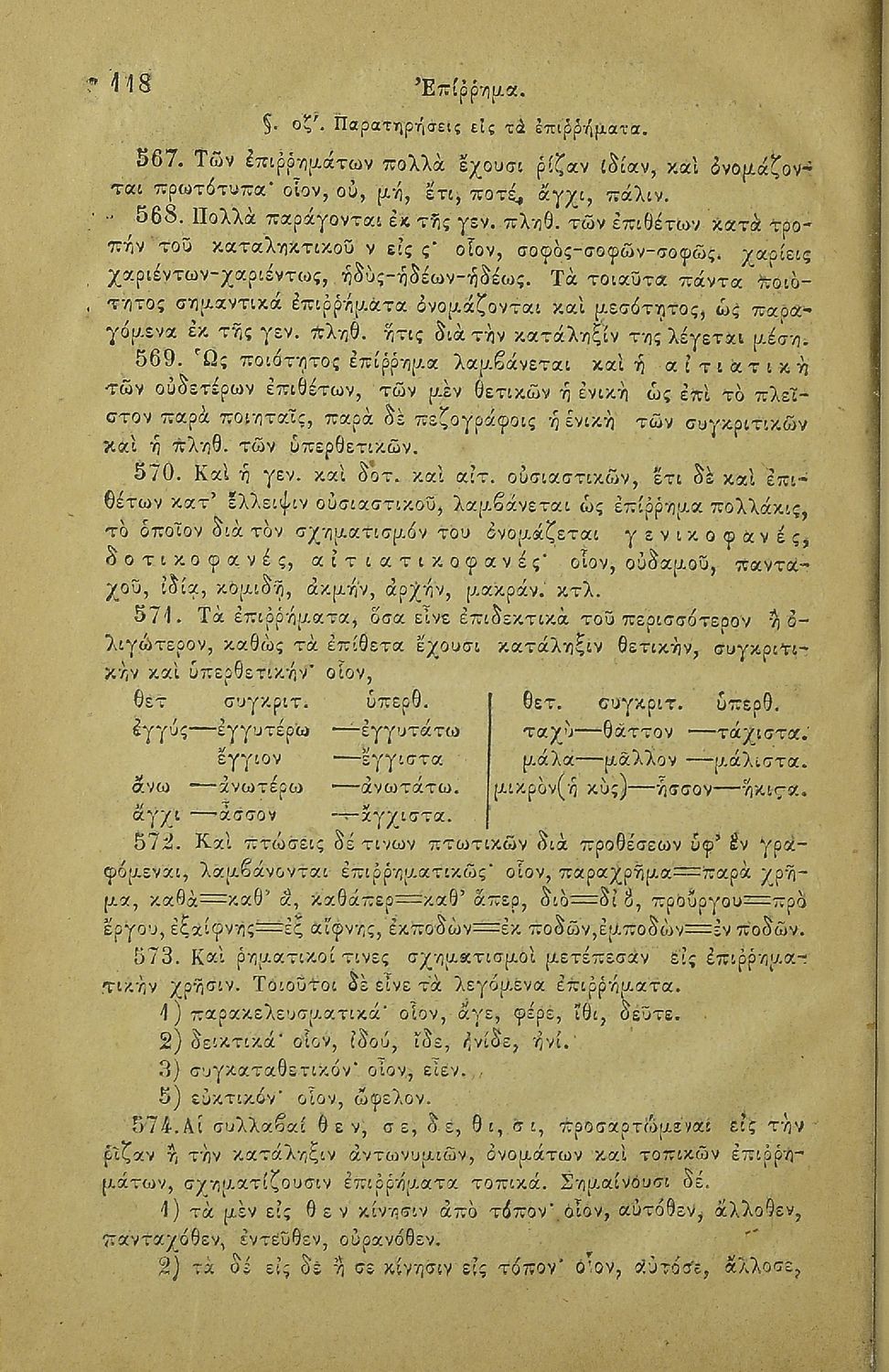 Σχολικό εγχειρίδιο Αρχαίων Ελληνικών για τα Ελληνικά Σχολεία και Παρθεναγωγεία που περιέχει τους κανόνες γραμματικής και είναι χωρισμένο σε φθογγολογικό, τυπολογικό και ετυμολογικό μέρος.