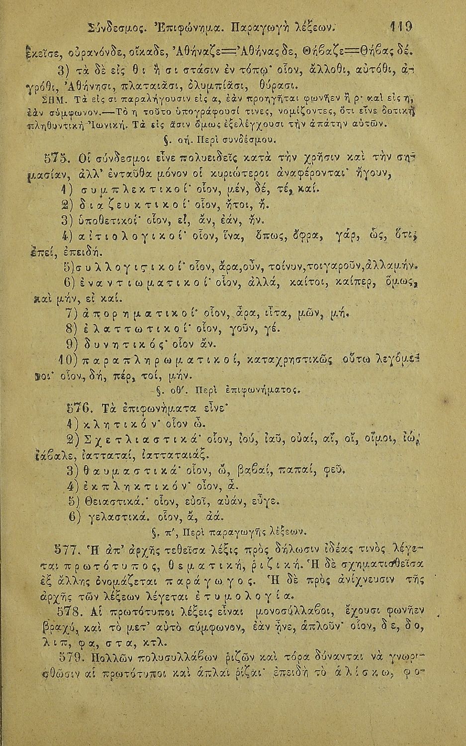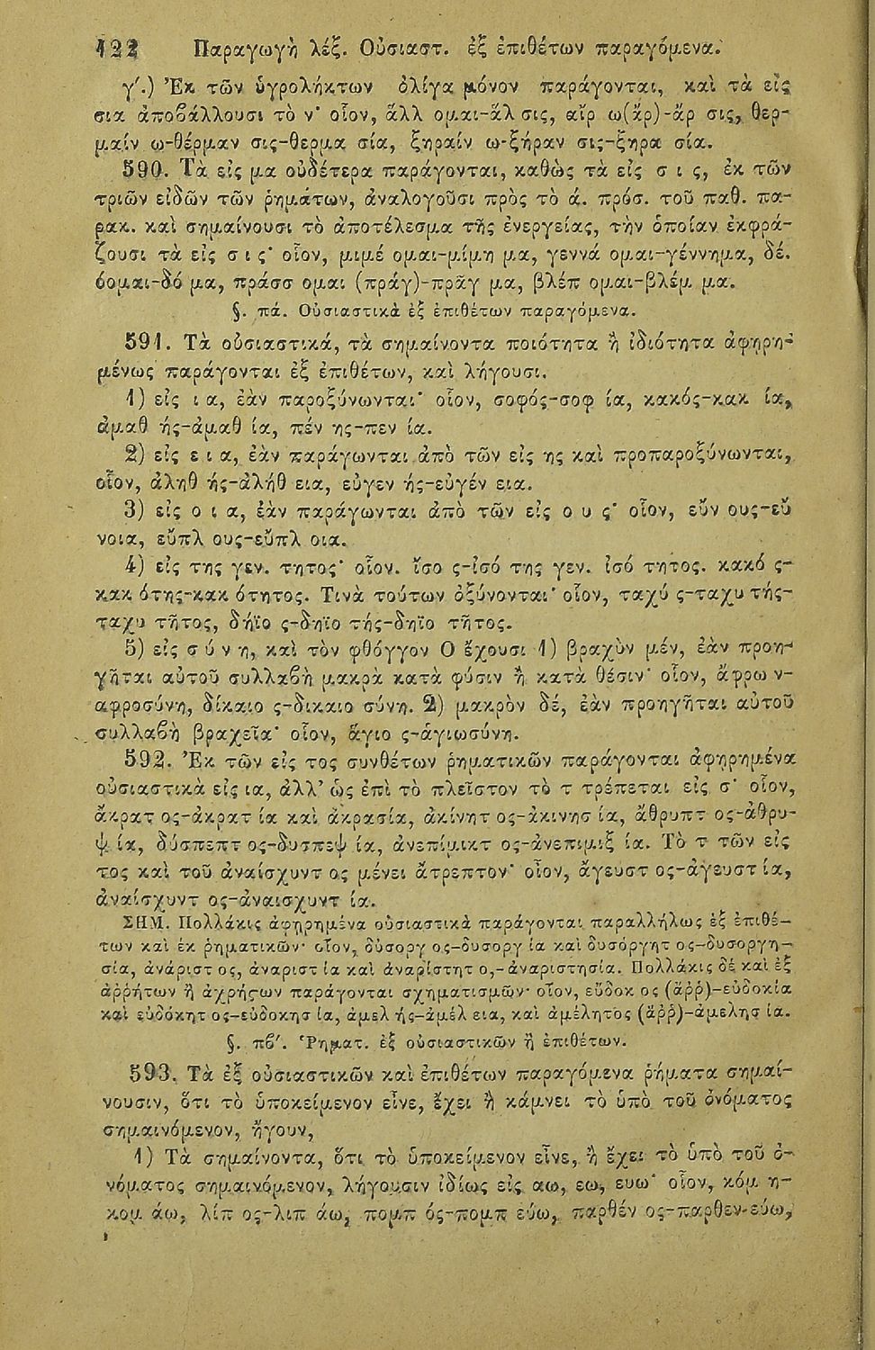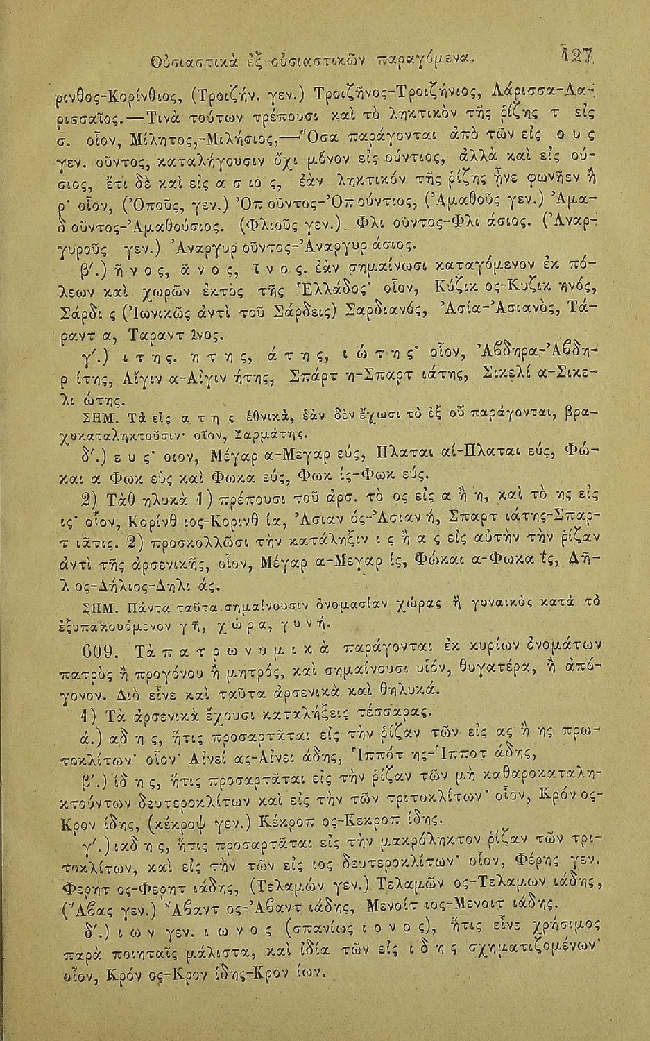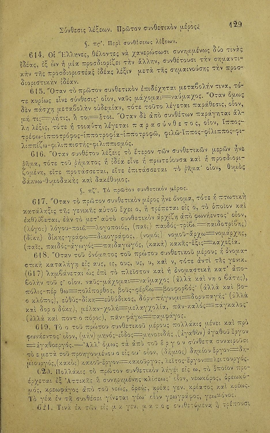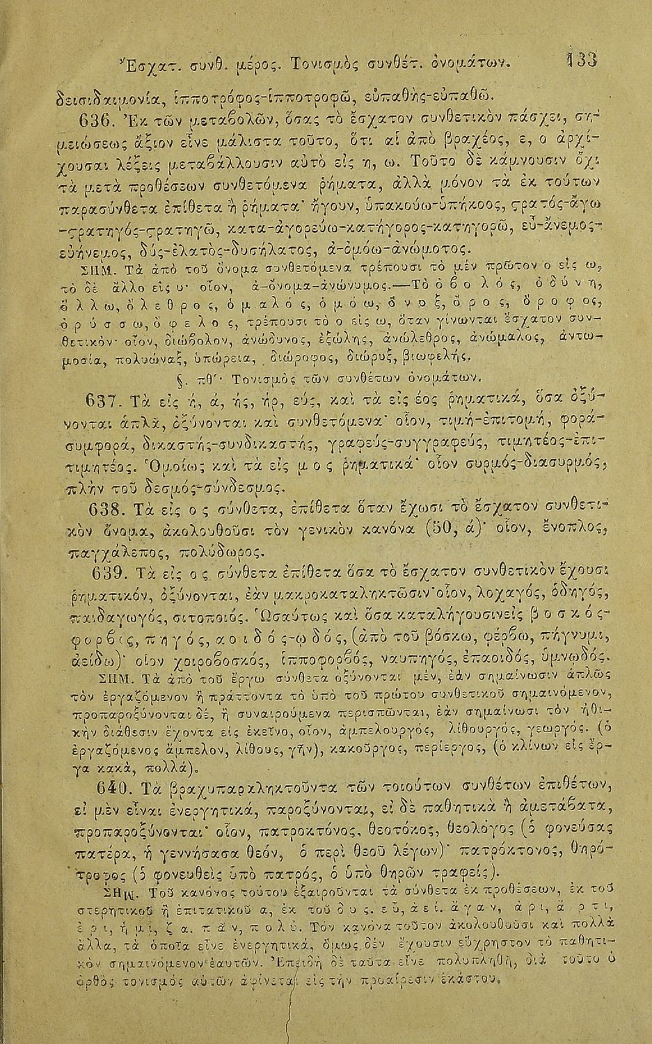 Σχολικό εγχειρίδιο Αρχαίων Ελληνικών για τα Ελληνικά Σχολεία και Παρθεναγωγεία που περιέχει τους κανόνες γραμματικής και είναι χωρισμένο σε φθογγολογικό, τυπολογικό και ετυμολογικό μέρος.
