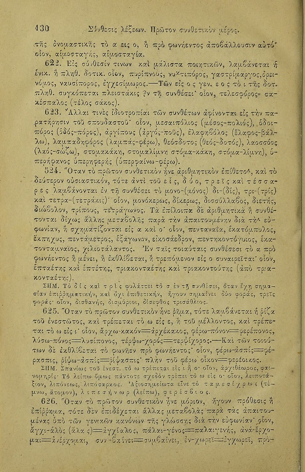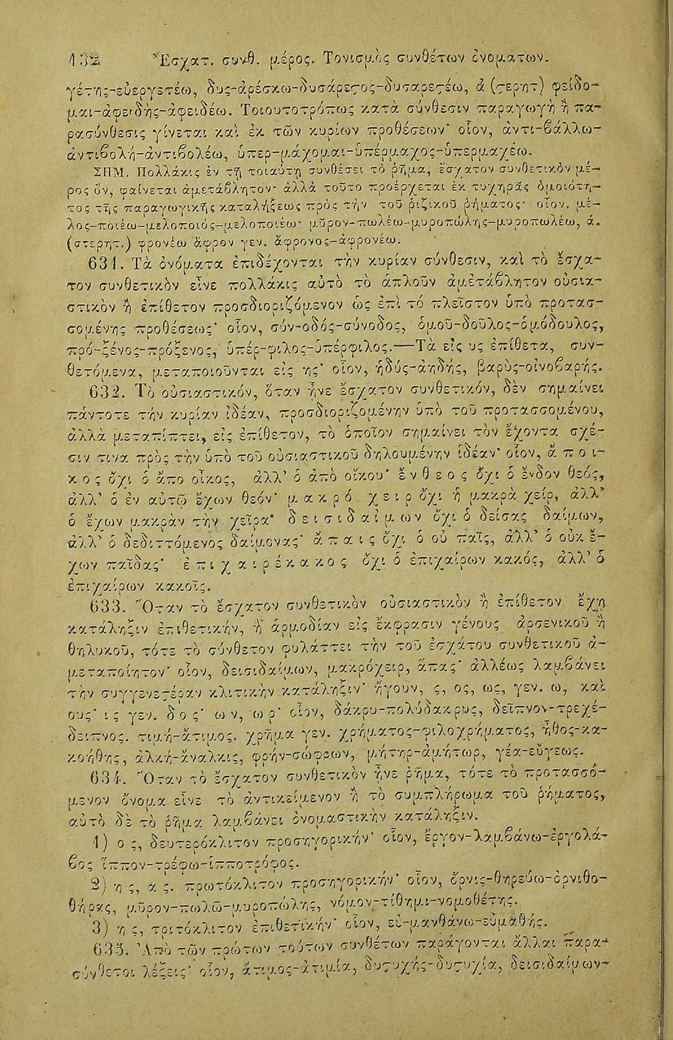 Σχολικό εγχειρίδιο Αρχαίων Ελληνικών για τα Ελληνικά Σχολεία, Παρθεναγωγεία και Γυμνάσια που περιέχει τους κανόνες γραμματικής και είναι χωρισμένο σε φθογγολογικό, τυπολογικό και ετυμολογικό μέρος.
