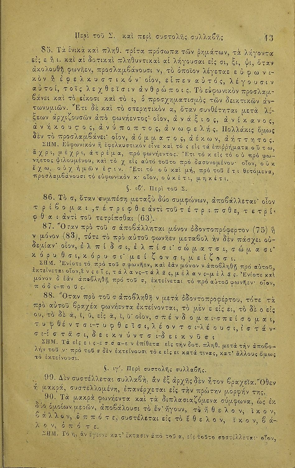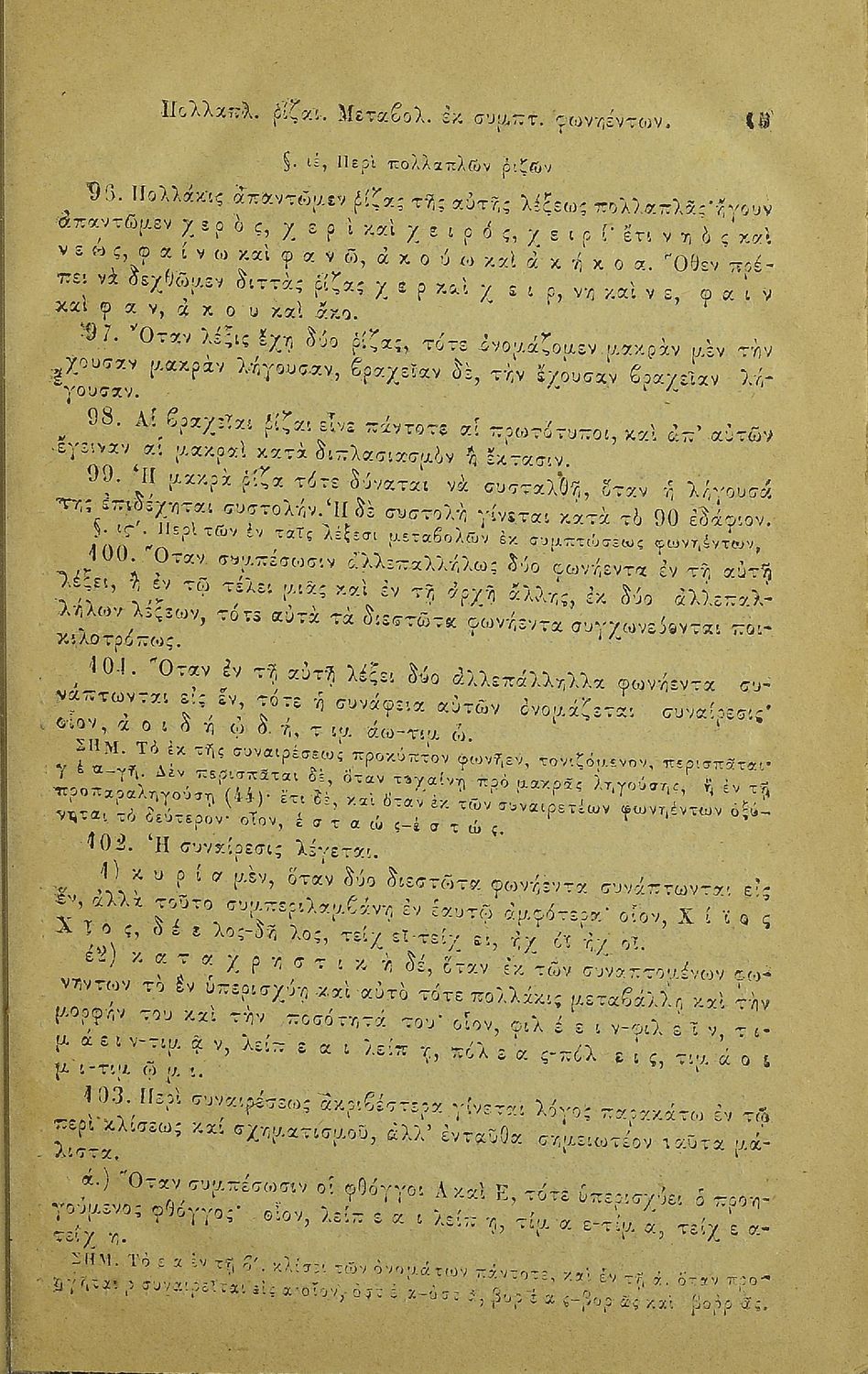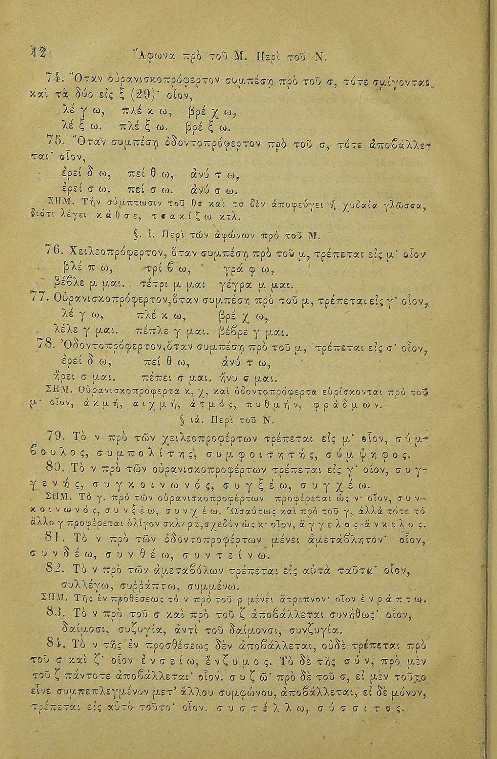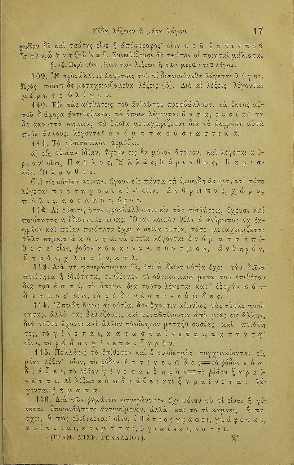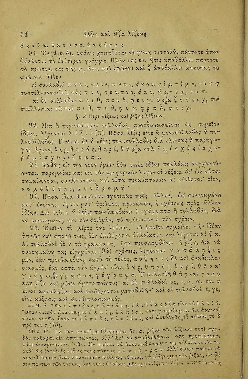 Σχολικό εγχειρίδιο Αρχαίων Ελληνικών για τα Ελληνικά Σχολεία και Παρθεναγωγεία που περιέχει τους κανόνες γραμματικής και είναι χωρισμένο σε φθογγολογικό, τυπολογικό και ετυμολογικό μέρος.