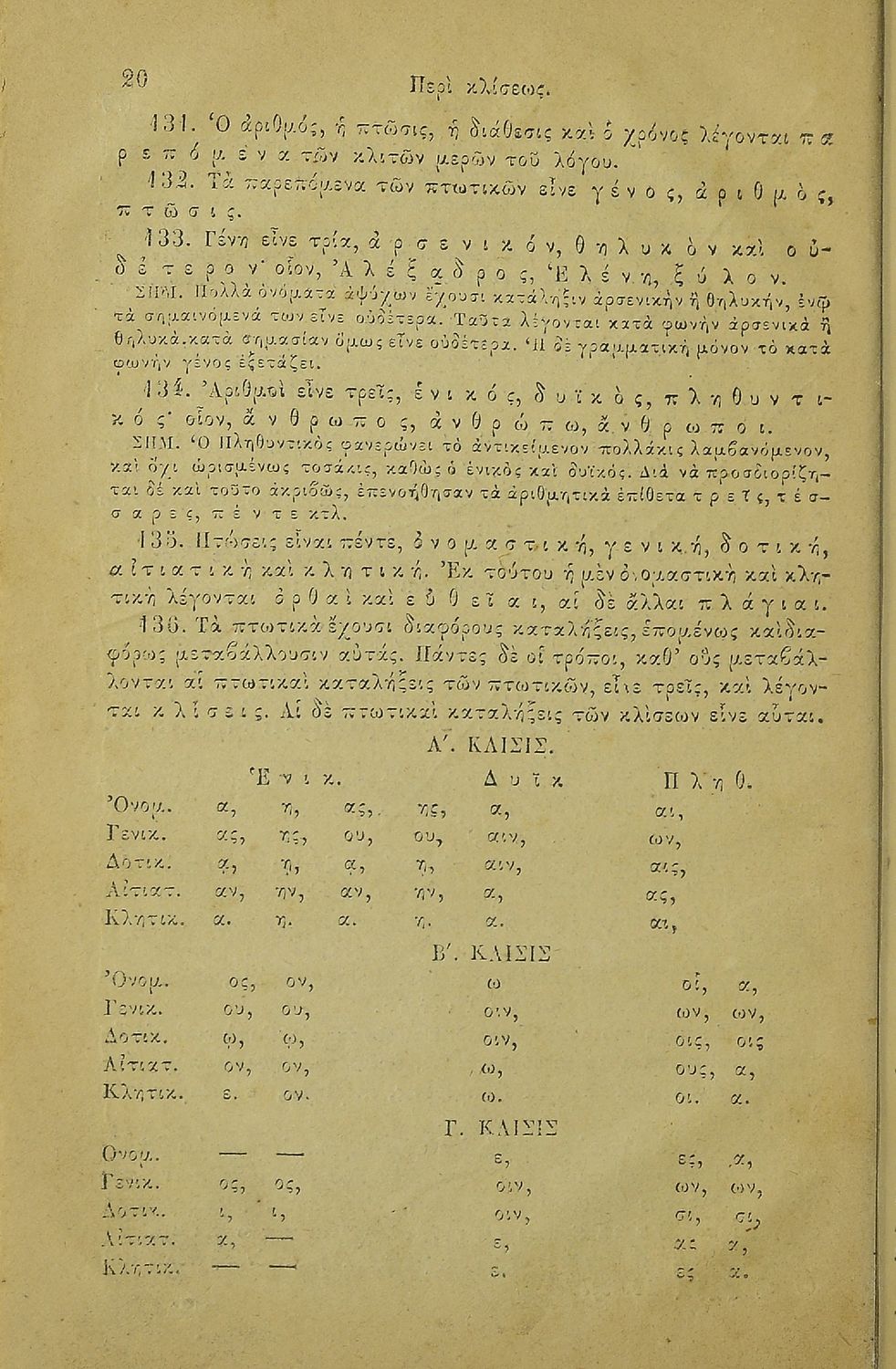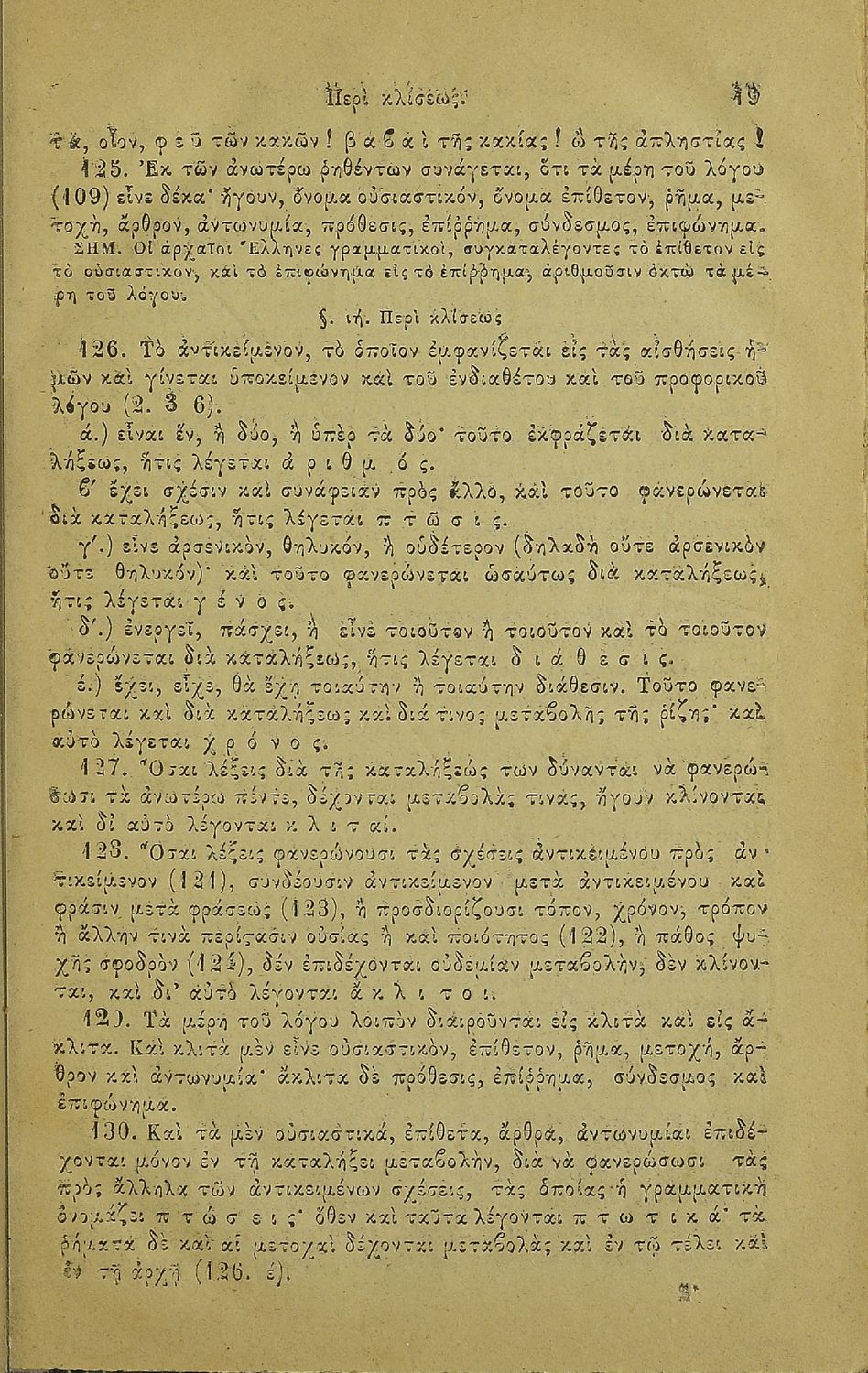 Σχολικό εγχειρίδιο Αρχαίων Ελληνικών για τα Ελληνικά Σχολεία, Παρθεναγωγεία και Γυμνάσια που περιέχει τους κανόνες γραμματικής και είναι χωρισμένο σε φθογγολογικό, τυπολογικό και ετυμολογικό μέρος.