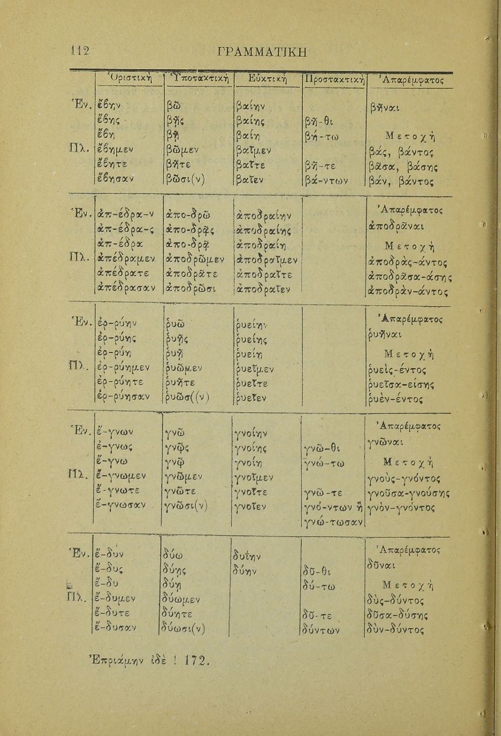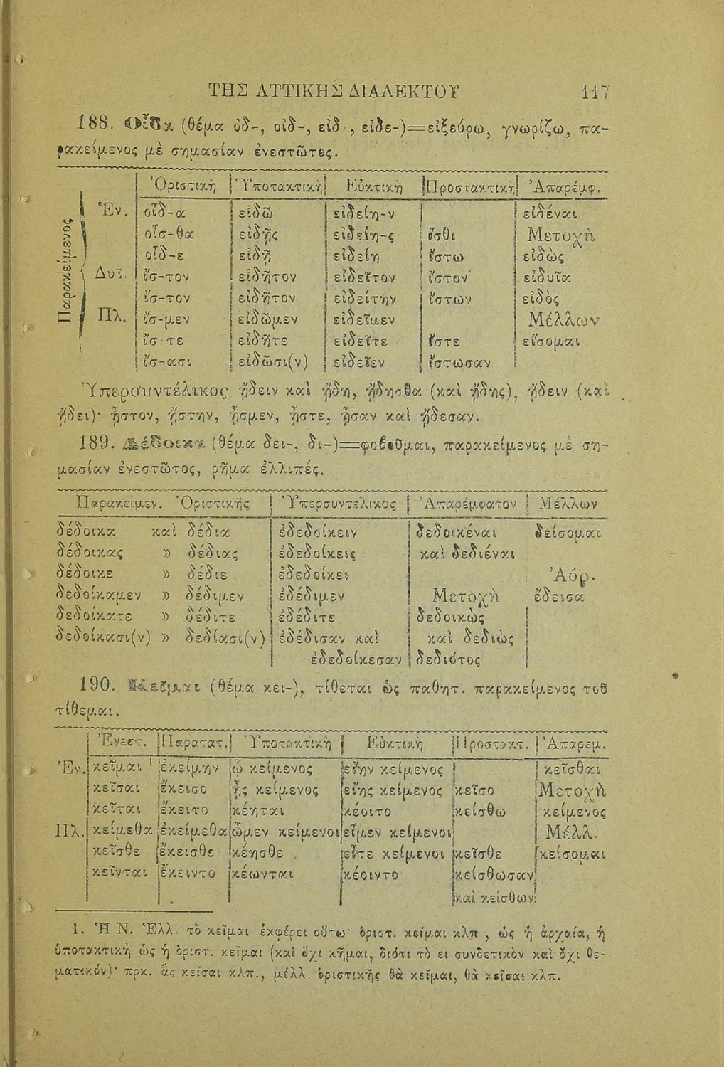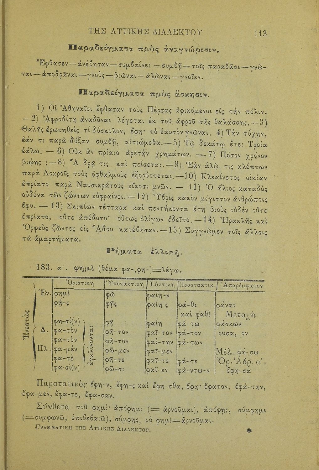 Σχολικό εγχειρίδιο Αρχαίων Ελληνικών που περιλαμβάνει τους κανόνες της γραμματικής και του συντακτικού της αττικής διαλέκτου.