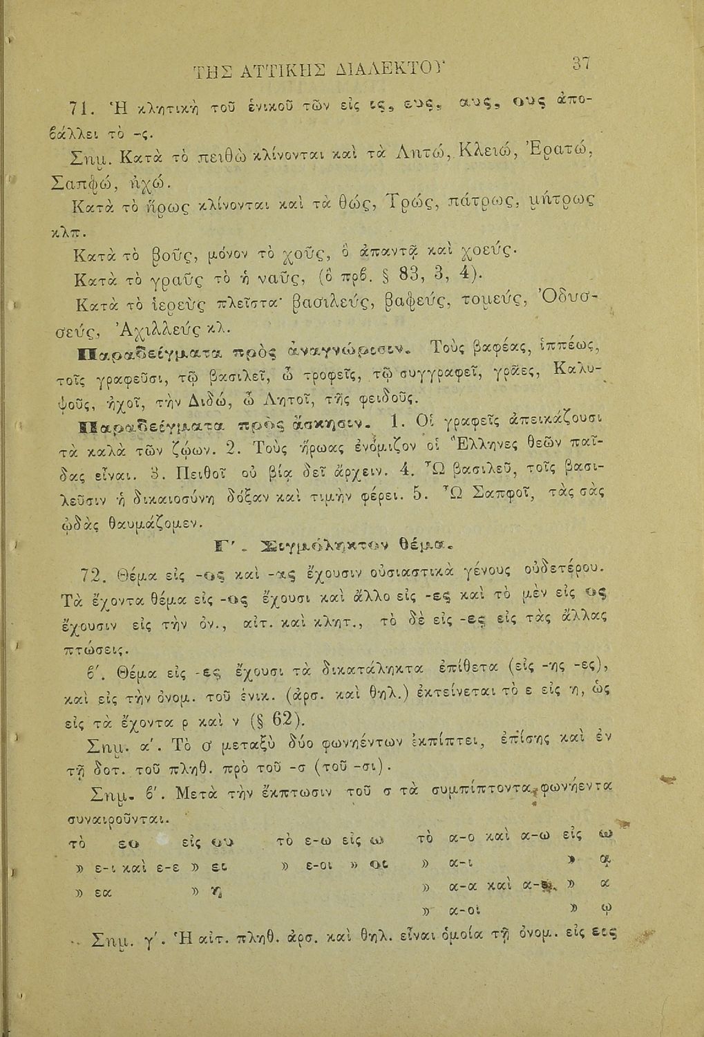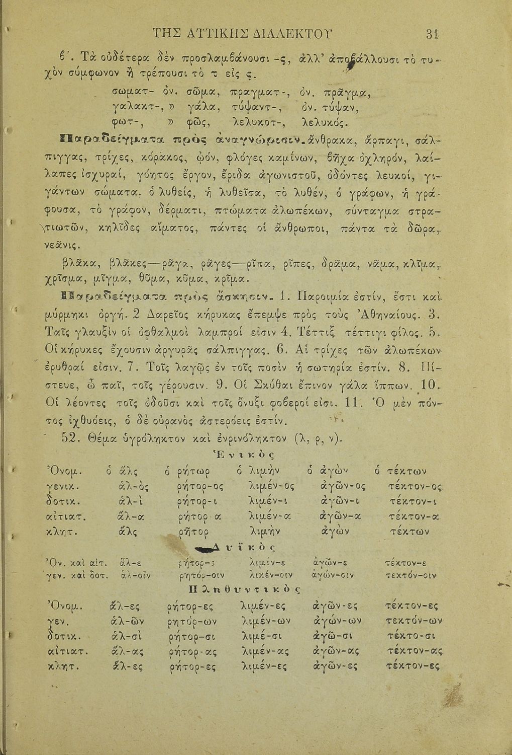 520 ## _aΣχολικό εγχειρίδιο Αρχαίων Ελληνικών που περιλαμβάνει τους κανόνες της γραμματικής και του συντακτικού της αττικής διαλέκτου.