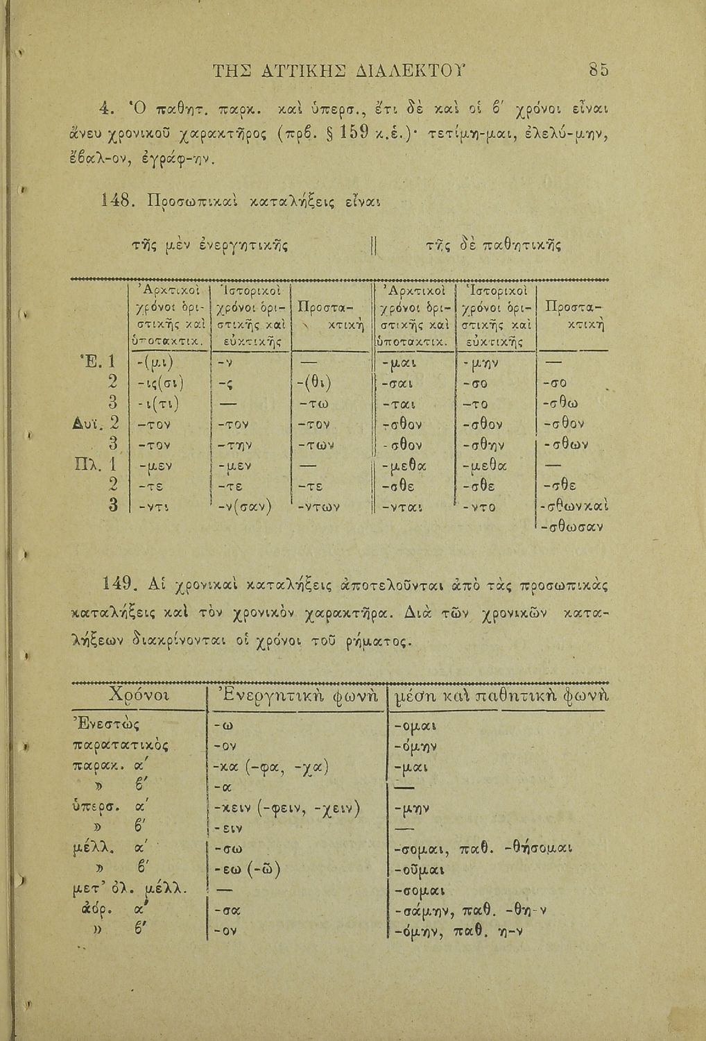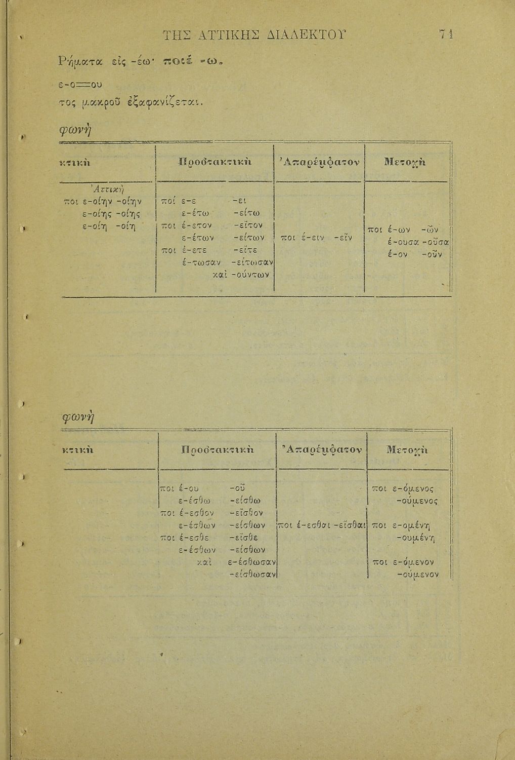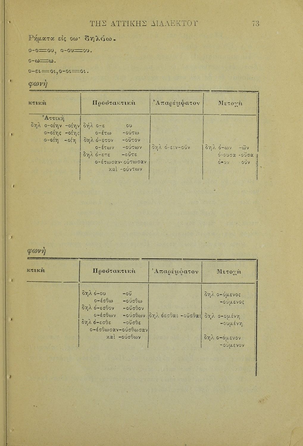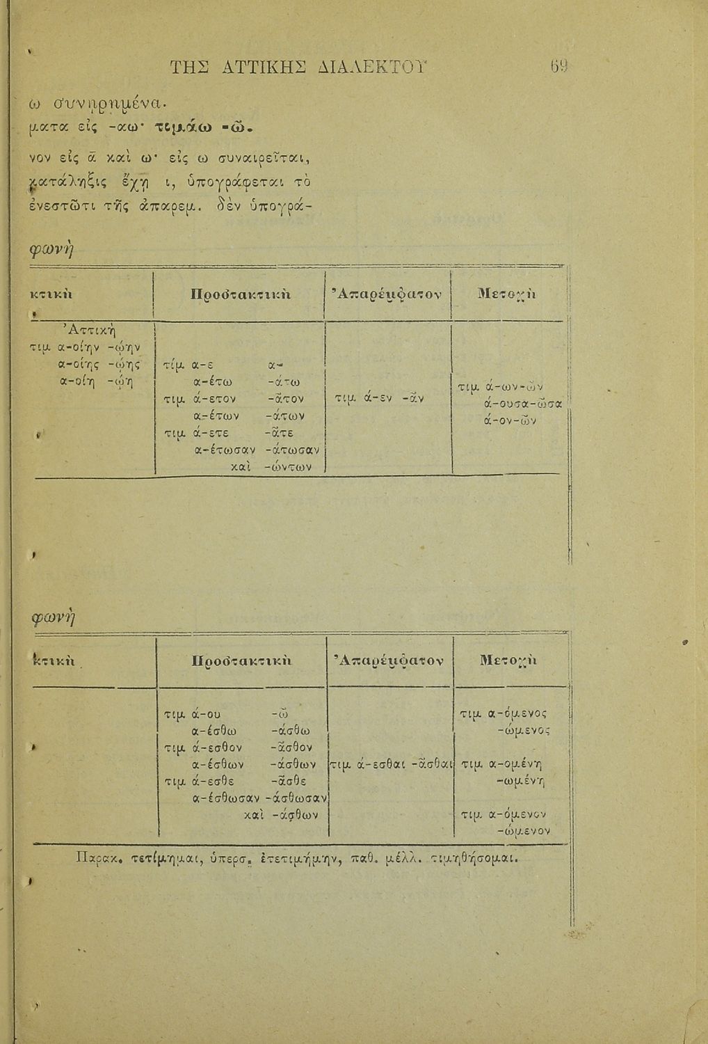 Σχολικό εγχειρίδιο Αρχαίων Ελληνικών που περιλαμβάνει τους κανόνες της γραμματικής και του συντακτικού της αττικής διαλέκτου.