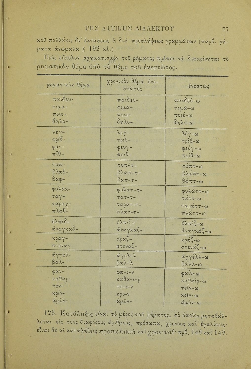 Παρουσίαση περιεχομένου: Σχολικό εγχειρίδιο Αρχαίων Ελληνικών που περιλαμβάνει τους κανόνες της γραμματικής και του συντακτικού της αττικής διαλέκτου.