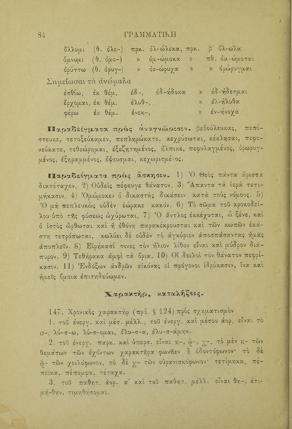 Μαθητικό βοήθημα Αρχαίων Ελληνικών για τα Ελληνικά Σχολεία, Παρθεναγωγεία και Γυμνάσια που περιλαμβάνει γραμματική της αρχαίας ελληνικής και κατάλογο ανωμάλων ρημάτων.