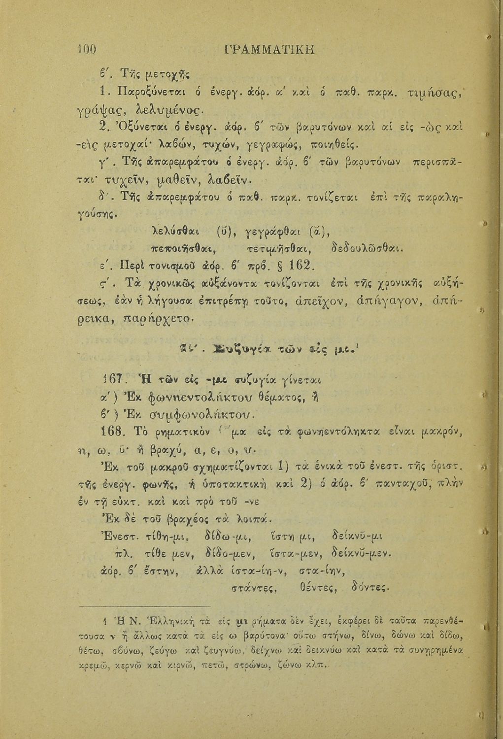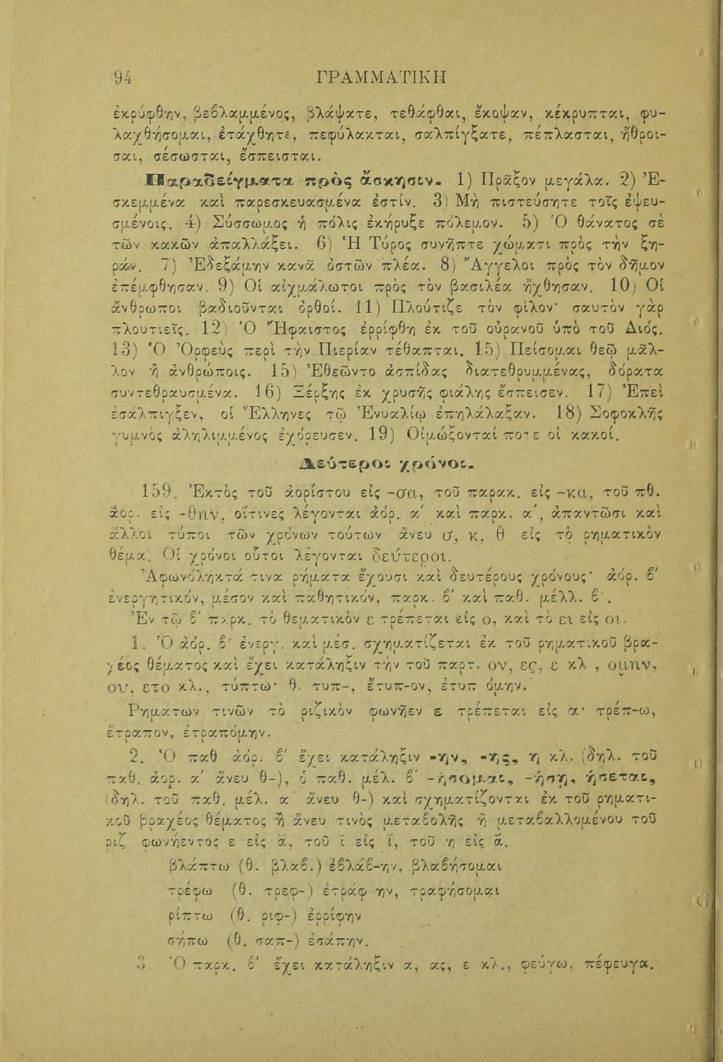 Σχολικό εγχειρίδιο Αρχαίων Ελληνικών για τα Ελληνικά Σχολεία και Παρθεναγωγεία που περιλαμβάνει κανόνες της γραμματικής της αρχαίας ελληνικής και είναι χωρισμένη στο φθογγολογικό και στο τυπολογικό μέρος.
