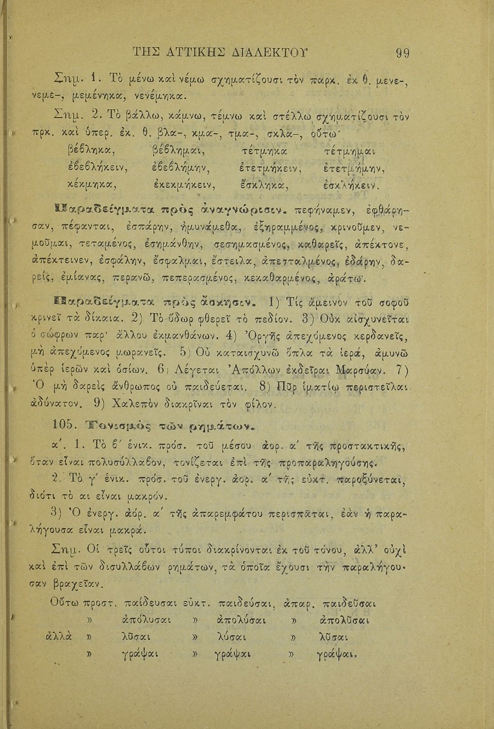 Σχολικό εγχειρίδιο Αρχαίων Ελληνικών για τα Ελληνικά Σχολεία και Γυμνάσια που περιλαμβάνει γραμματική της αρχαίας ελληνικής και είναι χωρισμένο σε φθογγολογικό, τυπολογικό και ετυμολογικό μέρος.