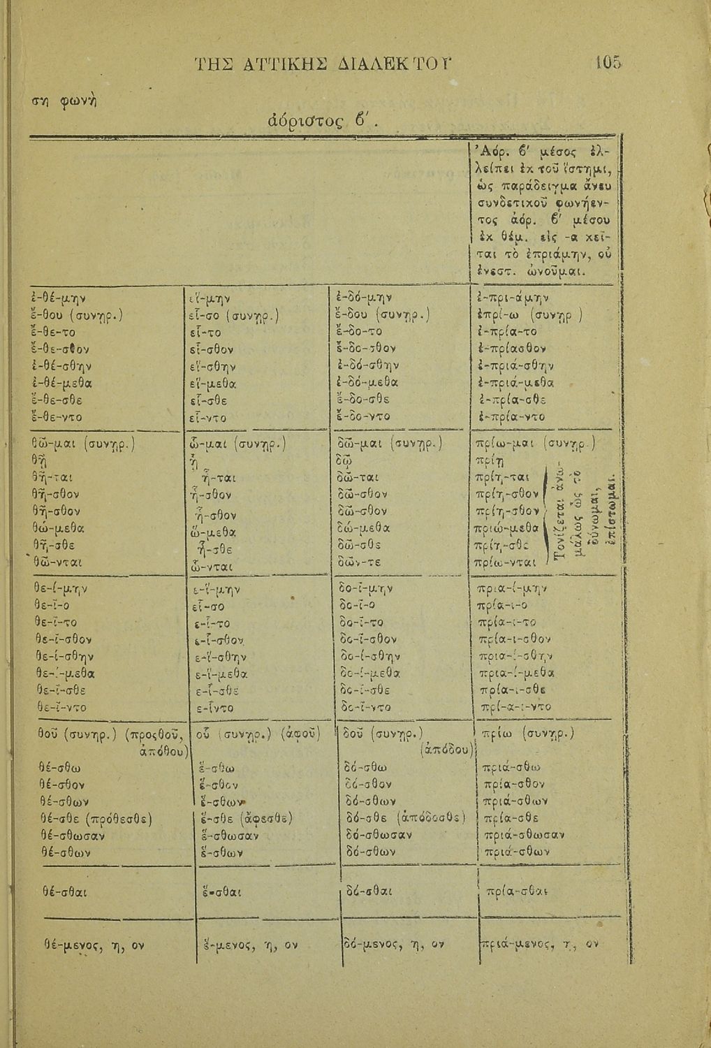 Παρουσίαση περιεχομένου: Σχολικό εγχειρίδιο Αρχαίων Ελληνικών που περιλαμβάνει τους κανόνες της γραμματικής και του συντακτικού της αττικής διαλέκτου.