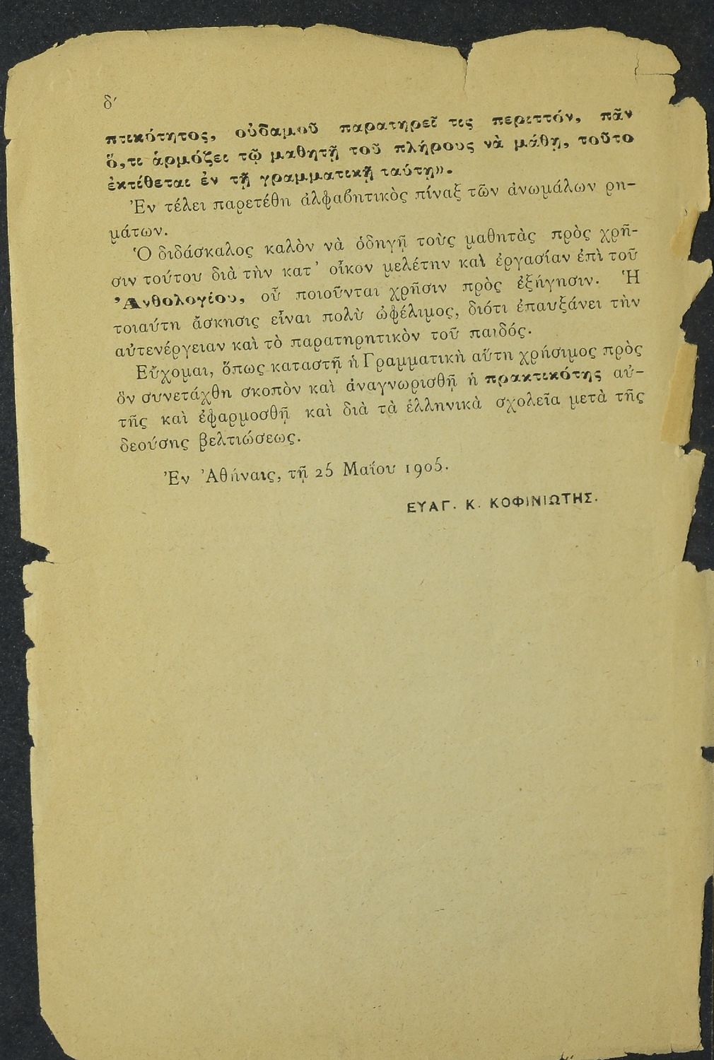 Έτος έκδοσης: 1905 Τόπος έκδοσης: Αθήνα |