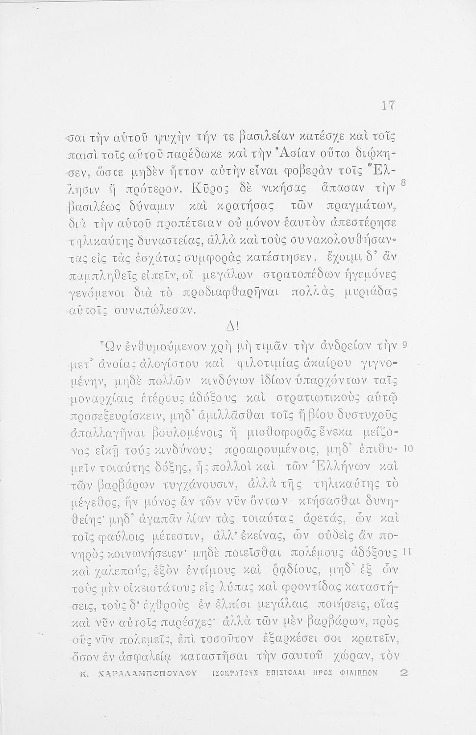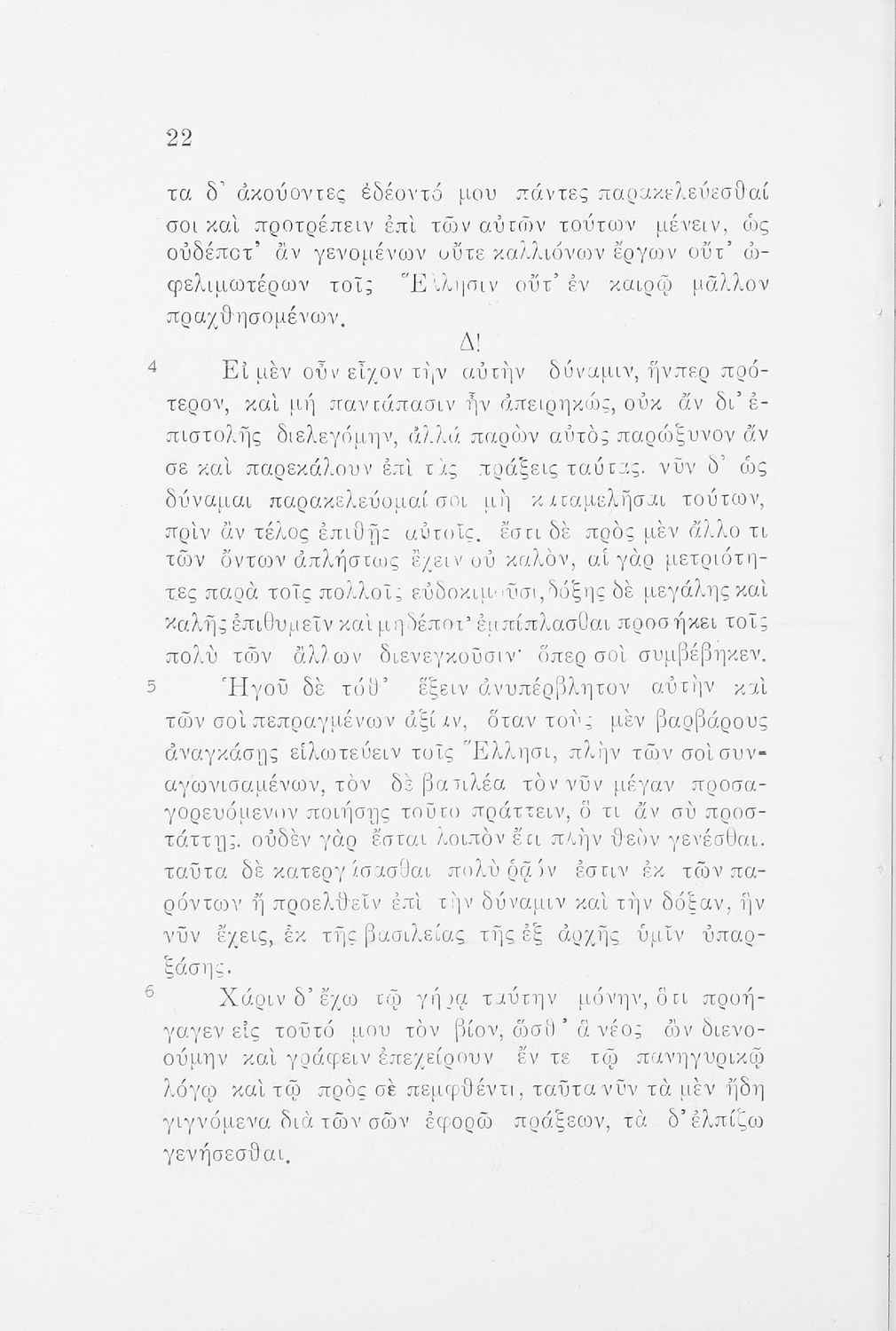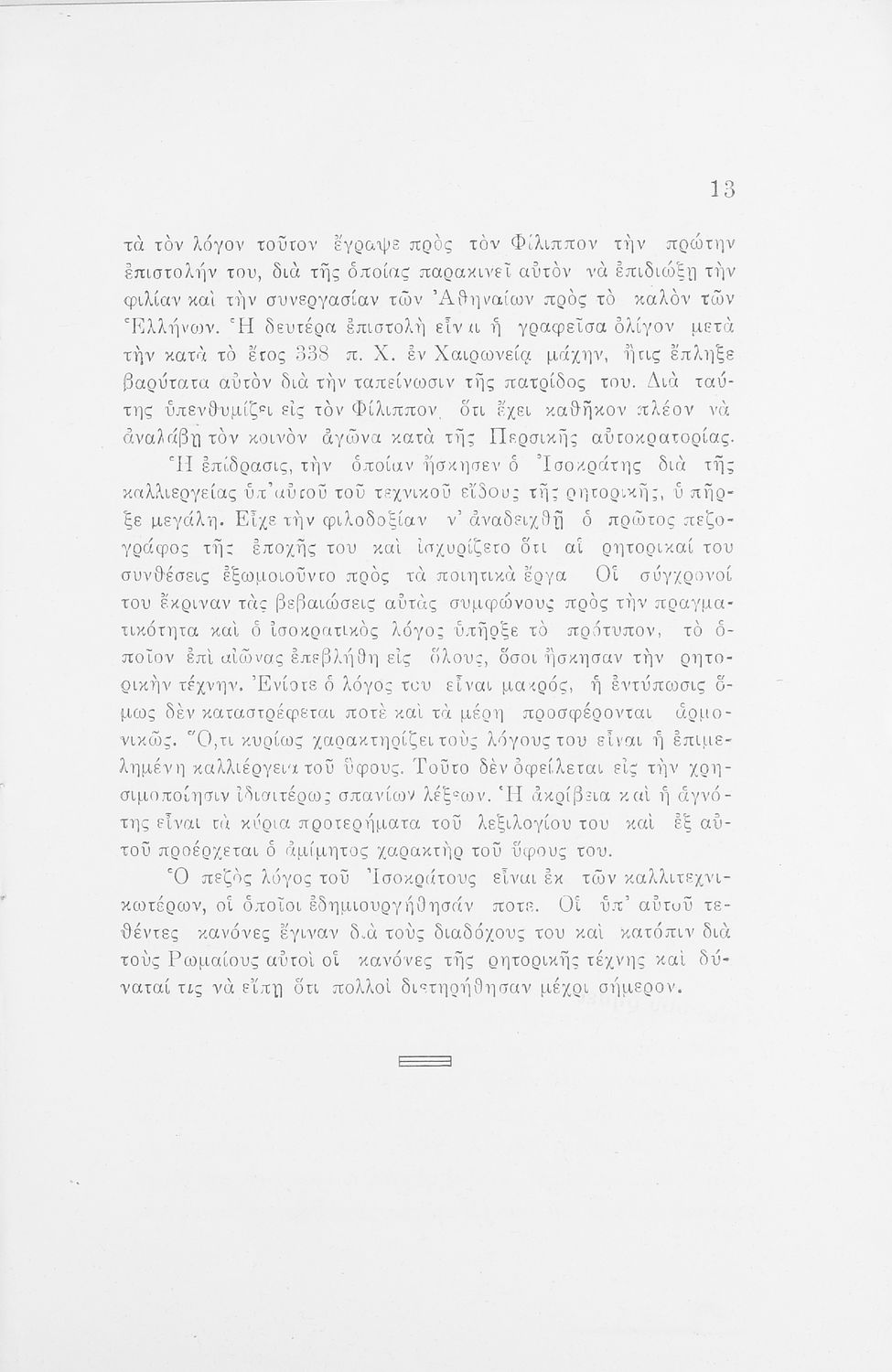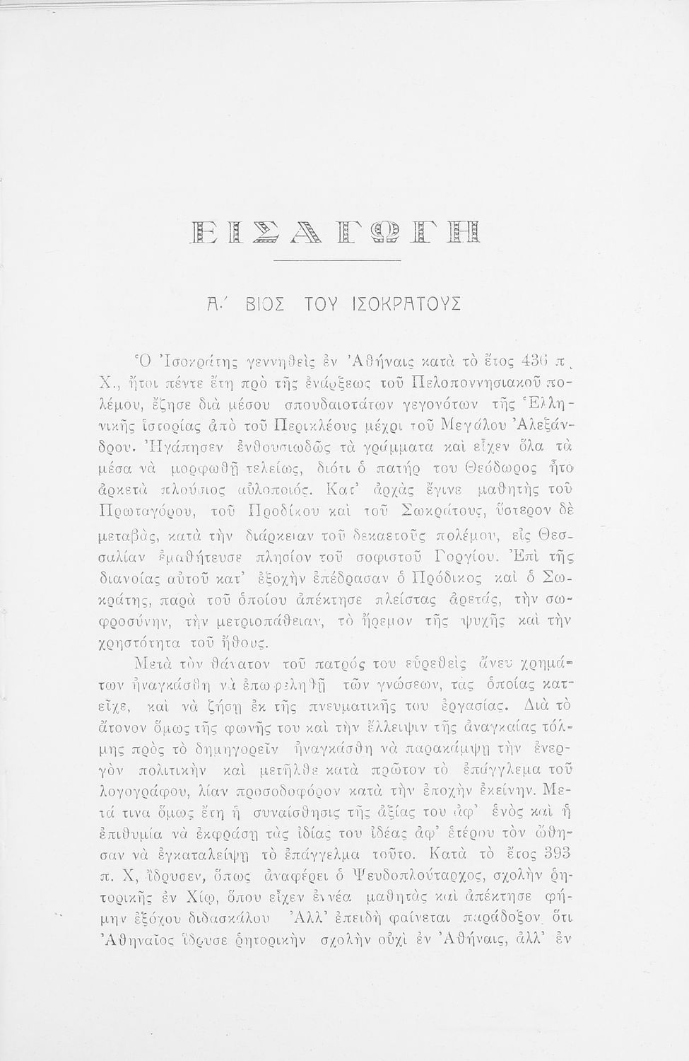 Μαθητικό βοήθημα Αρχαίων Ελληνικών Δ΄ Γυμνασίου που περιλαμβάνει εισαγωγή στη ζωή και το έργο του Ισοκράτη, τις επιστολές Α΄ και Β΄ προς Φίλιππο και ερμηνευτικές παρατηρήσεις.