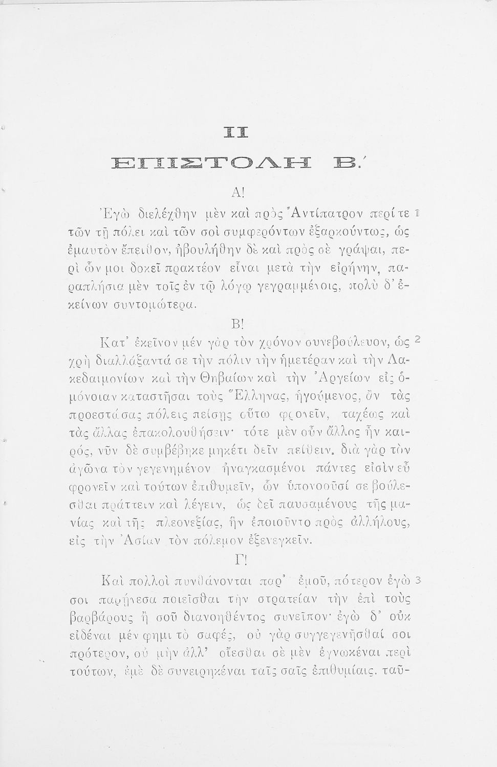 LDR 01205 2200205 4500 035 ## _a20-02192 040 ## _aΚΕΝΕΚ - Εταιρεία Σπουδών Νεοελληνικού Πολιτισμού και Παιδείας 041 ## _ael 100 ## _aΙσοκράτης _aΚωνστ. Ν. Χαραλαμπόπουλος (σχόλια) 110 ## _a2192 245 0# _aΙσοκράτους επιστολαί προς Φίλιππον διά τους μαθητάς της τετάρτης τάξεως των Γυμνασίων 250 ## _a1η Έκδοση 260 ## _aΠάτρα _bΘεοδ. Α. Κούκουρας _c1936 300 ## _a38 _c22 520 ## _aΜαθητικό βοήθημα Αρχαίων Ελληνικών Δ΄ Γυμνασίου που περιλαμβάνει εισαγωγή στη ζωή και το έργο του Ισοκράτη, τις επιστολές Α΄ και Β΄ προς Φίλιππο και ερμηνευτικές παρατηρήσεις. 521 ## _aΔ' Γυμνασίου 522 ## _aΕλλάδα 546 ## _aΚαθαρεύουσα 563 ## _aΜαλακό Εξώφυλλο 650 #4 _aΜακεδόνες _aΠέρσες _aΦιλοκράτεια ειρήνη