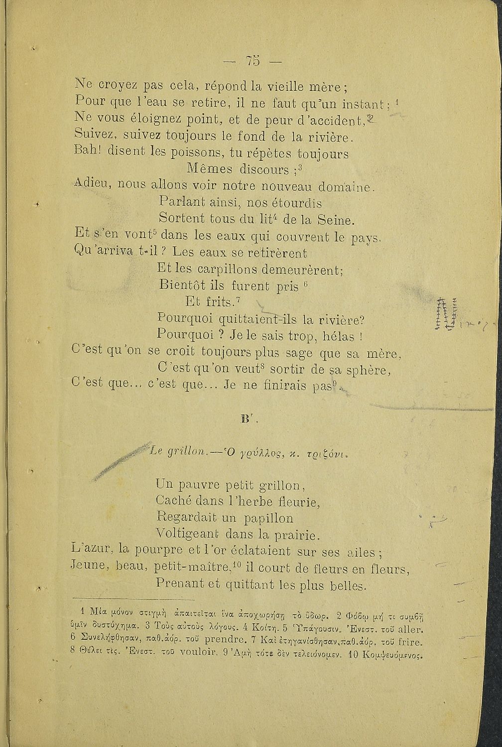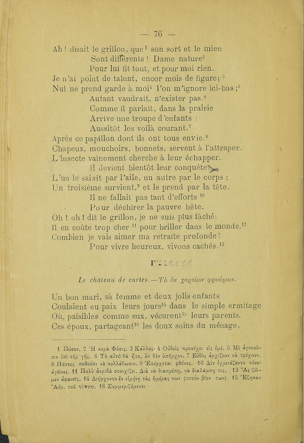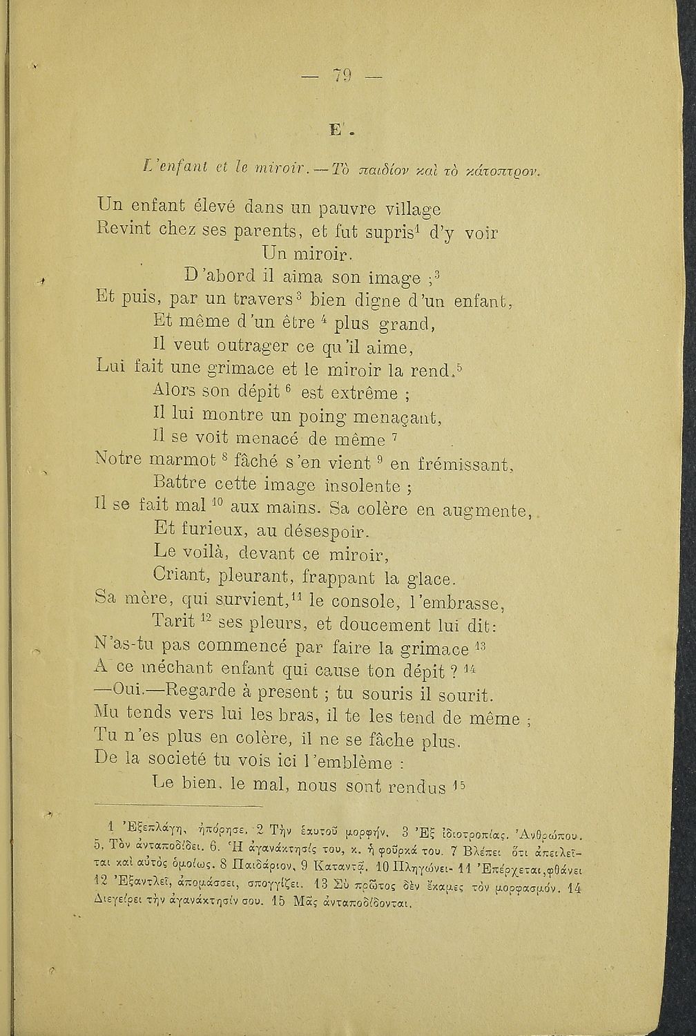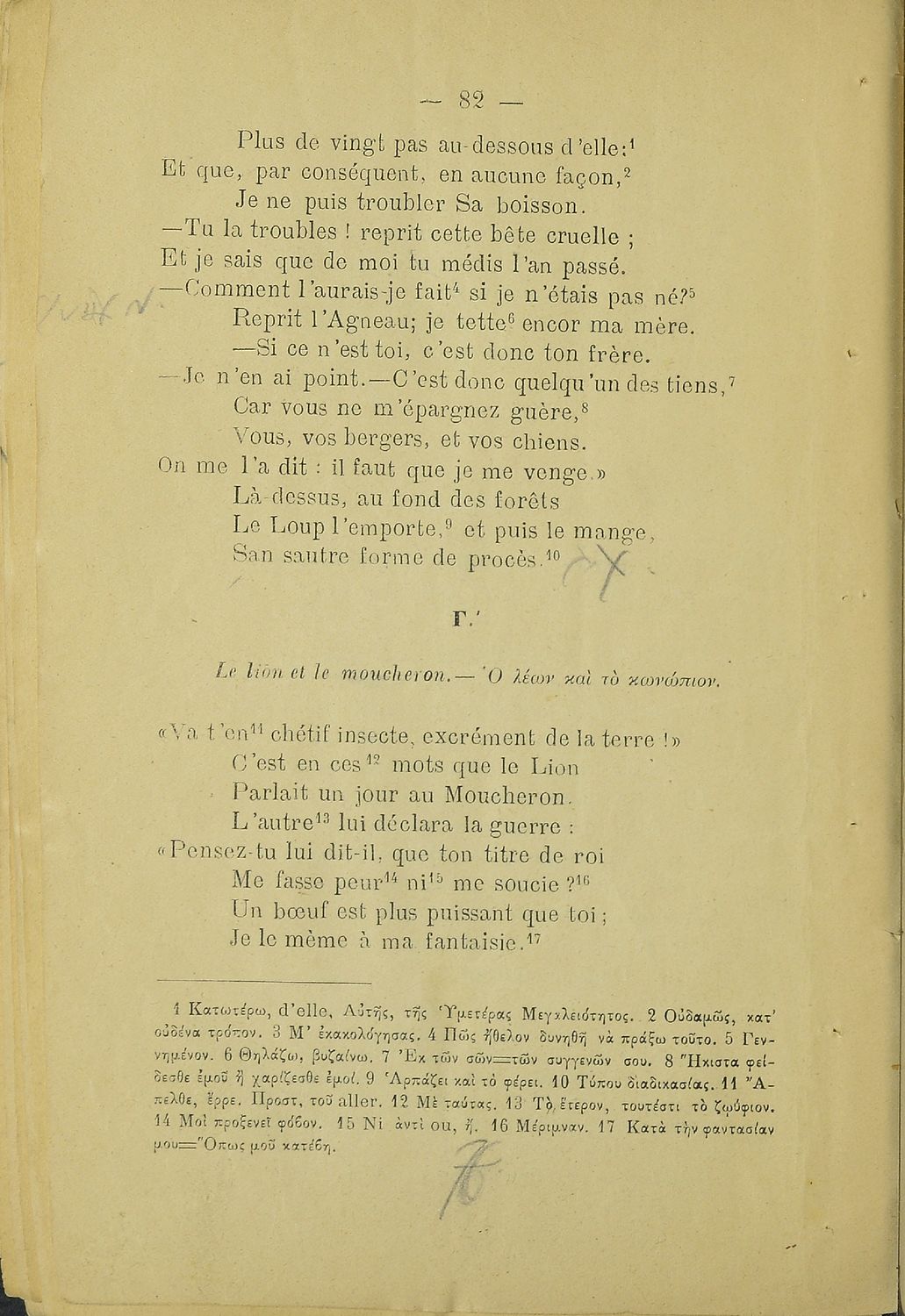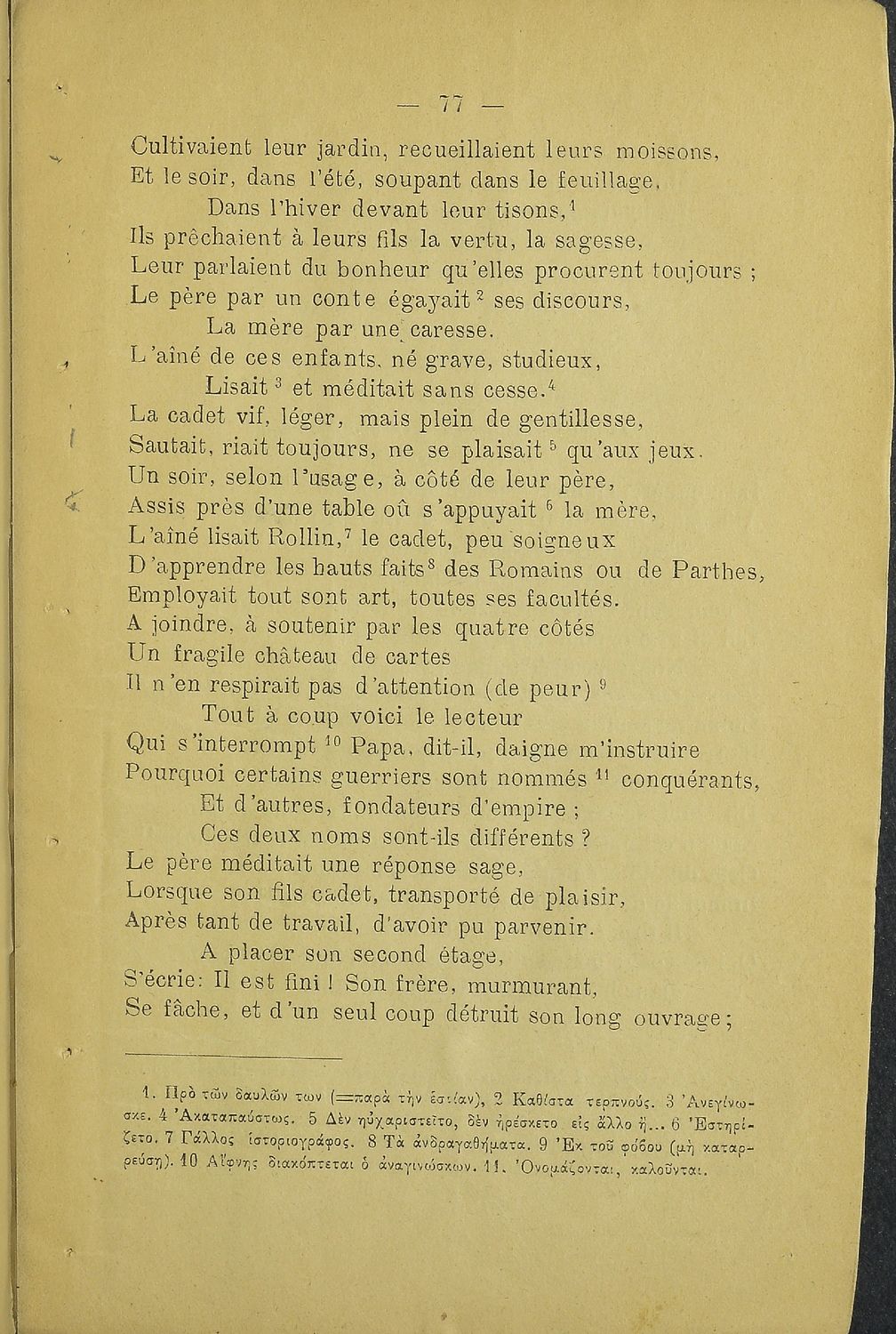 Σχολικό εγχειρίδιο Γαλλικών που περιλαμβάνει ποιήματα και πεζά, και ερμηνευτικά και λεξιλογικά σχόλια.