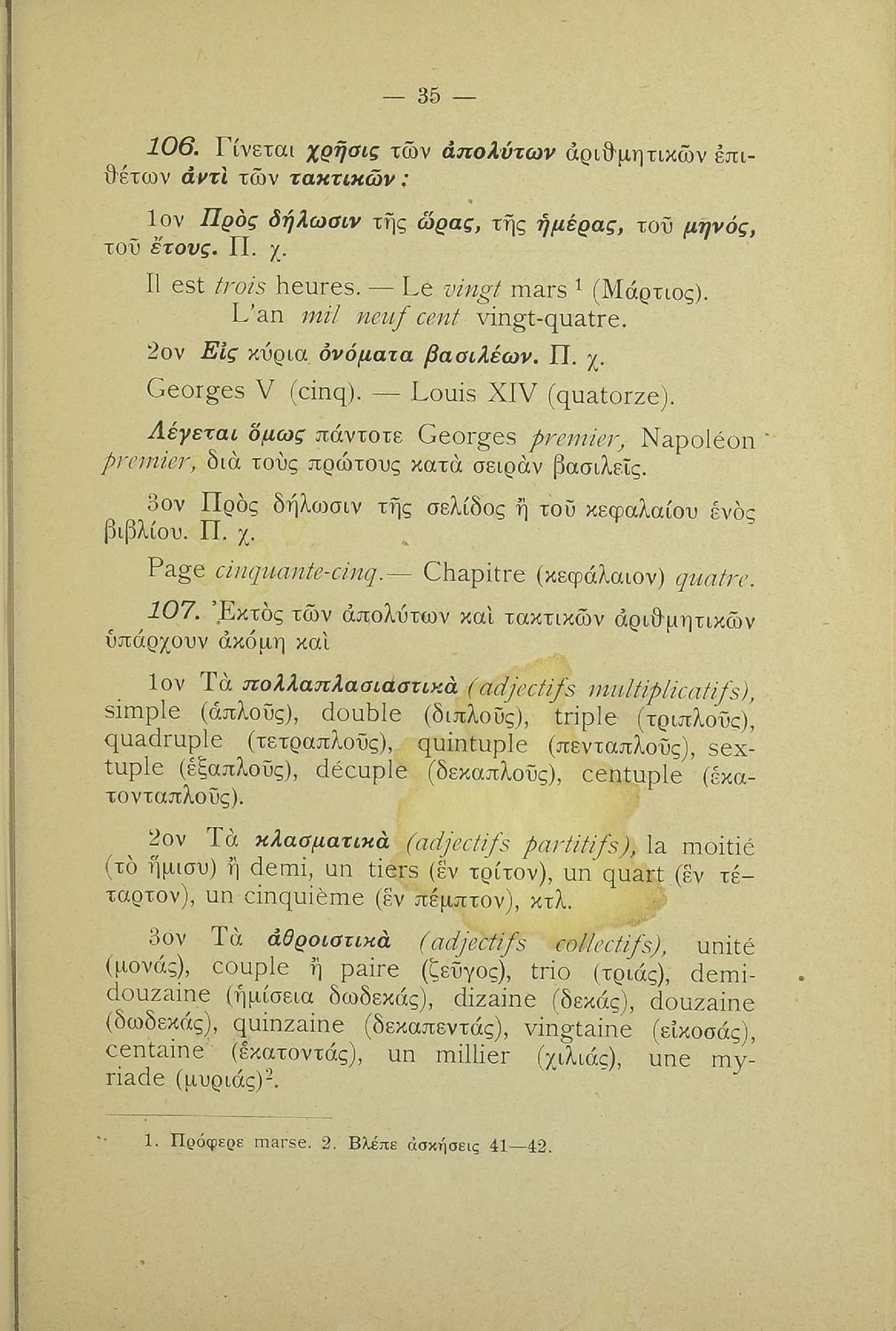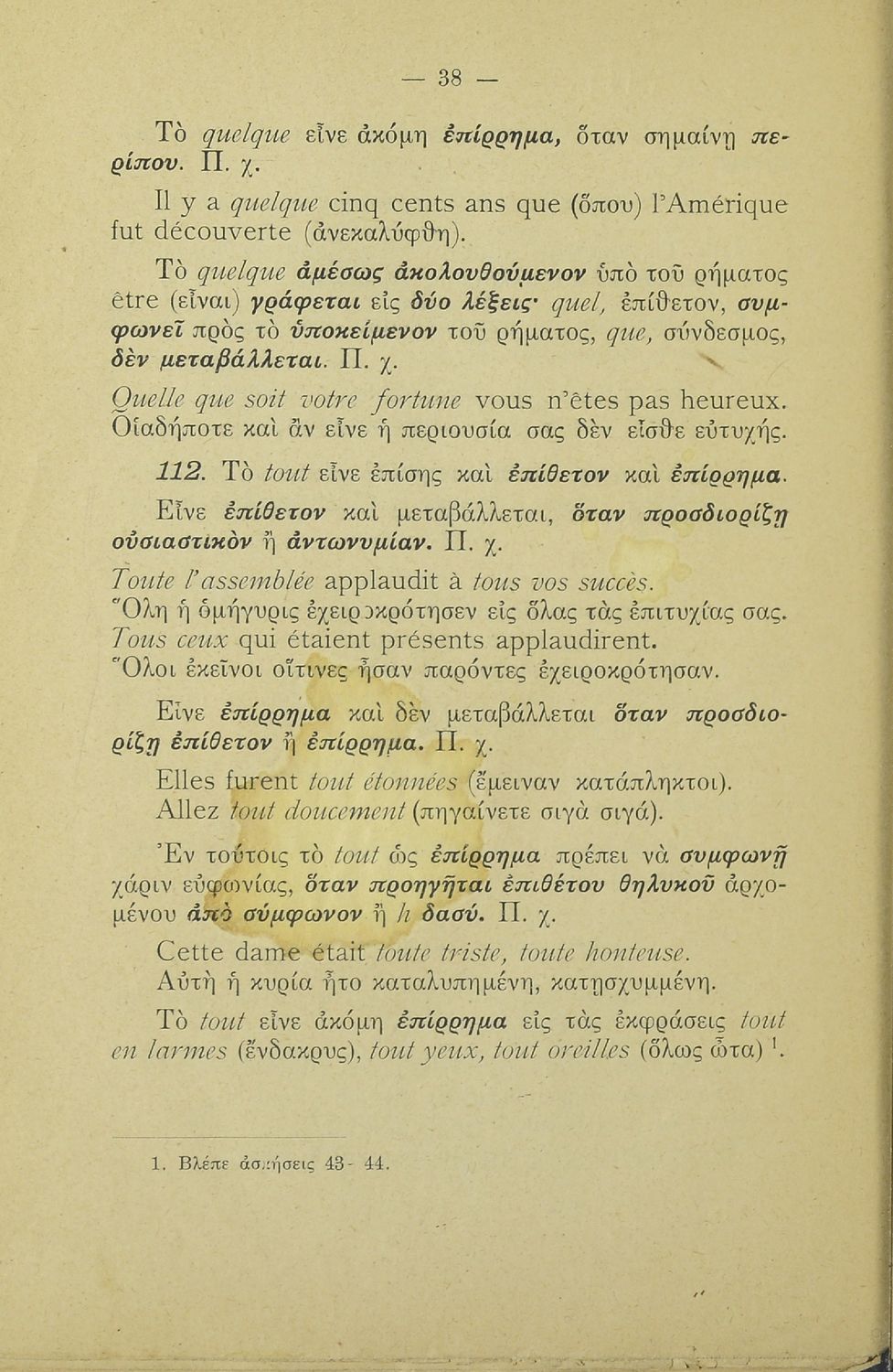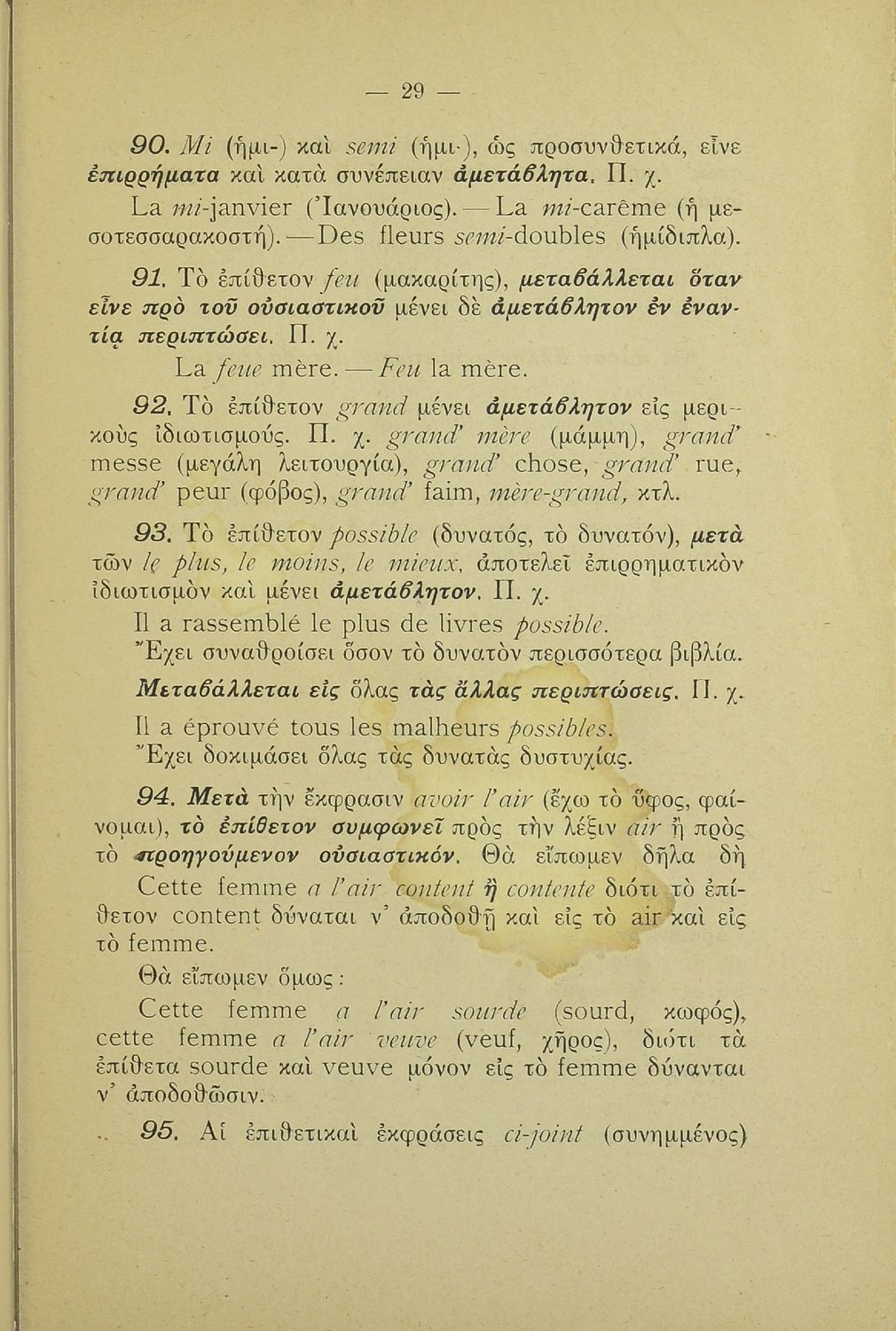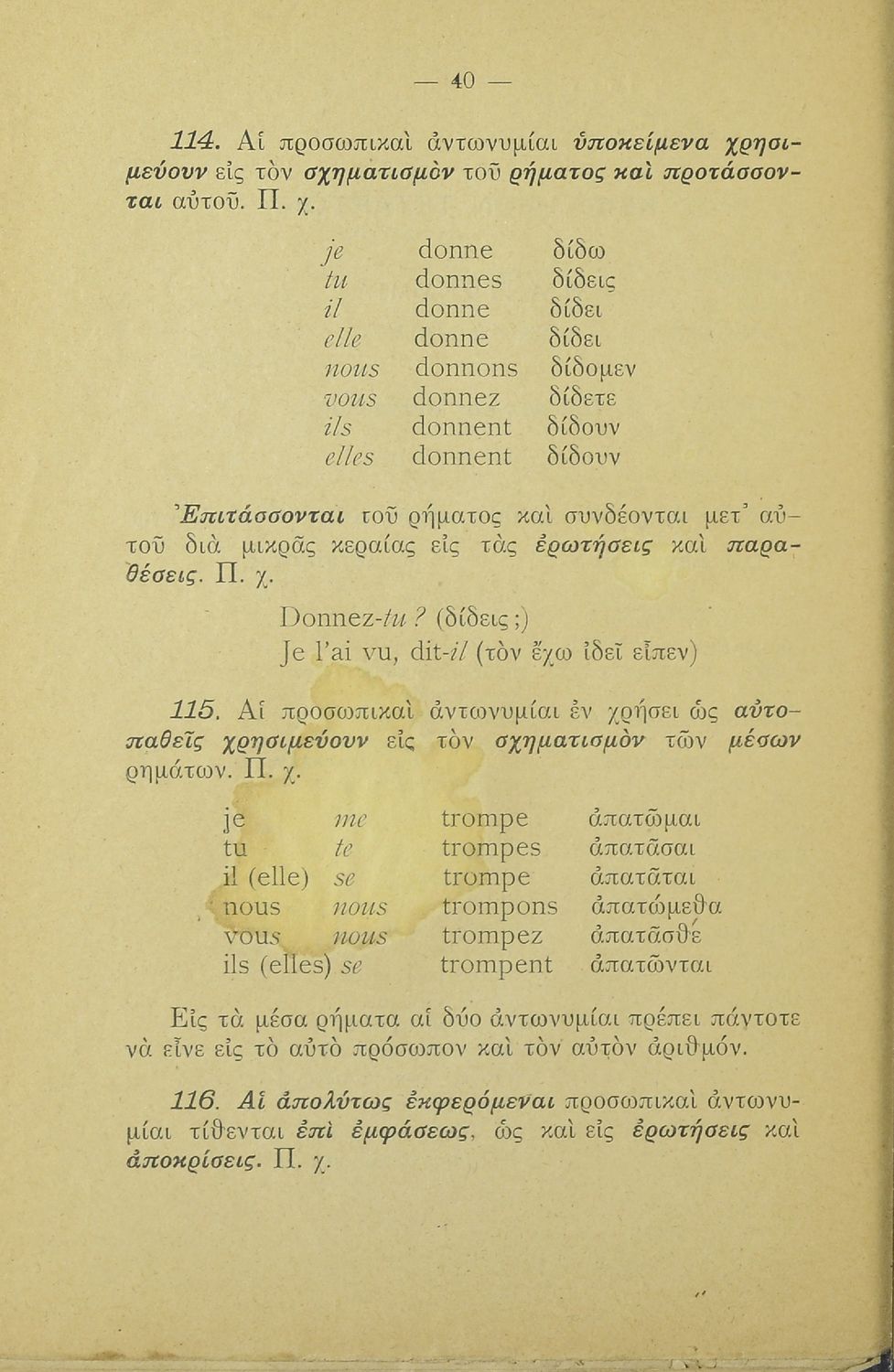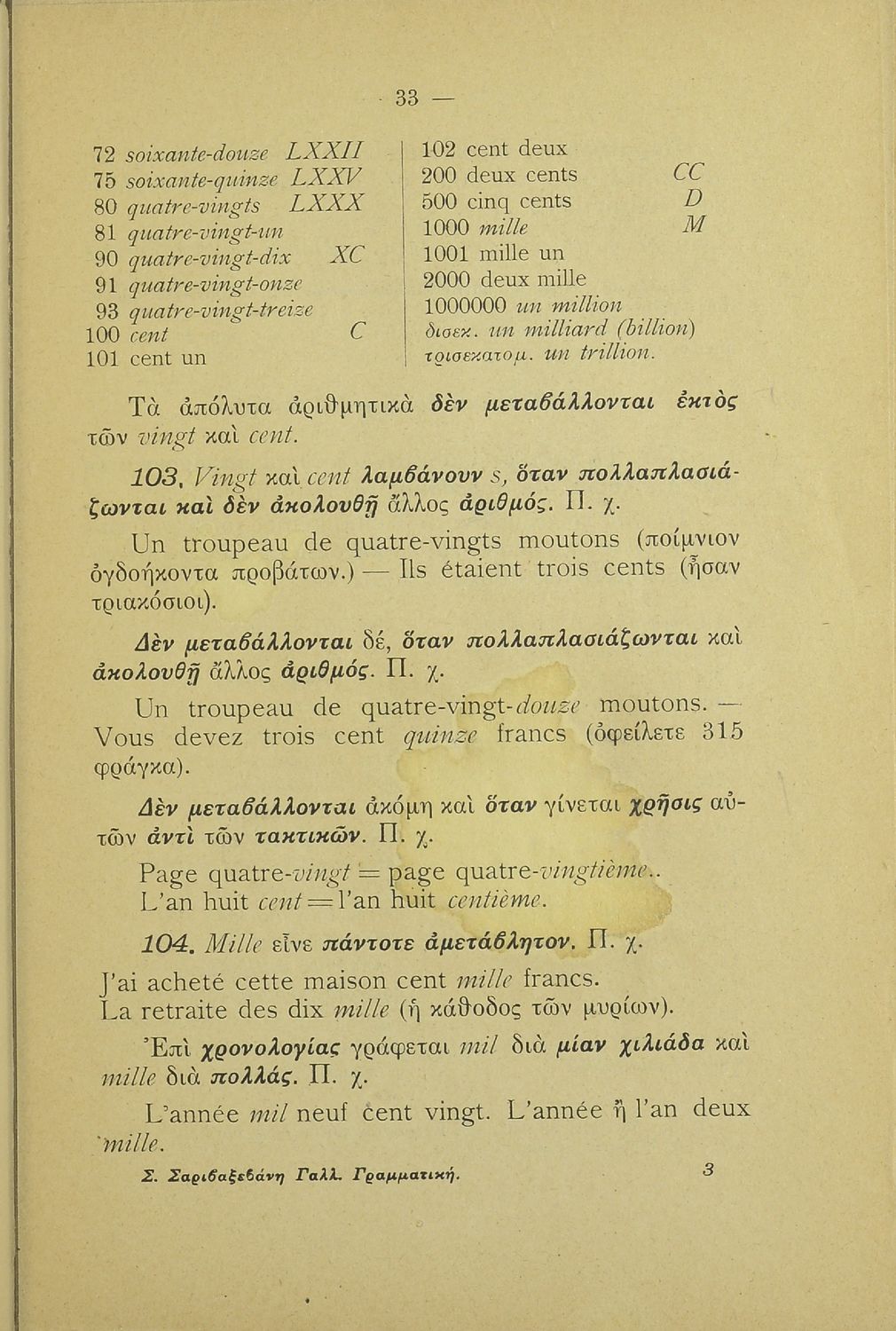 Γραμματική της Γαλλικής γλώσσας για τα Τετρατάξια Γυμνάσια, τη Γ΄ τάξη των Αστικών Σχολείων των Θηλέων και τα Διδασκαλεία της Δημοτικής Εκπαίδευσης που περιλαμβάνει θεωρία, ασκήσεις και λεξιλόγιο.
