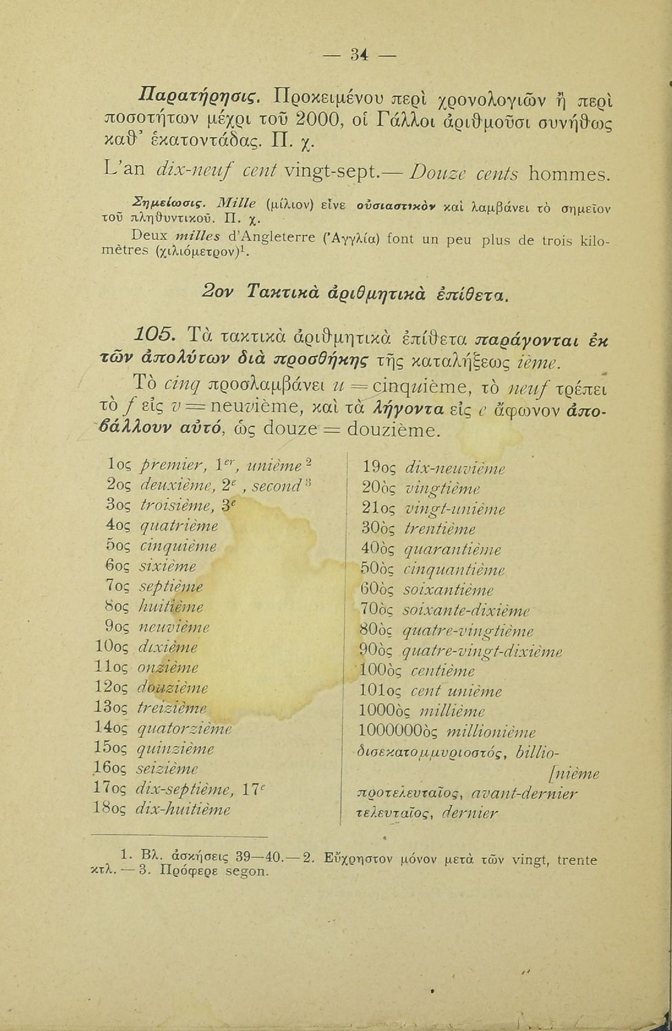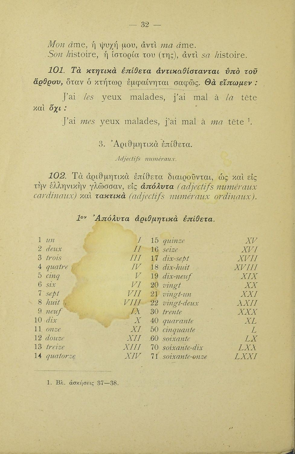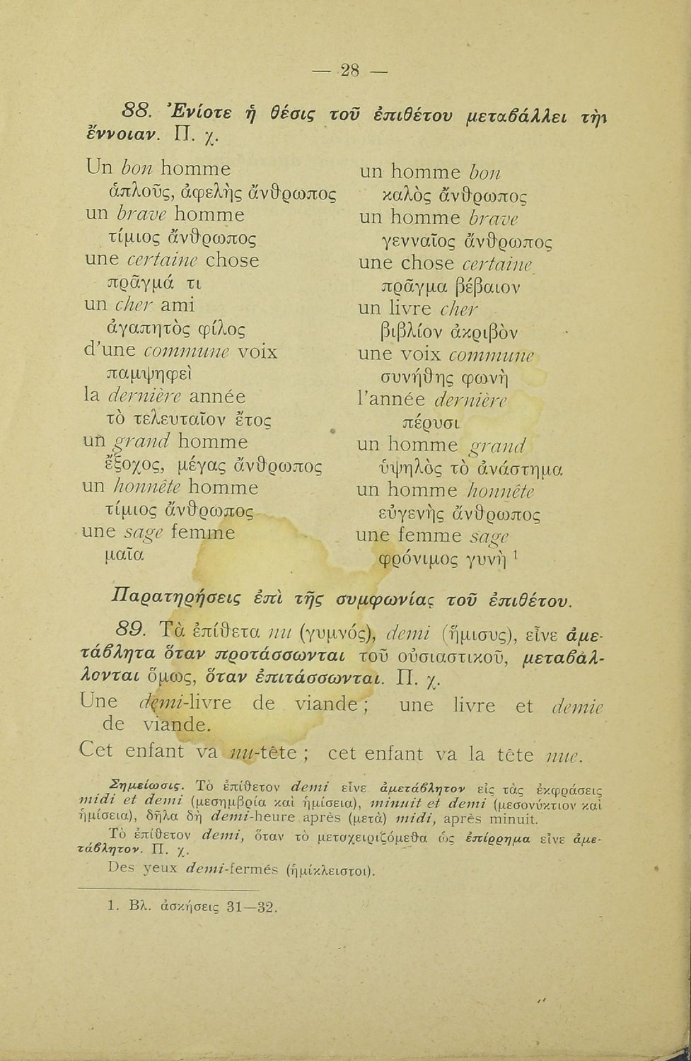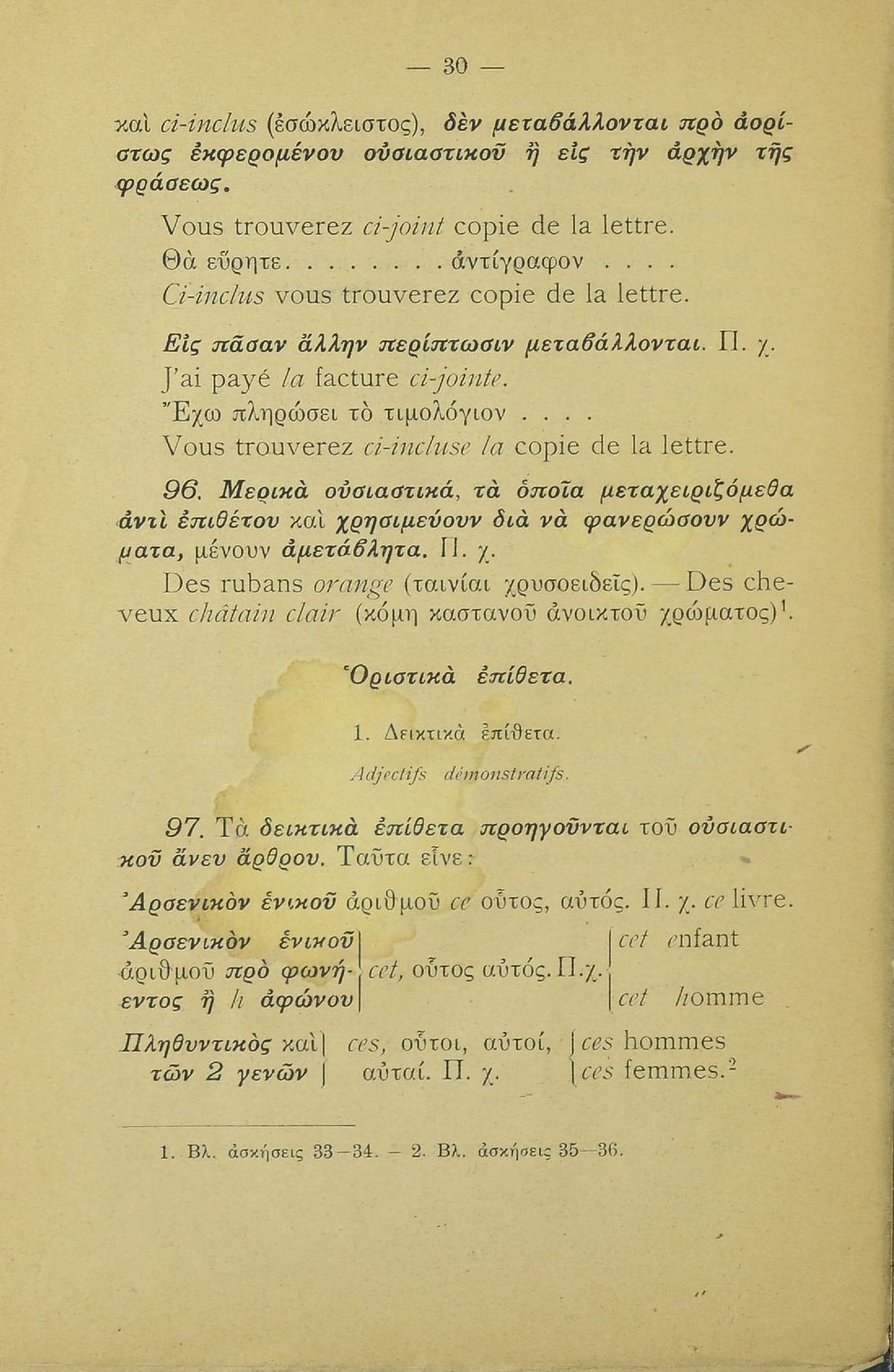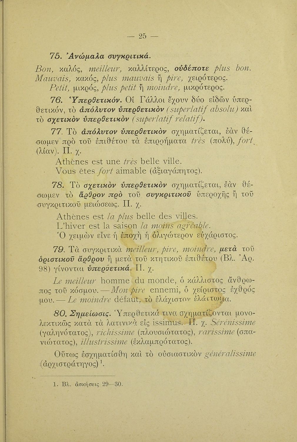 Γραμματική της Γαλλικής γλώσσας για τα Τετρατάξια Γυμνάσια, τη Γ΄ τάξη των Αστικών Σχολείων των Θηλέων και τα Διδασκαλεία της Δημοτικής Εκπαίδευσης που περιλαμβάνει θεωρία, ασκήσεις και λεξιλόγιο.