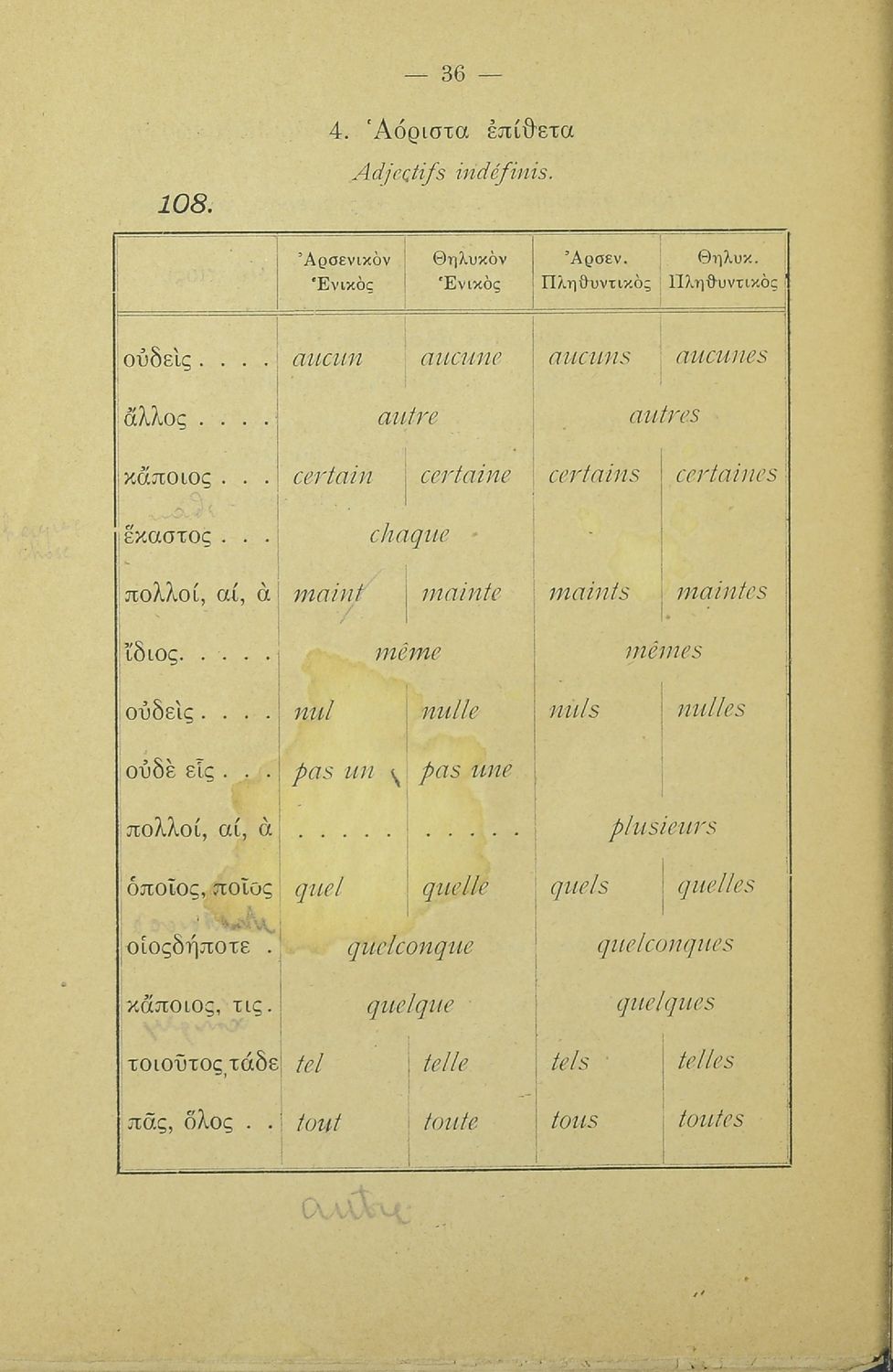 Τίτλος: Γραμματική της γαλλικής γλώσσης διά τας τέσσερας τάξεις των τετραταξίων Γυμνασίων, τας αντιστοίχους τάξεις των λοιπών σχολείων της Μ. Εκπαιδεύσεως, την Γ΄ τάξιν των Αστικών Σχολείων των θηλέων και διά τα Διδασκαλία της Δημοτικής Εκπαιδεύσεως