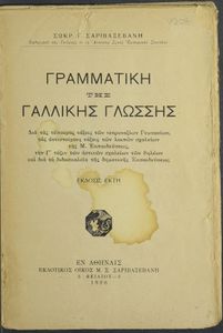 Γραμματική της γαλλικής γλώσσης διά τας τέσσερας τάξεις των τετραταξίων Γυμνασίων, τας αντιστοίχους τάξεις των λοιπών σχολείων της Μ. Εκπαιδεύσεως, την Γ΄ τάξιν των Αστικών Σχολείων των θηλέων και διά τα Διδασκαλία της Δημοτικής Εκπαιδεύσεως