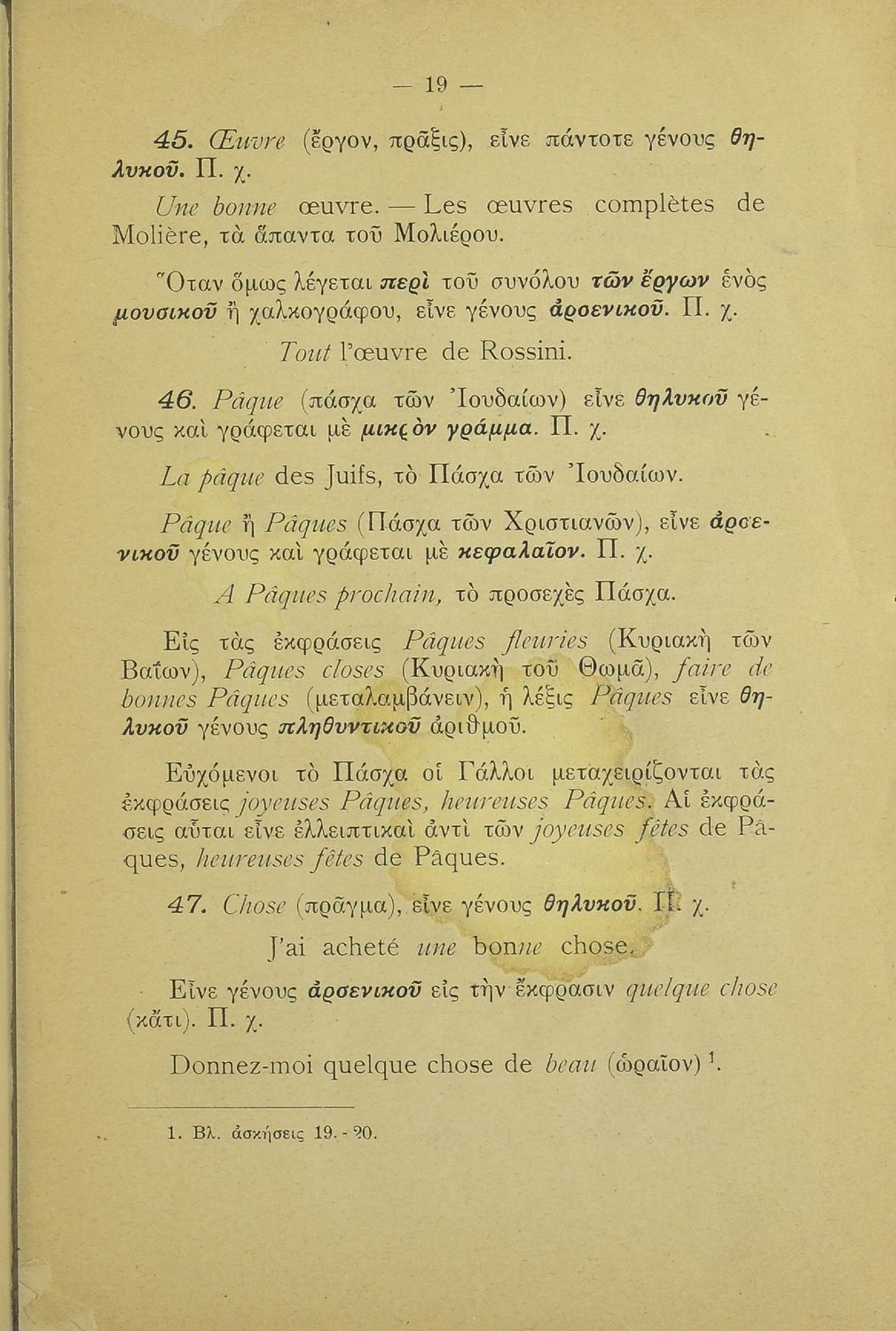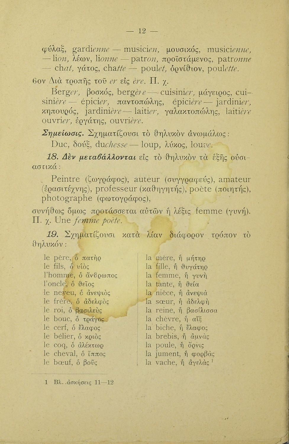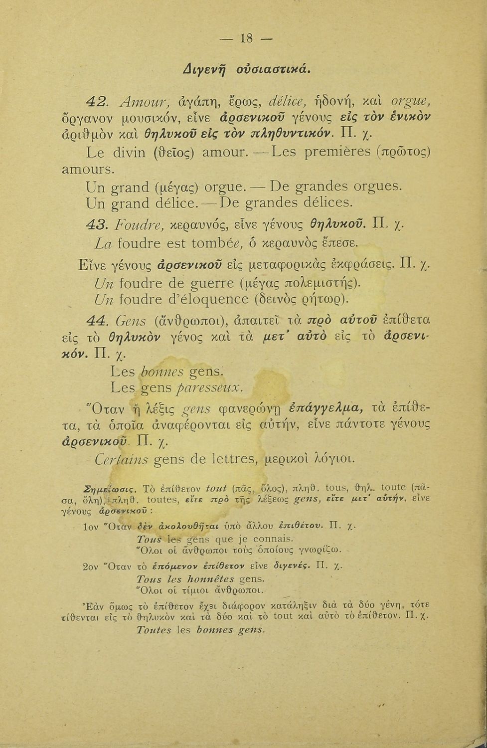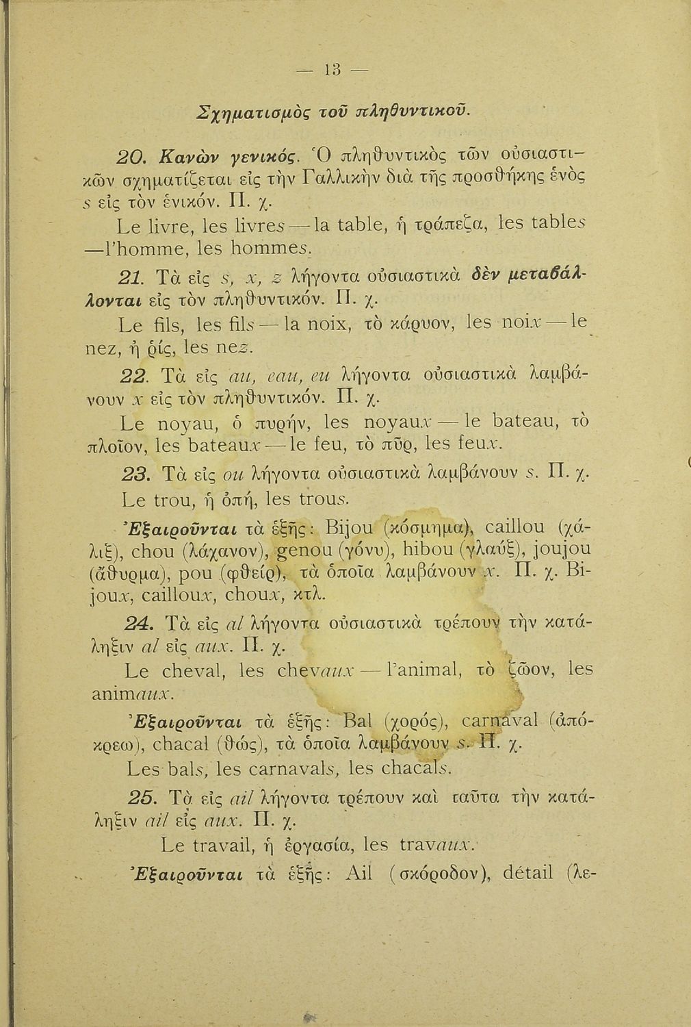 Γραμματική της Γαλλικής γλώσσας για τα Τετρατάξια Γυμνάσια, τη Γ΄ τάξη των Αστικών Σχολείων των Θηλέων και τα Διδασκαλεία της Δημοτικής Εκπαίδευσης που περιλαμβάνει θεωρία, ασκήσεις και λεξιλόγιο.