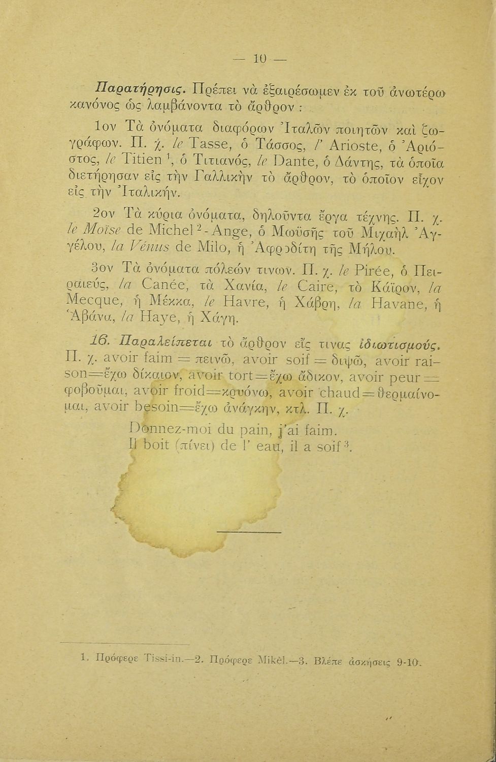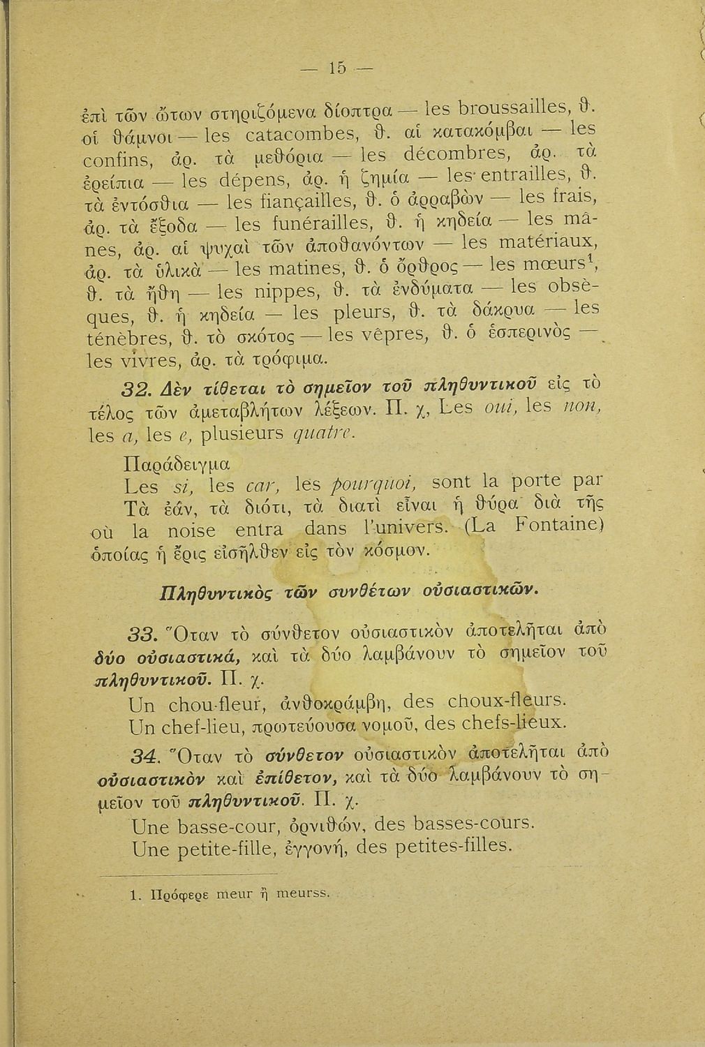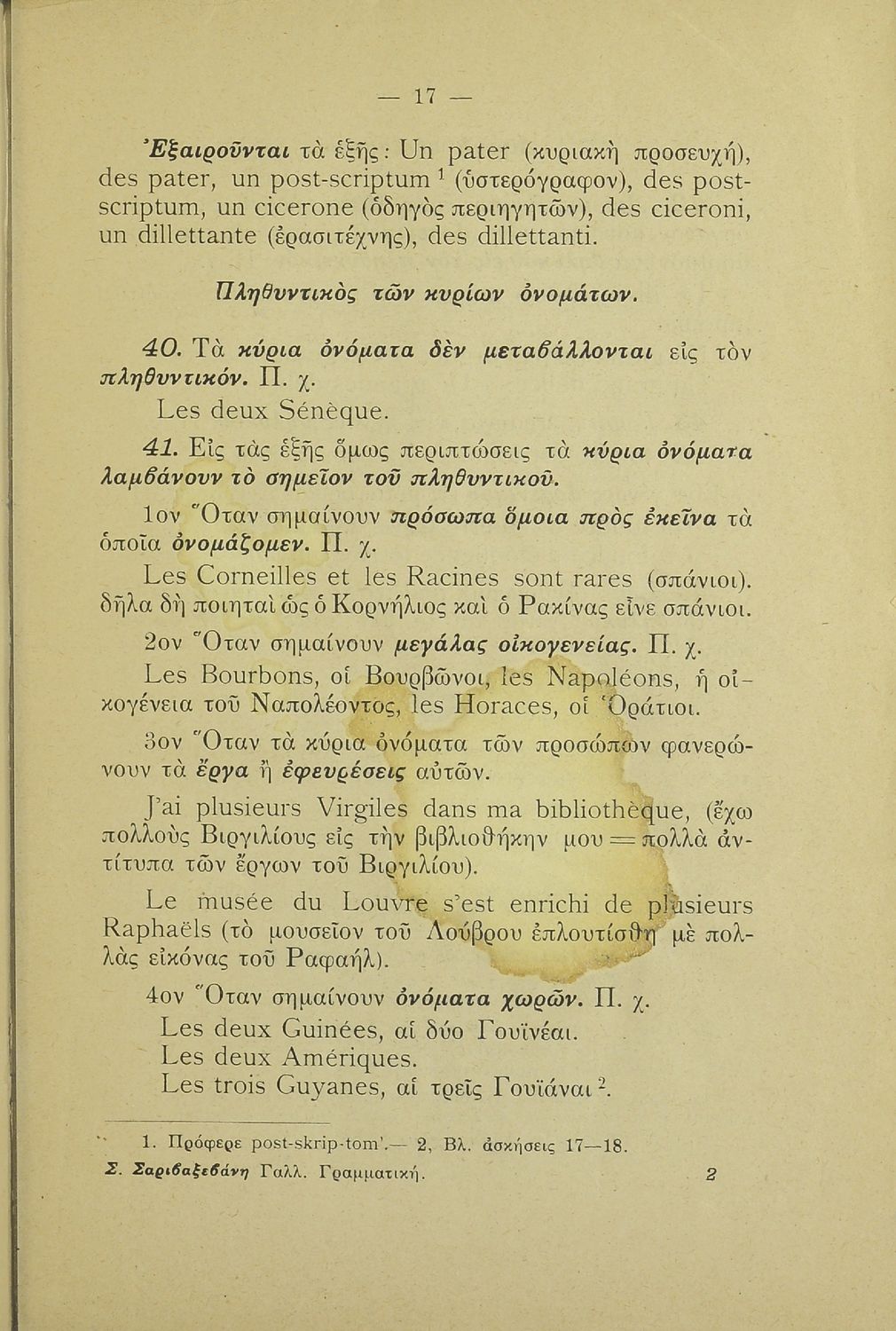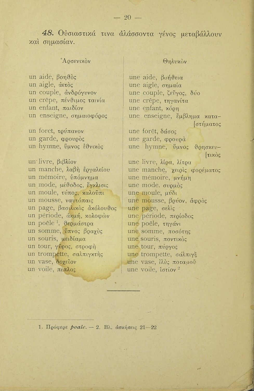 Γραμματική της Γαλλικής γλώσσας για τα Τετρατάξια Γυμνάσια, τη Γ΄ τάξη των Αστικών Σχολείων των Θηλέων και τα Διδασκαλεία της Δημοτικής Εκπαίδευσης που περιλαμβάνει θεωρία, ασκήσεις και λεξιλόγιο.