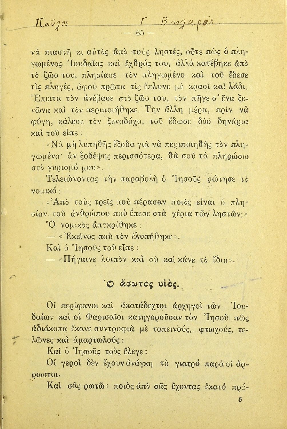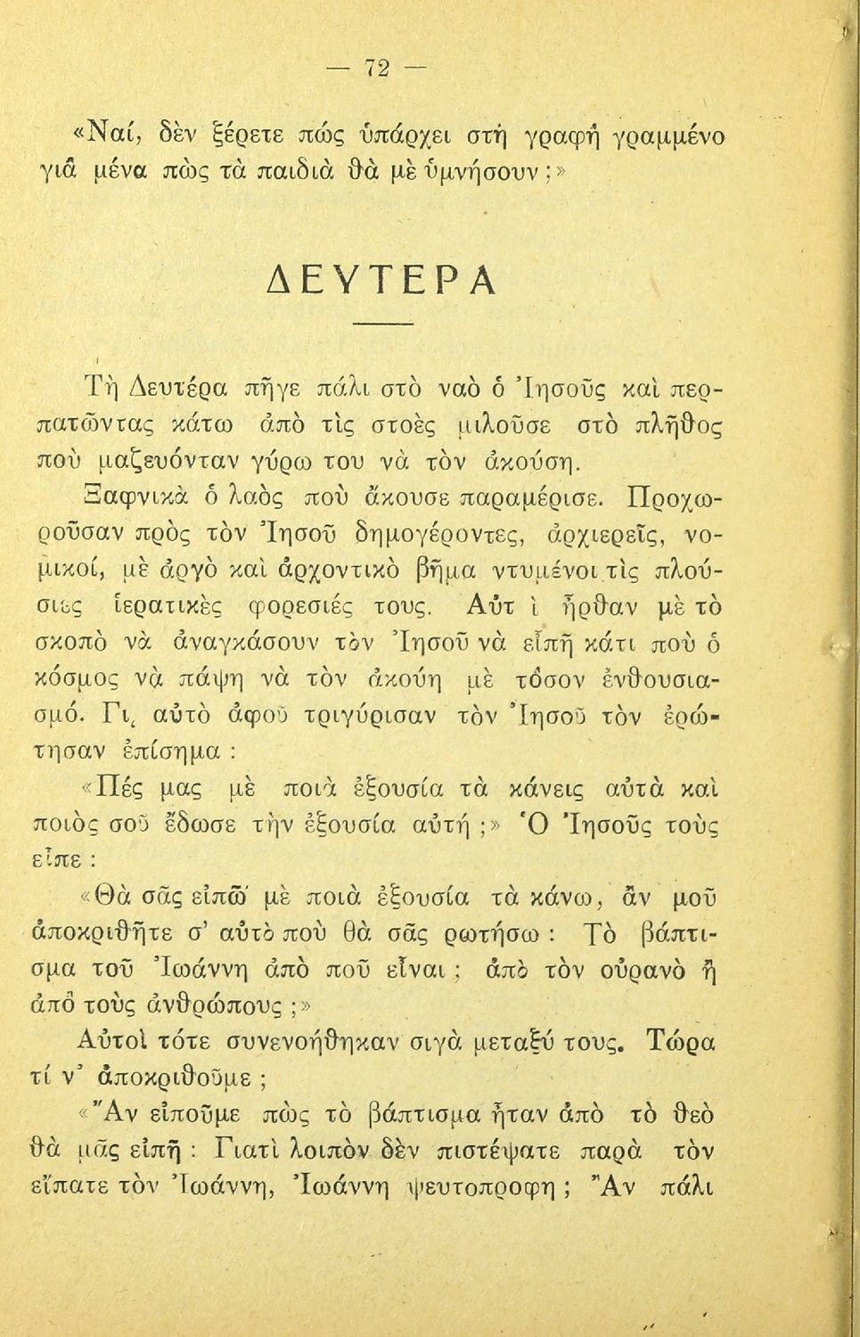Σχολικό εγχειρίδιο Θρησκευτικών για τα Ελληνικά Σχολεία και τα Παρθεναγωγεία που περιλαμβάνει την ιστορία της Καινής Διαθήκης από τον Ευαγγελισμό της Θεοτόκου μέχρι την ανάληψη του Ιησού Χριστού