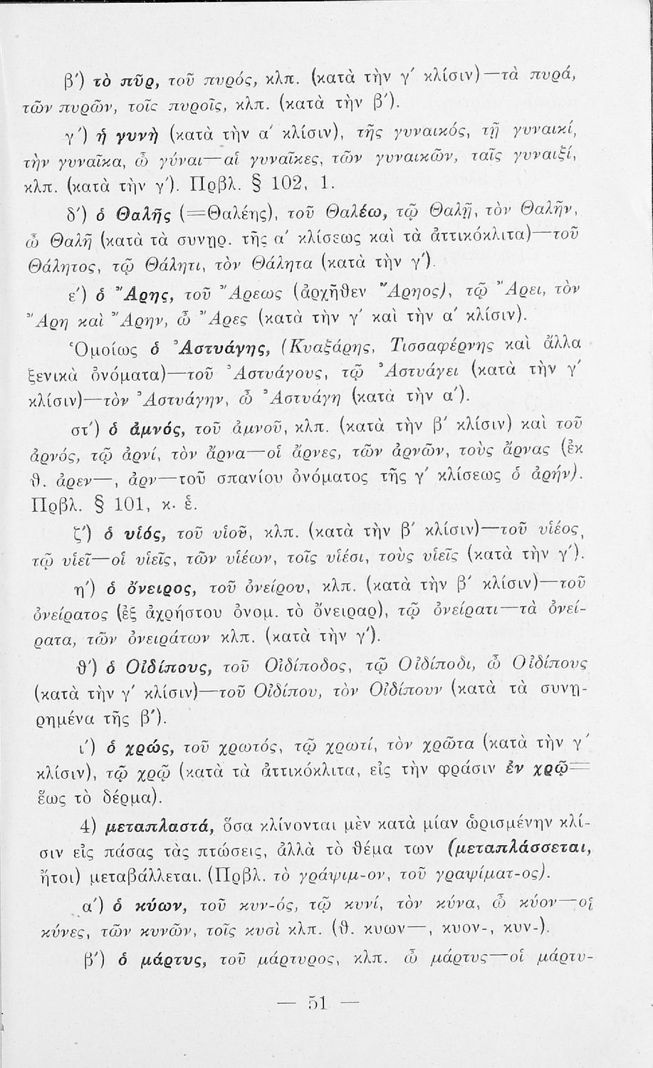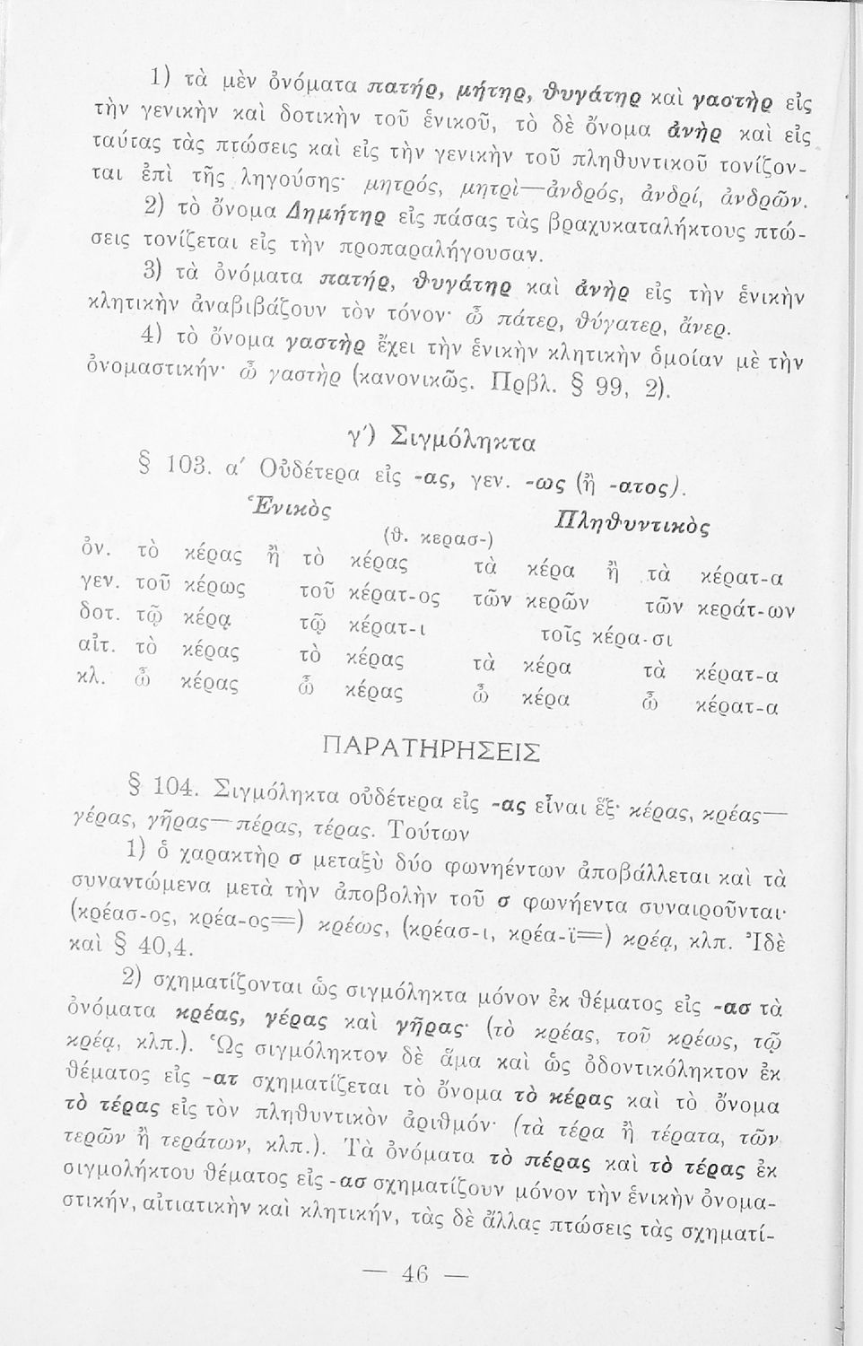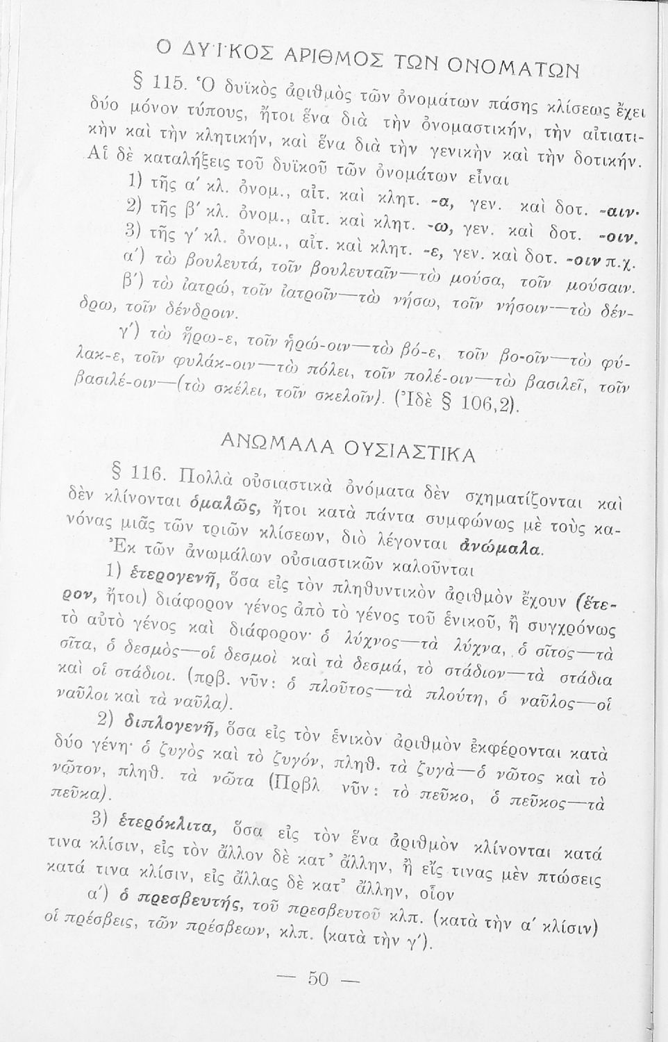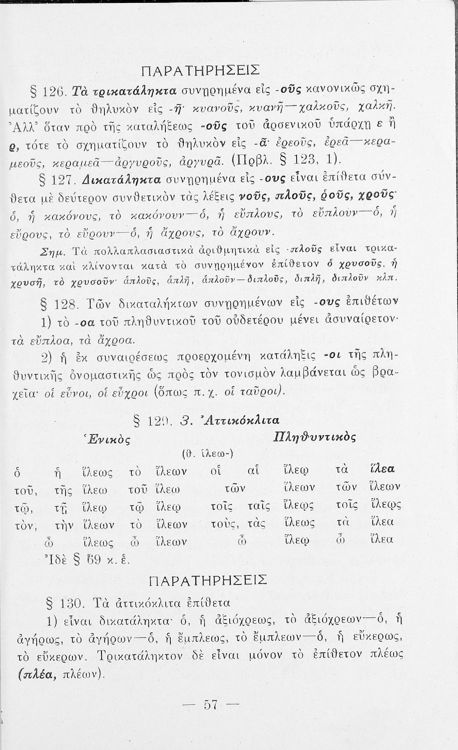 Σχολικό εγχειρίδιο Αρχαίων Ελληνικών Γυμνασίου που περιέχει τους κανόνες γραμματικής και είναι χωρισμένο σε φθογγολογικό, τυπολογικό και ετυμολογικό μέρος. Περιέχει και κατάλογο ανωμάλων ρημάτων.
