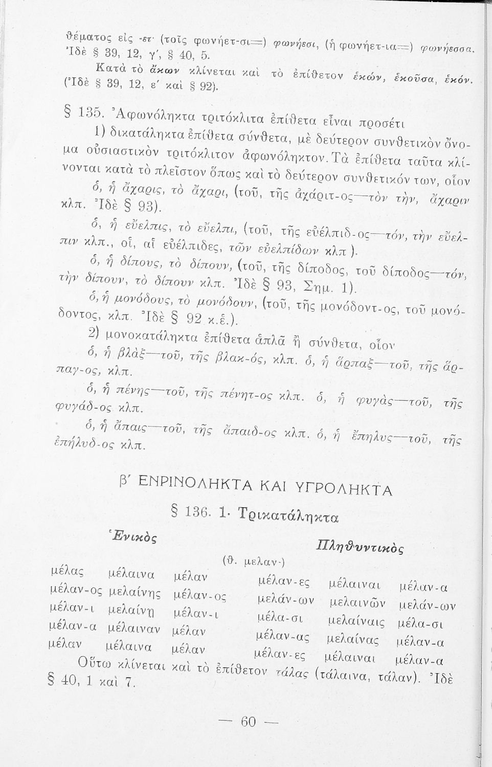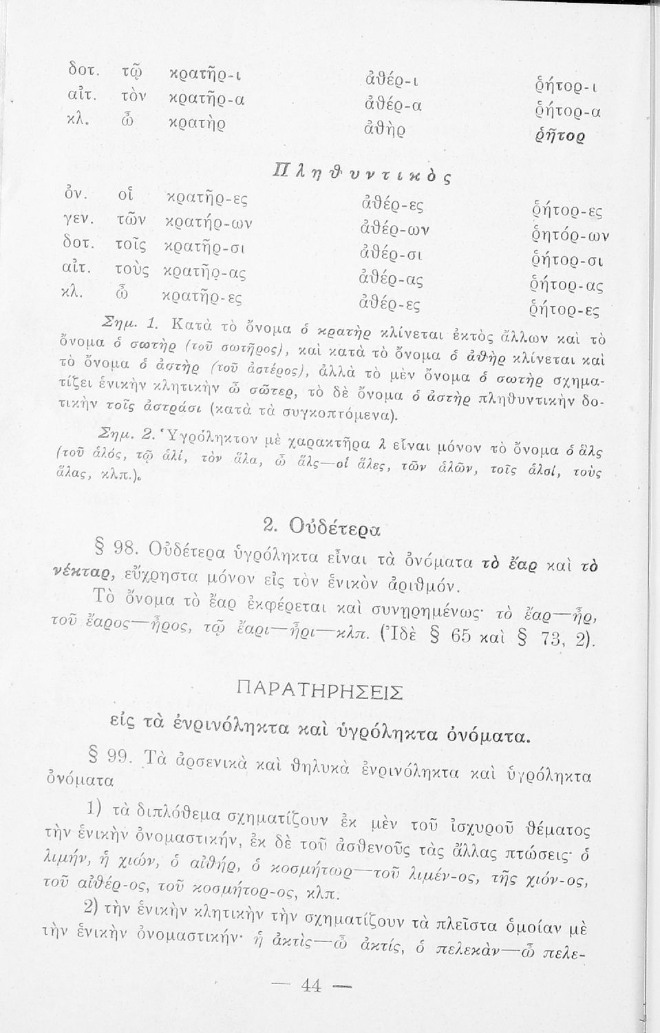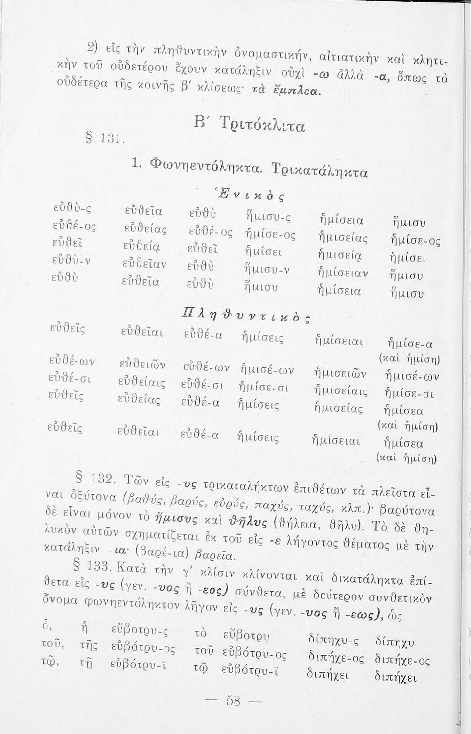 Σχολικό εγχειρίδιο Αρχαίων Ελληνικών που περιέχει τους κανόνες γραμματικής και είναι χωρισμένο σε φθογγολογικό, τυπολογικό και ετυμολογικό μέρος. Περιέχει και κατάλογο ανωμάλων ρημάτων.