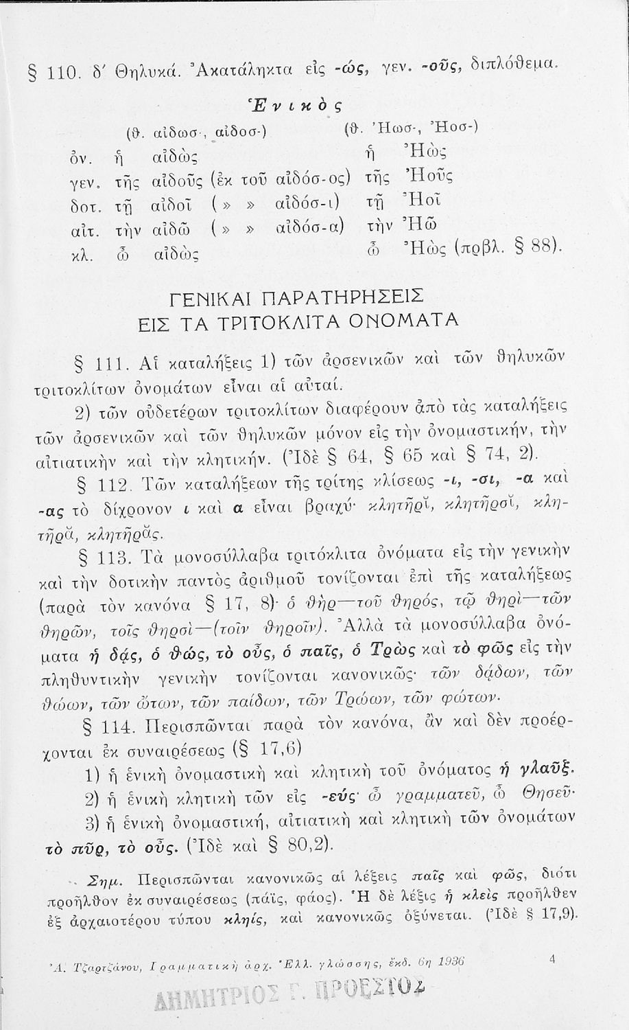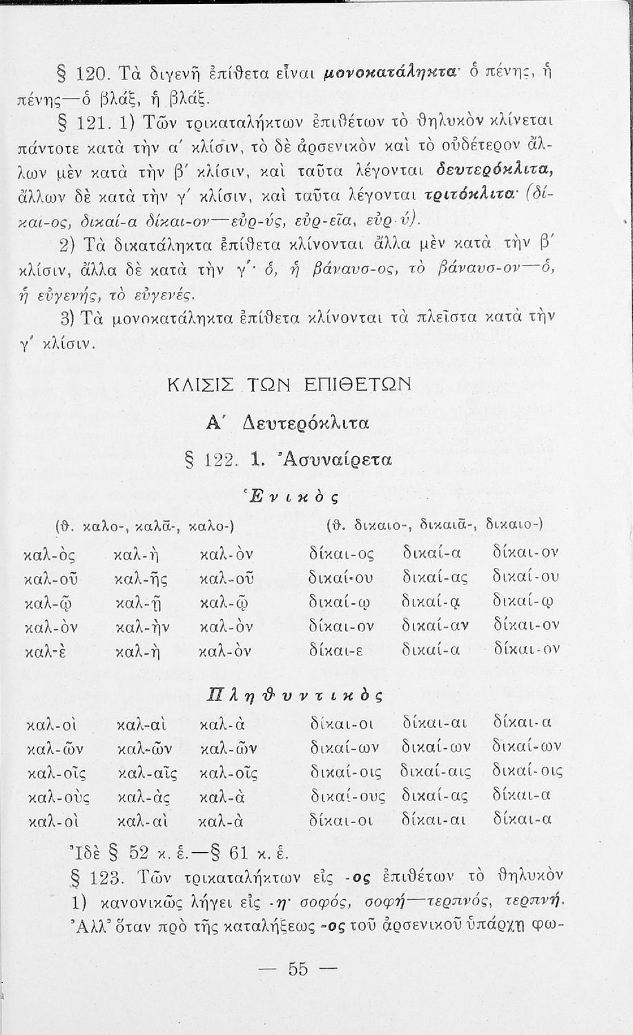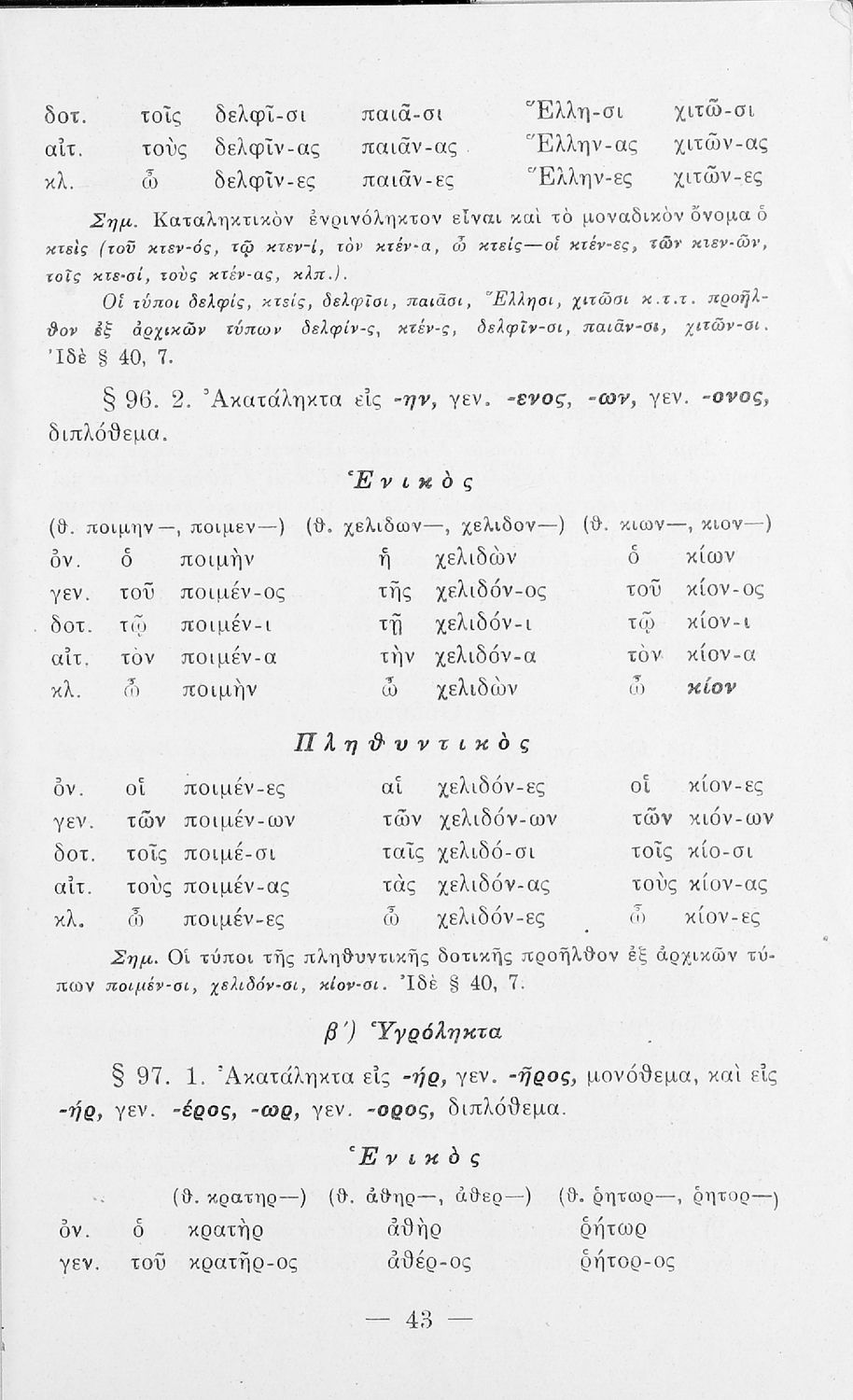 Σχολικό εγχειρίδιο Αρχαίων Ελληνικών που περιέχει τους κανόνες γραμματικής και είναι χωρισμένο σε φθογγολογικό, τυπολογικό και ετυμολογικό μέρος. Περιέχει και κατάλογο ανωμάλων ρημάτων.