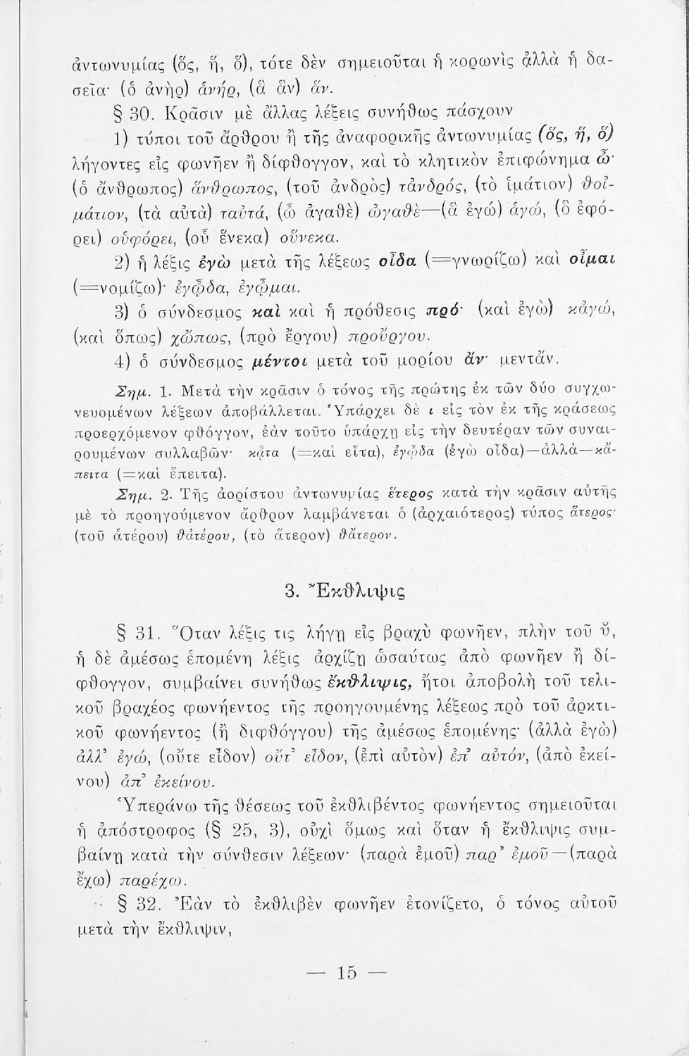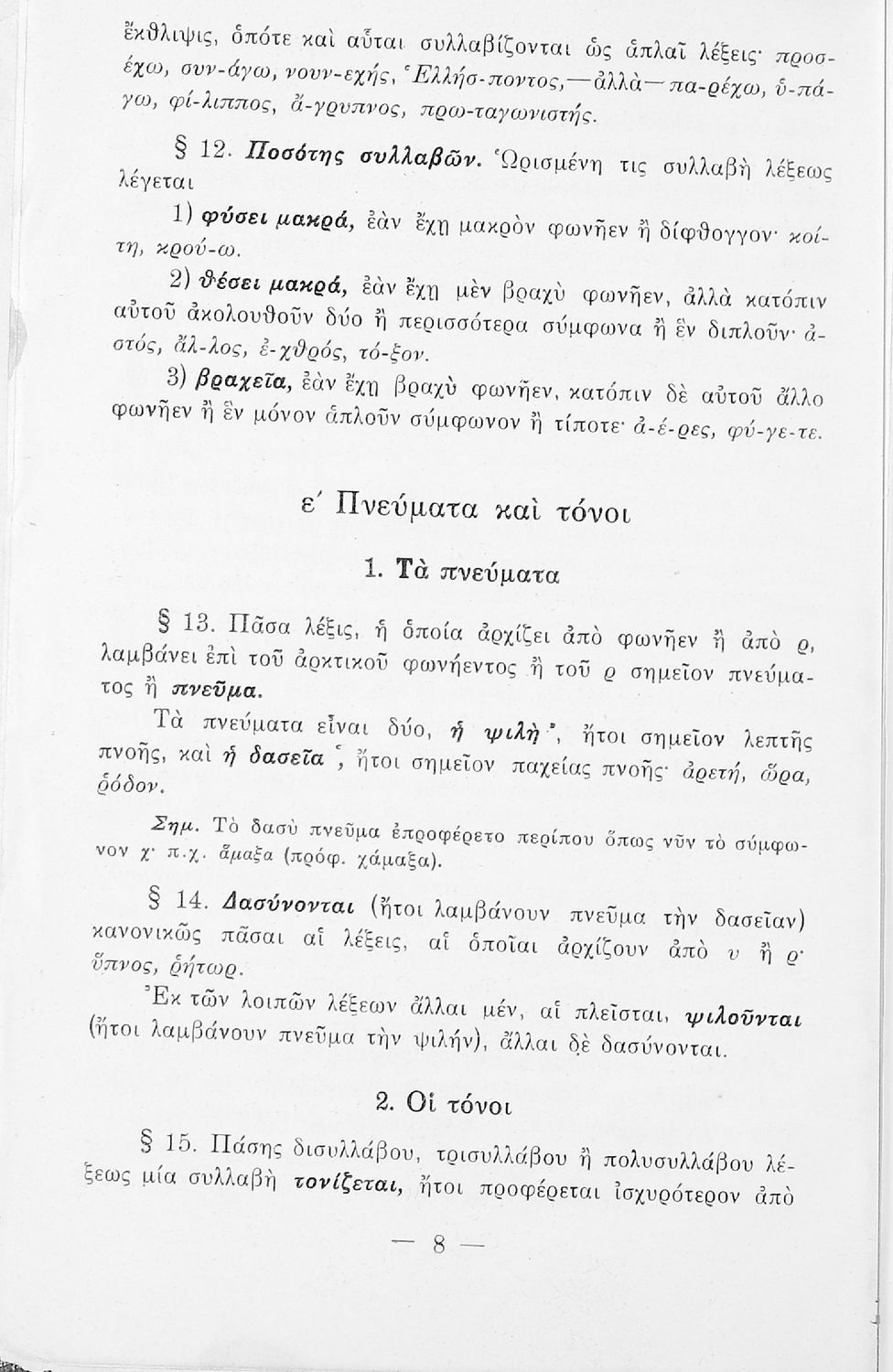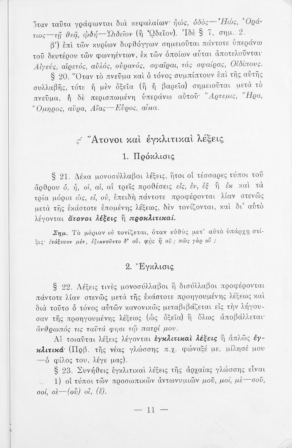 Σχολικό εγχειρίδιο Αρχαίων Ελληνικών Γυμνασίου που περιέχει τους κανόνες γραμματικής και είναι χωρισμένο σε φθογγολογικό, τυπολογικό και ετυμολογικό μέρος. Περιέχει και κατάλογο ανωμάλων ρημάτων.