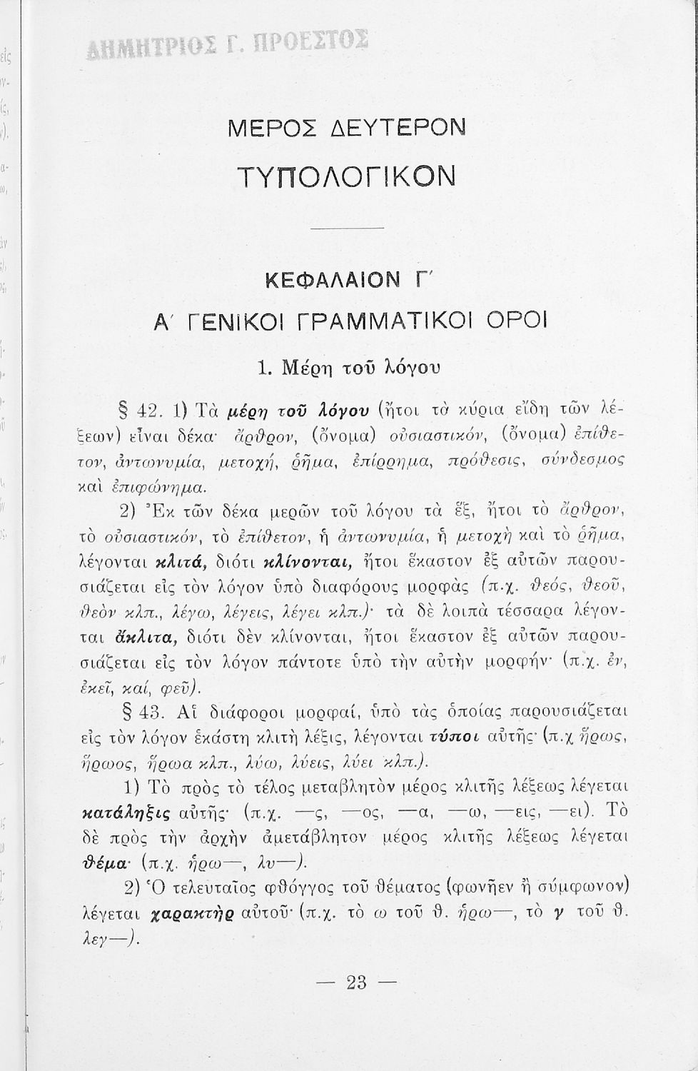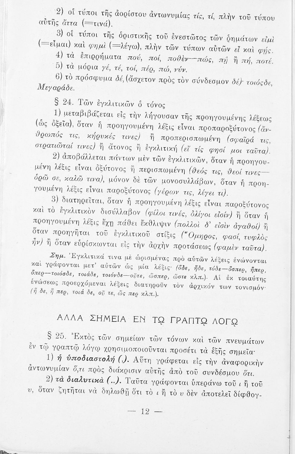 Σχολικό εγχειρίδιο Αρχαίων Ελληνικών που περιέχει τους κανόνες γραμματικής και είναι χωρισμένο σε φθογγολογικό, τυπολογικό και ετυμολογικό μέρος. Περιέχει και κατάλογο ανωμάλων ρημάτων.