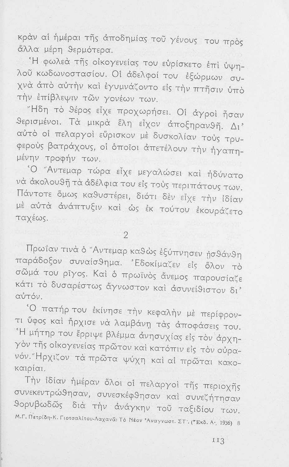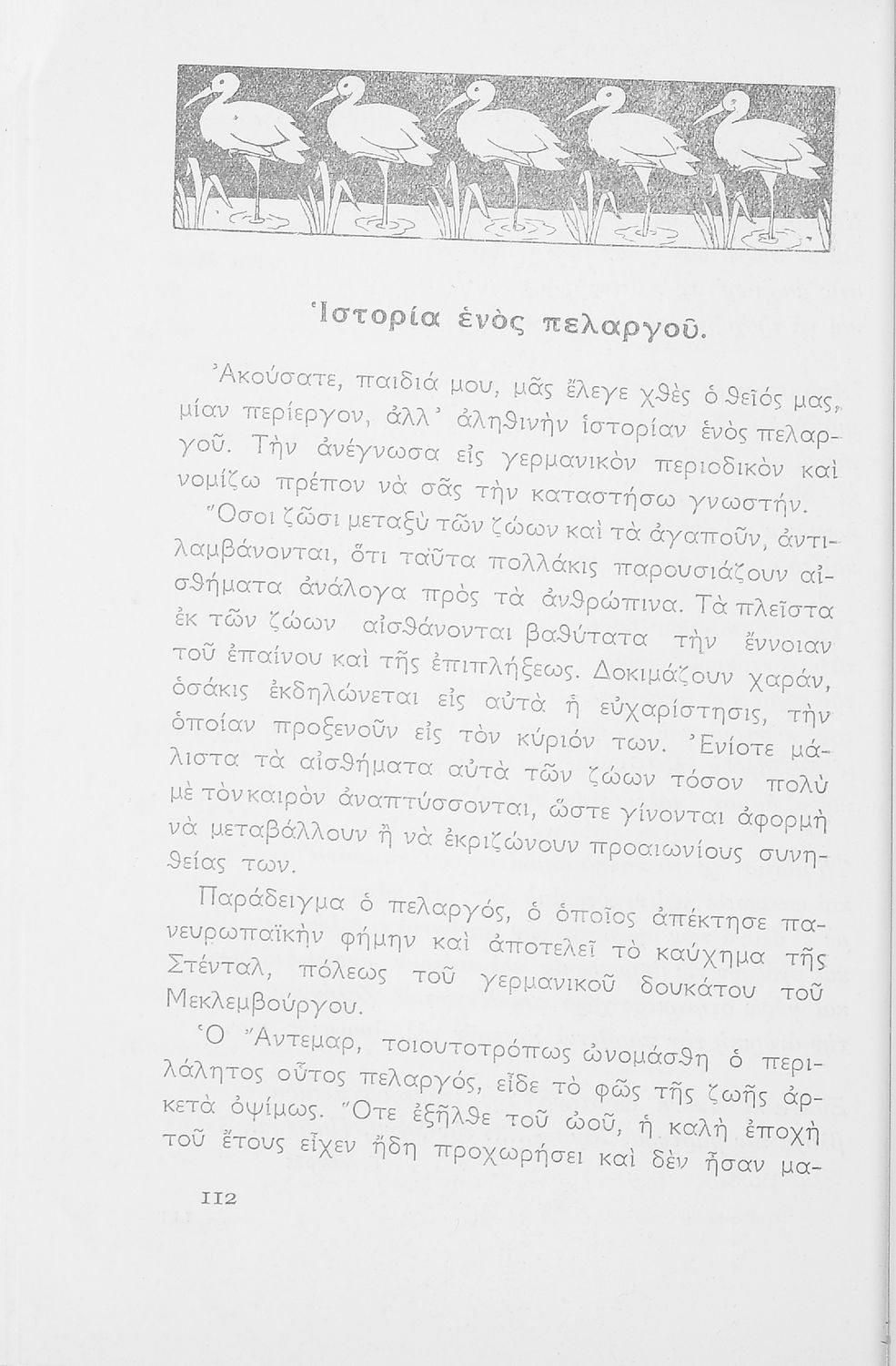 Αναγνωστικό Ε΄ Δημοτικού που περιλαμβάνει πεζογραφήματα εμπνευσμένα από την ελληνική φύση, την αγροτική ζωή και από το τρίπτυχο "Πατρίς- θρησκεία- οικογένεια".