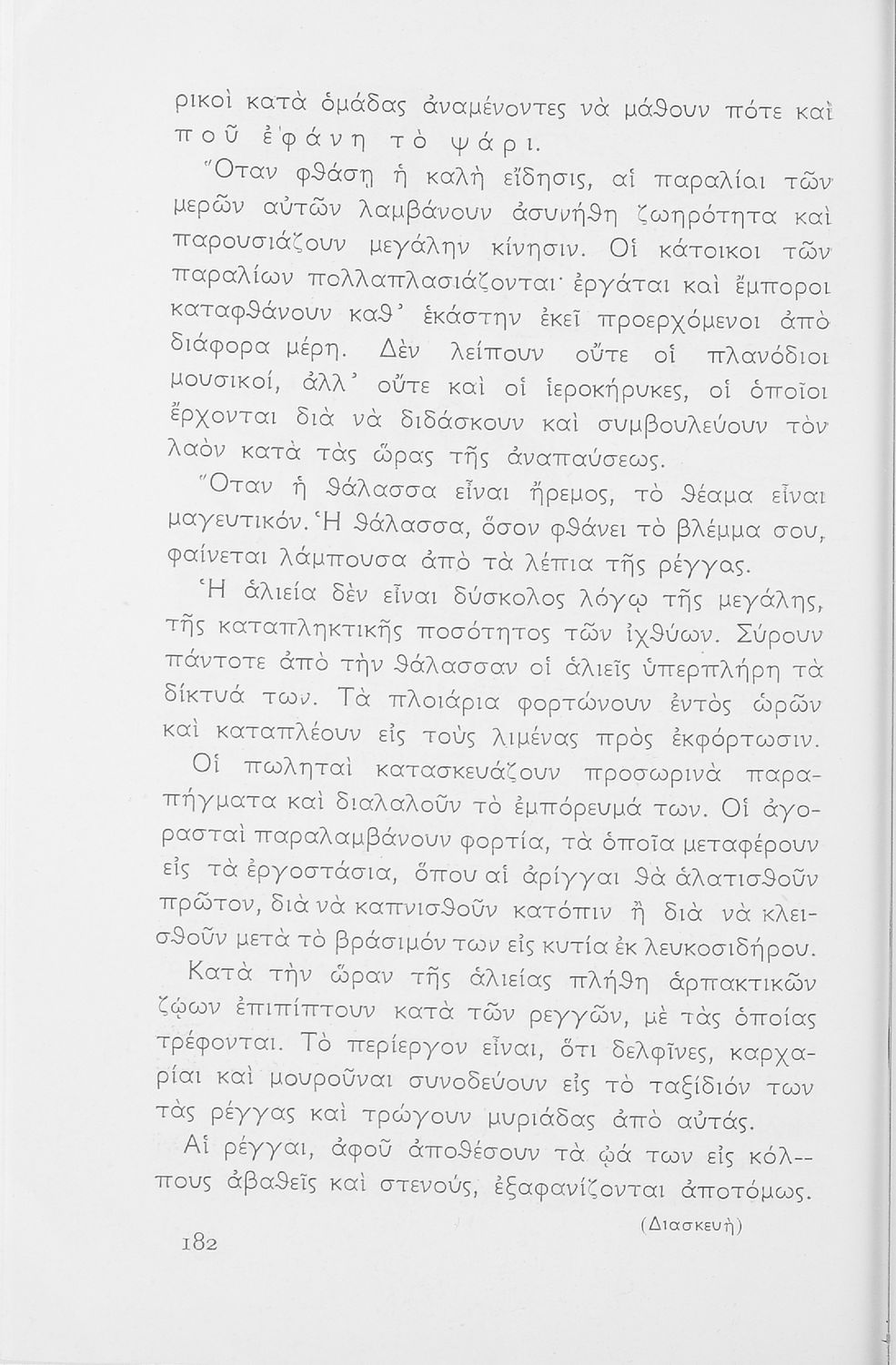 Αναγνωστικό Ε΄ Δημοτικού που περιλαμβάνει πεζογραφήματα εμπνευσμένα από την ελληνική φύση, την αγροτική ζωή και από το τρίπτυχο "Πατρίς- θρησκεία- οικογένεια".