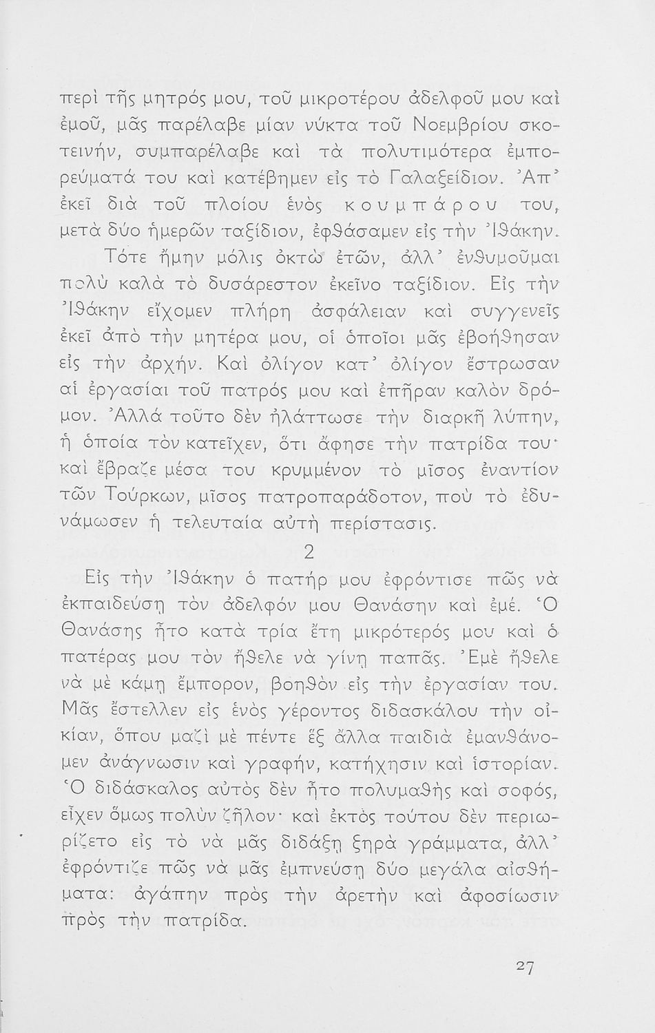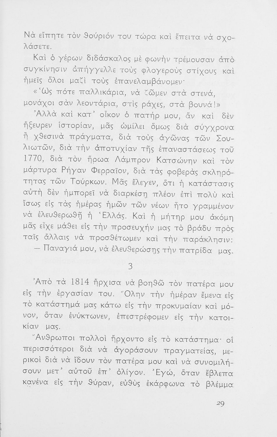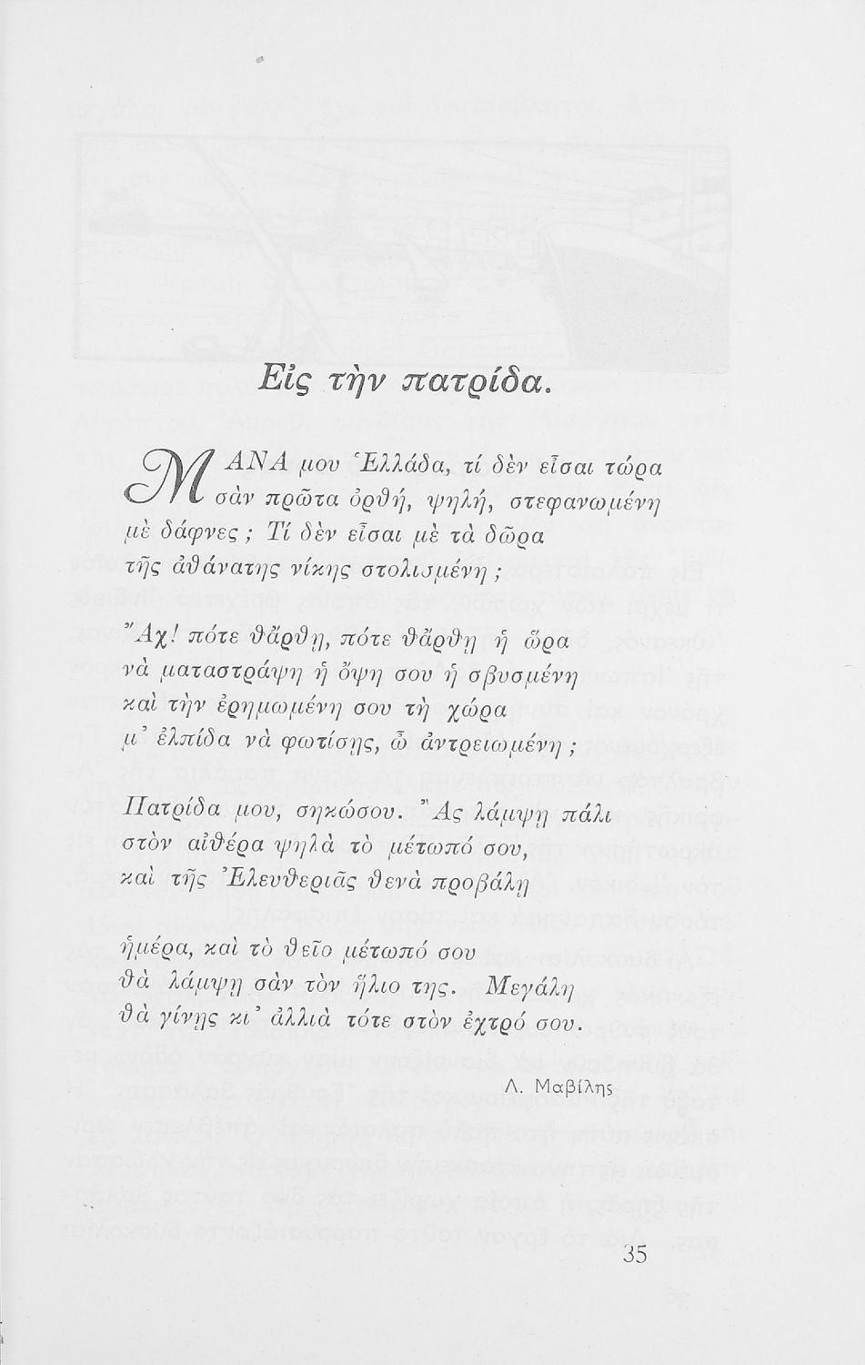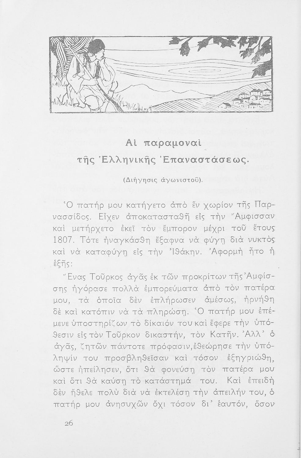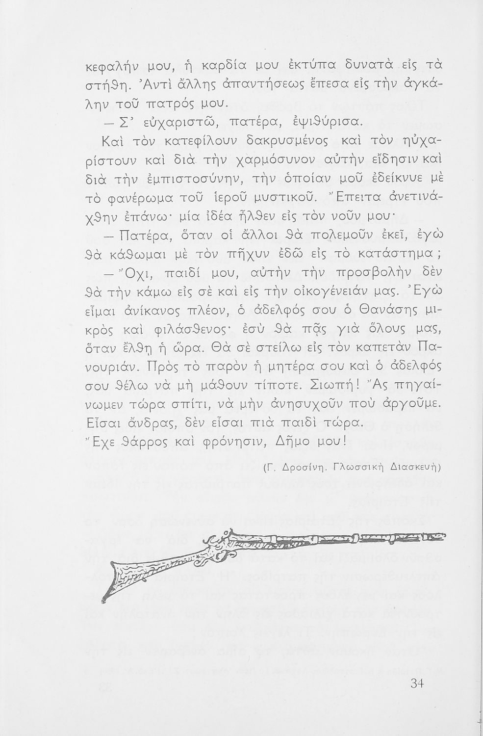 Αναγνωστικό Ε΄ Δημοτικού που περιλαμβάνει πεζογραφήματα εμπνευσμένα από την ελληνική φύση, την αγροτική ζωή και από το τρίπτυχο "Πατρίς- θρησκεία- οικογένεια".