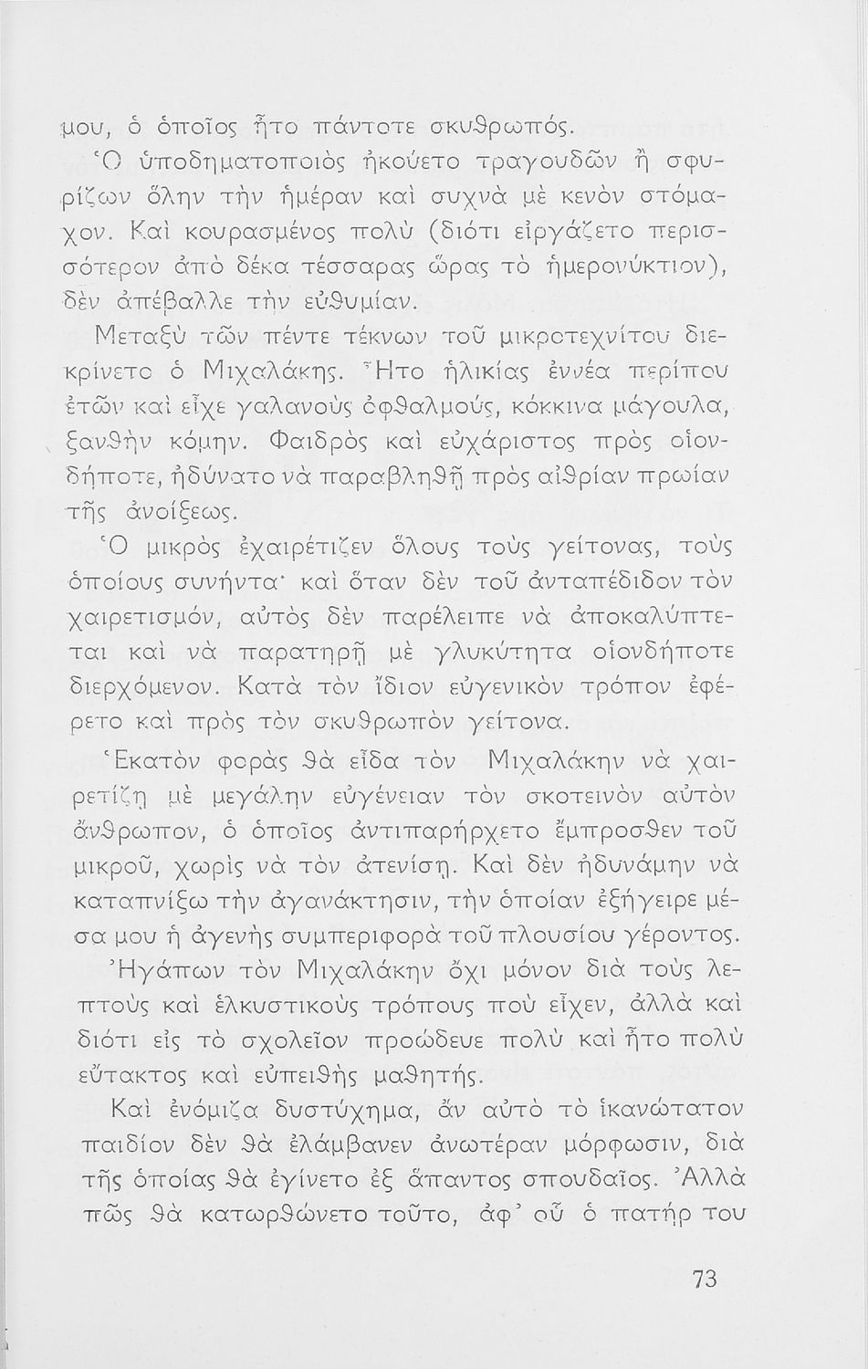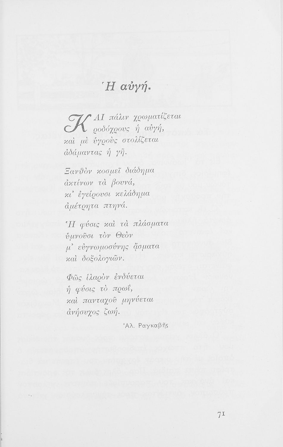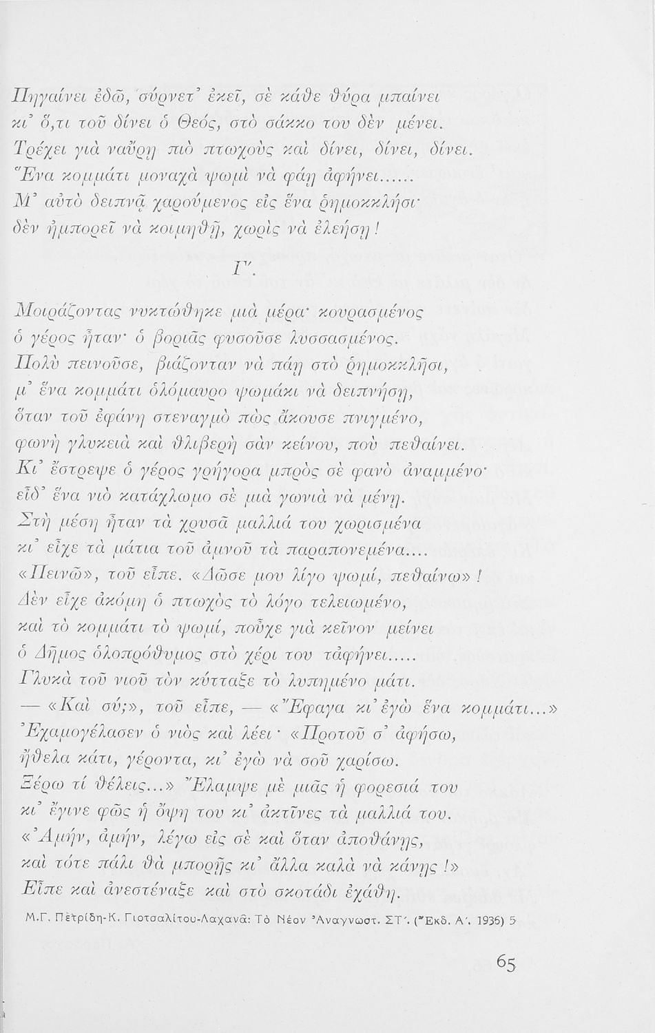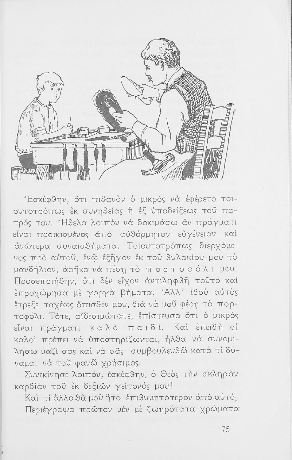 Αναγνωστικό Ε΄ Δημοτικού που περιλαμβάνει πεζογραφήματα εμπνευσμένα από την ελληνική φύση, την αγροτική ζωή και από το τρίπτυχο "Πατρίς- θρησκεία- οικογένεια".